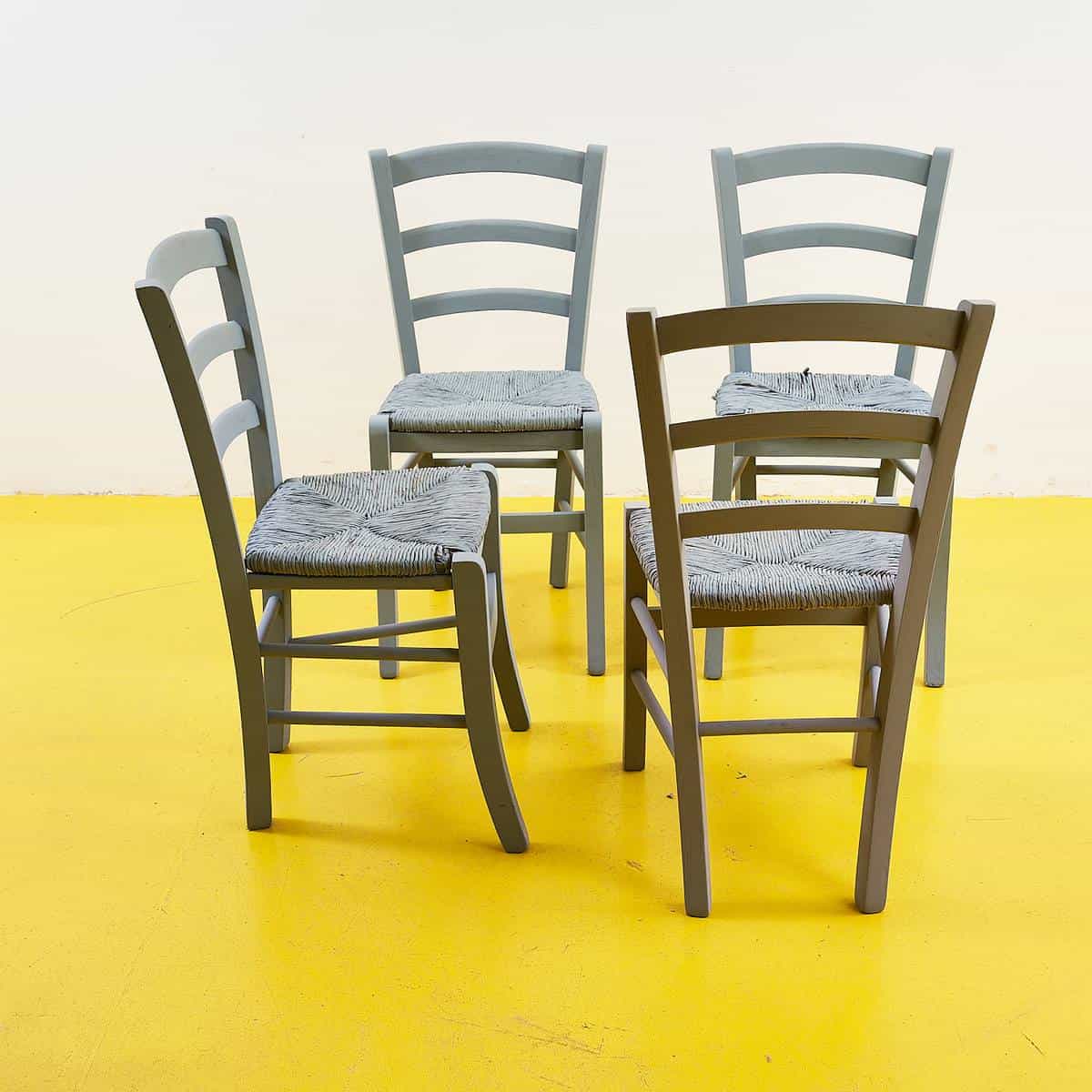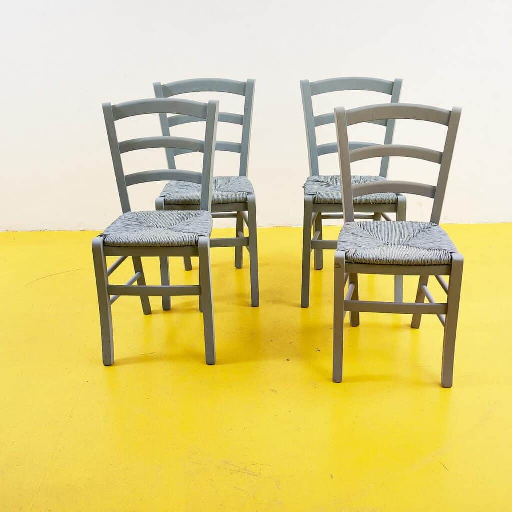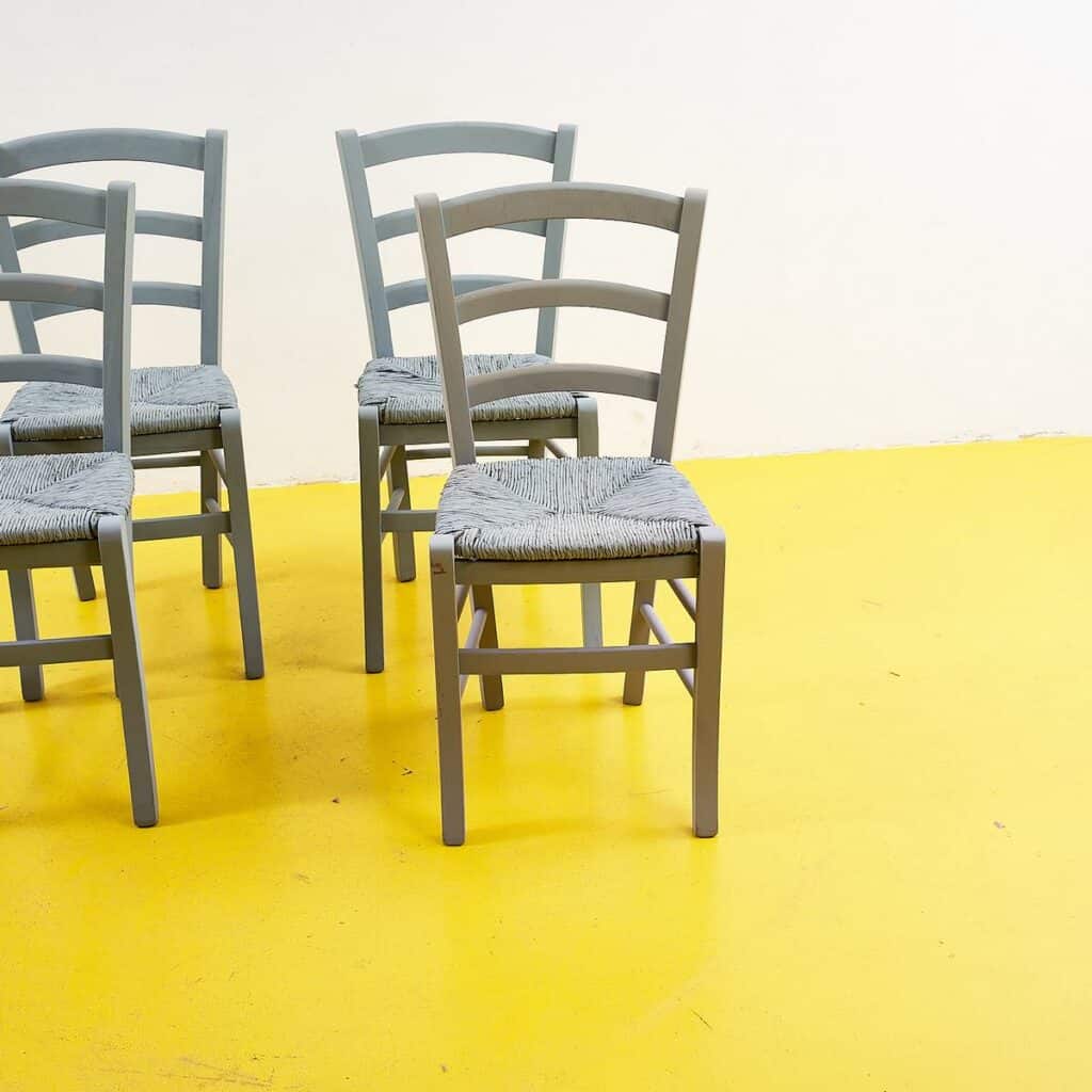 Questa straordinaria serie di quattro sedie in stile rustico combina comfort e design senza tempo. Caratterizzate da una struttura robusta in legno verniciato grigio, le sedie presentano sedute intrec... Questa straordinaria serie di quattro sedie in stile rustico combina comfort e design senza tempo. Caratterizzate da una struttura robusta in legno verniciato grigio, le sedie presentano sedute intrecciate con corda che aggiungono un tocco di artigianalita'. Ideali per una stanza da pranzo o per un ambiente conviviale, queste sedie si integrano perfettamente in contesti sia moderni che tradizionali. Non solo funzionali, ma anche belle da vedere, rappresentano un ottimo esempio di eccellenza nel design di interni. Ogni sedia racconta una storia di eleganza e funzionalita', rendendo ogni pasto un'esperienza speciale. Altro