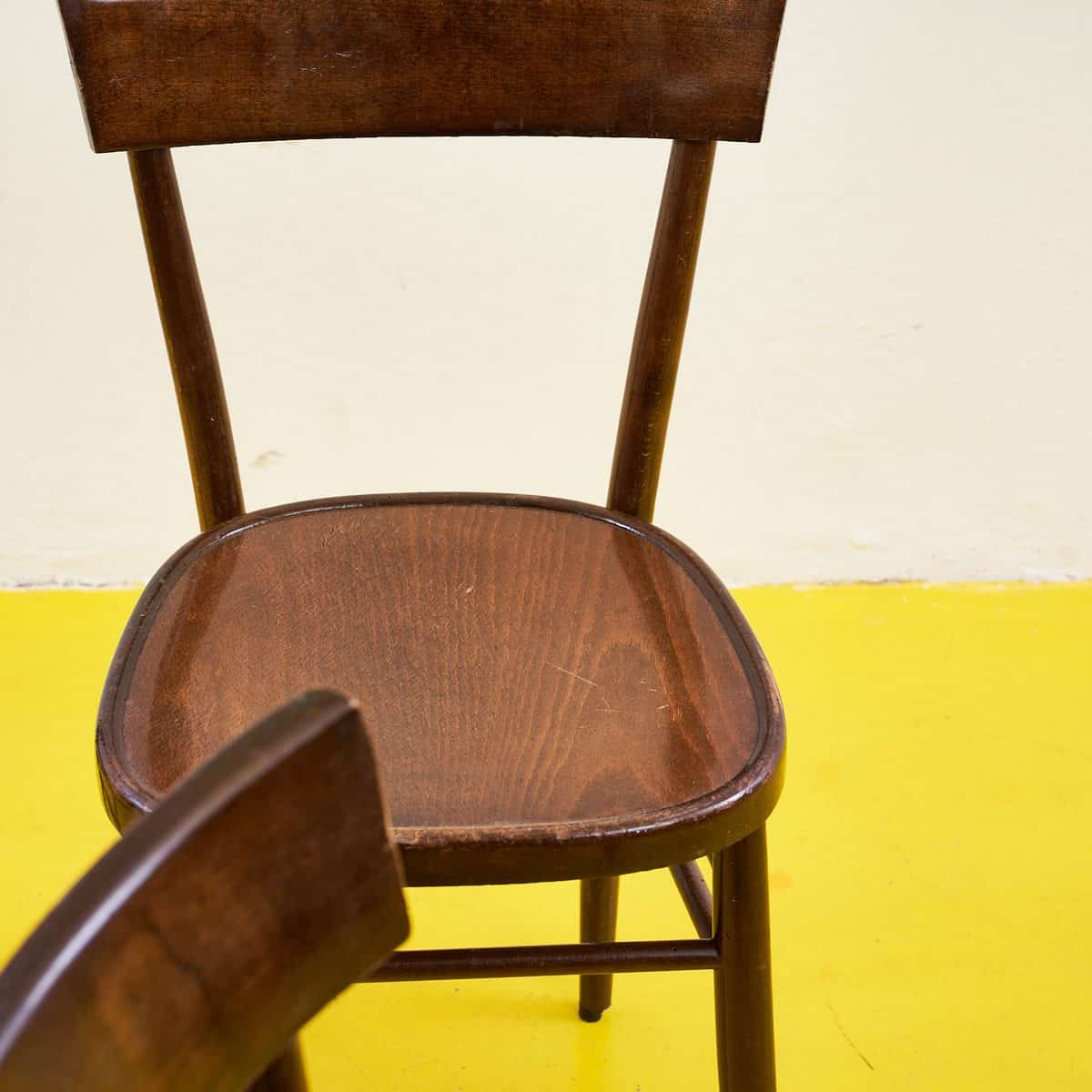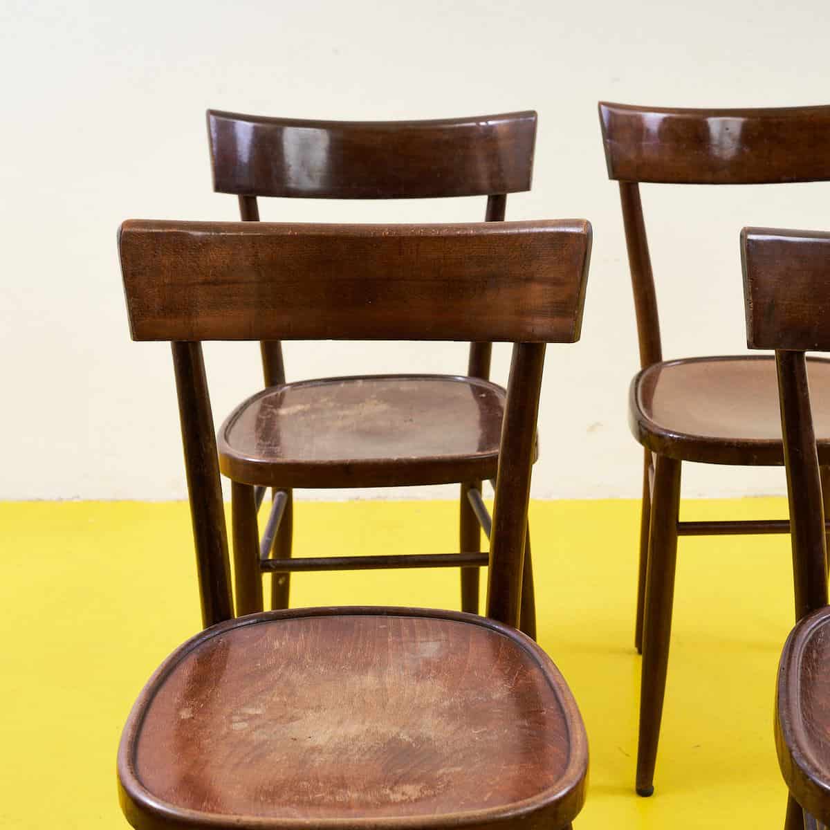 Questo affascinante set di sedie in legno rappresenta una combinazione perfetta di funzionalita' e stile retro'. Con la loro struttura robusta e il design essenziale, queste sedie si integra... Questo affascinante set di sedie in legno rappresenta una combinazione perfetta di funzionalita' e stile retro'. Con la loro struttura robusta e il design essenziale, queste sedie si integrano facilmente in qualsiasi ambiente, dal classico al moderno. Il legno di alta qualita' e le finiture curate ne fanno un pezzo d'eccellenza per chi ama l'arredamento di qualita'. Usate ma ben conservate, aggiungeranno un tocco di raffinatezza al tuo spazio. Perfette per il soggiorno, la sala da pranzo o anche per un caffe' bohe'mien, queste sedie sono pronte a diventare parte della tua storia. Altro