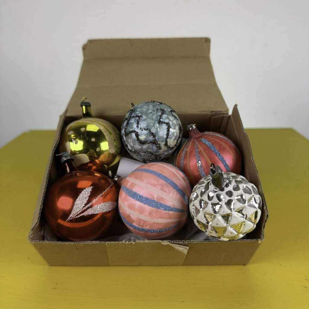 palline di natale vintage in vetro, 6 pezzi