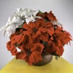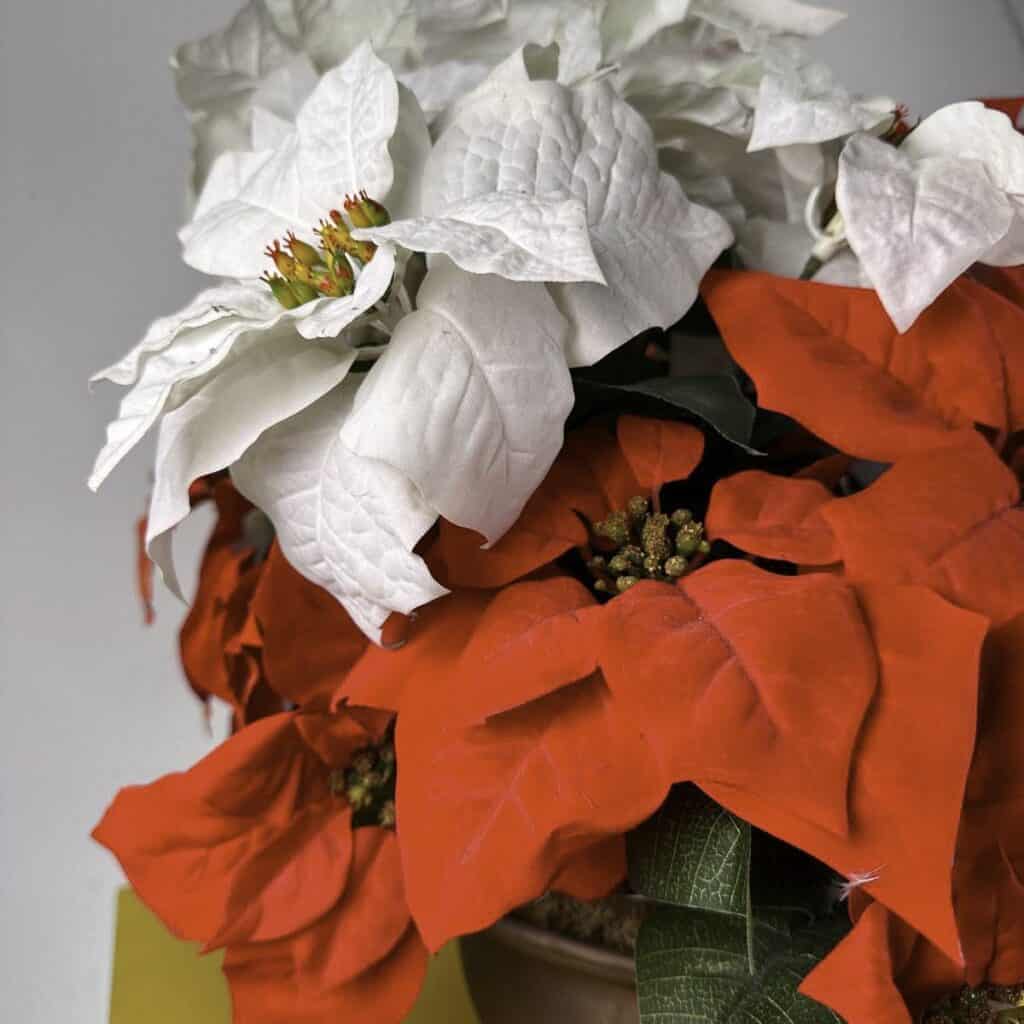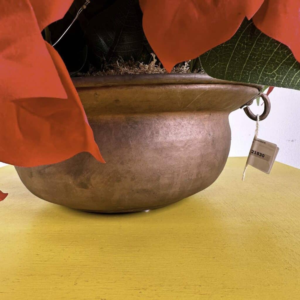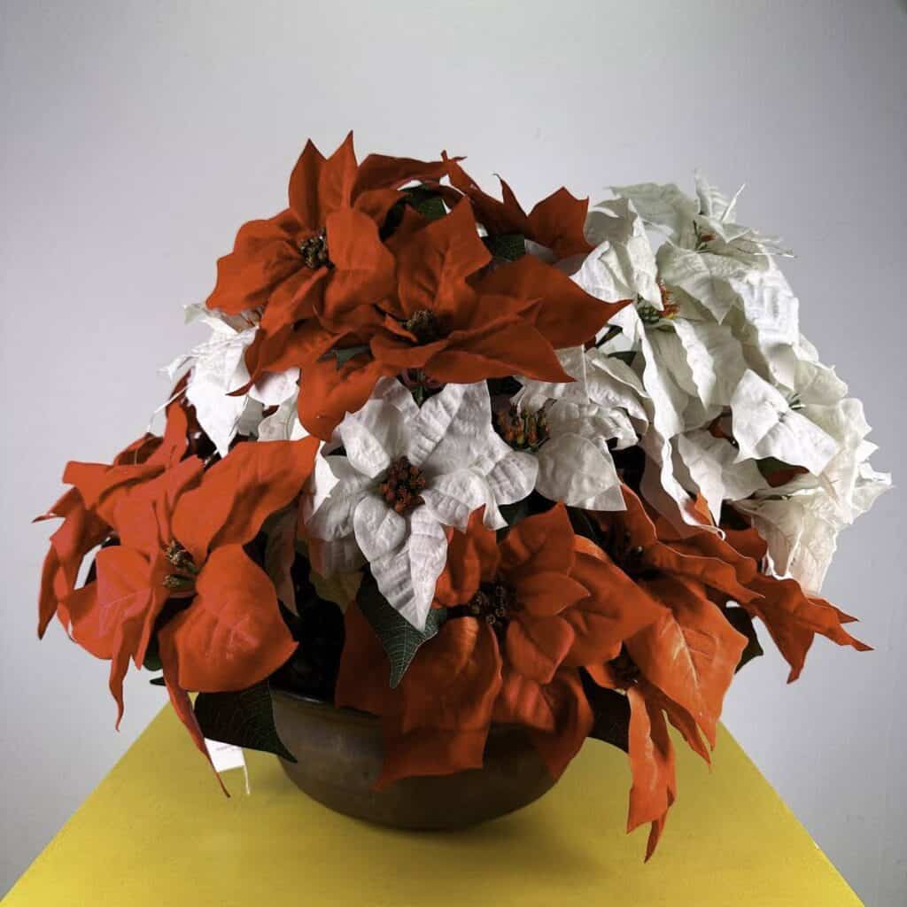vaso in metallo con composizione natalizia stelle di natale