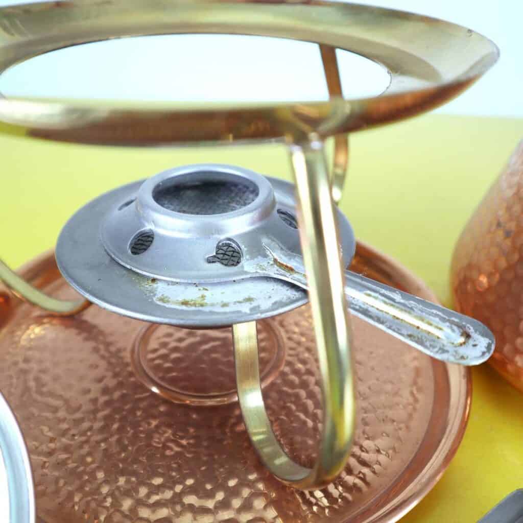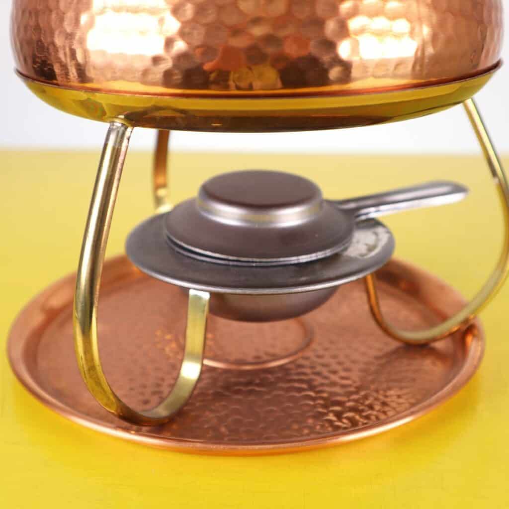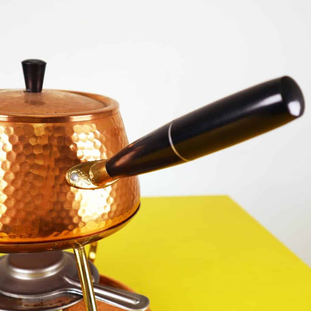 Scopri il fascino intramontabile di questo set per fonduta in rame martellato, un meraviglioso esempio di artigianato del XX secolo. Realizzato con materiali di alta qualità, il set comprende un pento... Scopri il fascino intramontabile di questo set per fonduta in rame martellato, un meraviglioso esempio di artigianato del XX secolo. Realizzato con materiali di alta qualità, il set comprende un pentolino in rame, un supporto in ottone e un bruciatore centrale per mantenere il calore uniforme. Il design martellato dona un tocco distintivo, richiamando lo stile vintage e creando un"atmosfera accogliente per cene o occasioni speciali. Perfettamente conservato, questo set è ideale non solo per gli appassionati di fonduta, ma anche come elemento decorativo che arricchirà qualsiasi cucina o sala da pranzo. Rendi i tuoi momenti conviviali indimenticabili con questo elegante set dal design raffinato e dalla funzionalità impeccabile. Altro