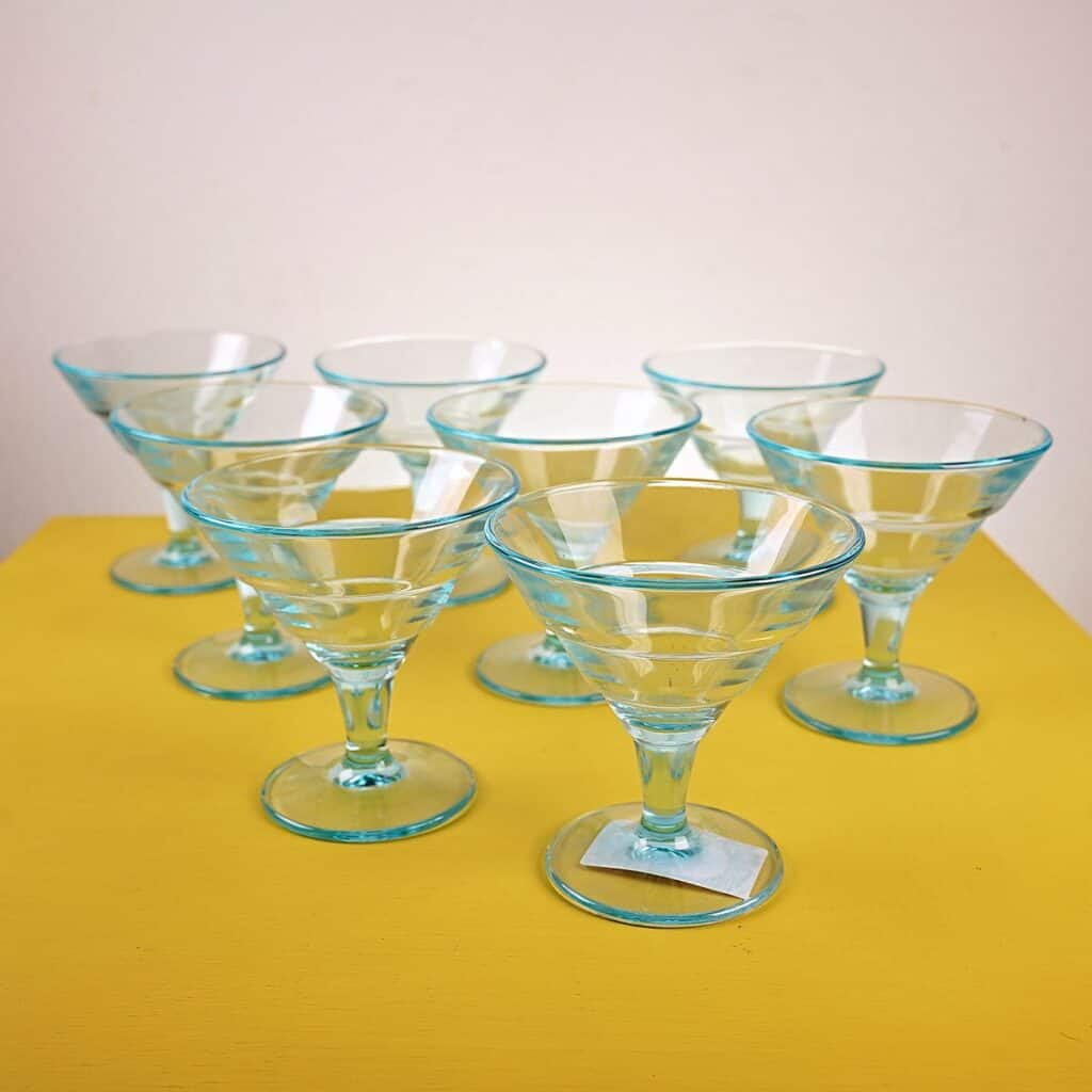 coppe vintage in vetro azzurro, 8 pezzi