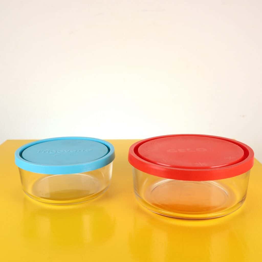 coppia di contenitori in vetro per frigorifero