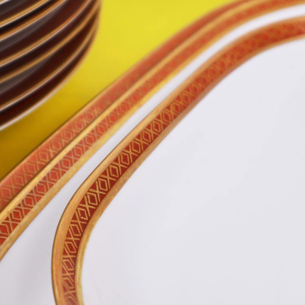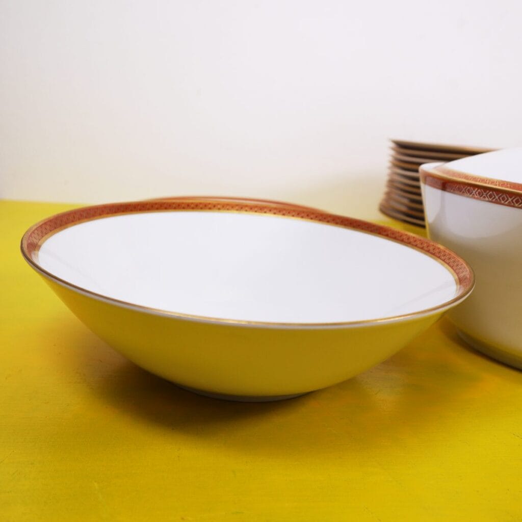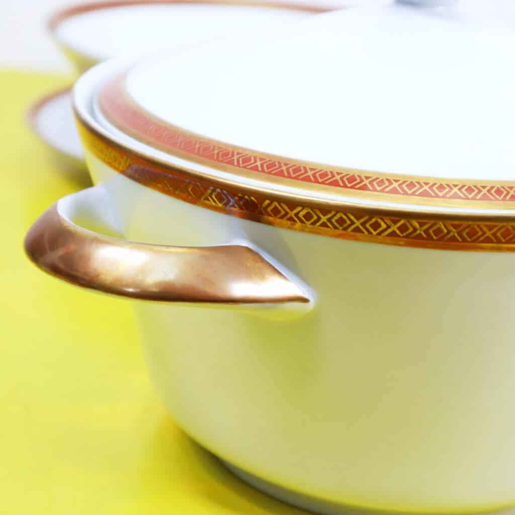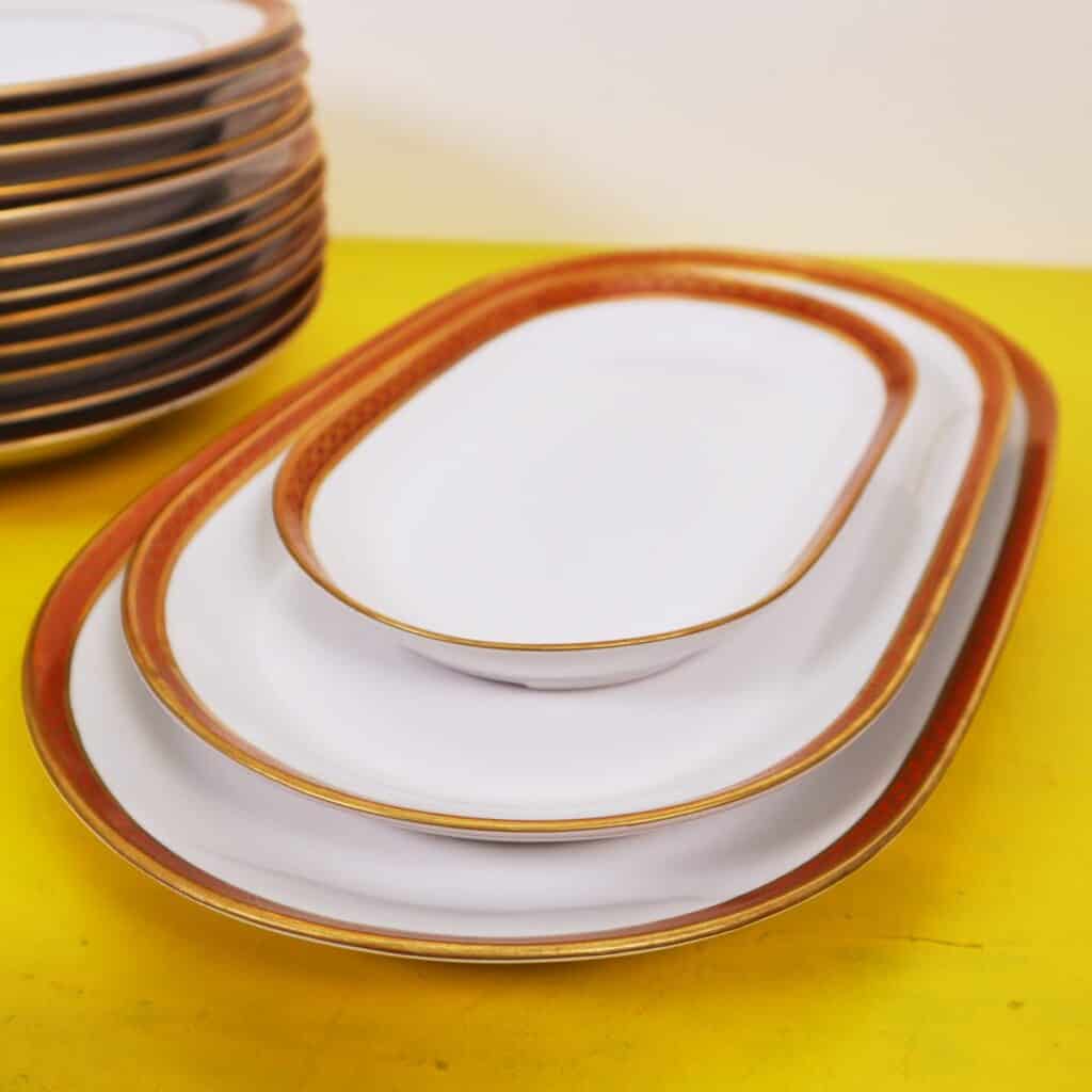 - il servizio comprende 1 zuppiera, 1 terrina, 1 salsiera, 1 piatto da portata, 3 piatti ovali da portata, 12 piatti fondi