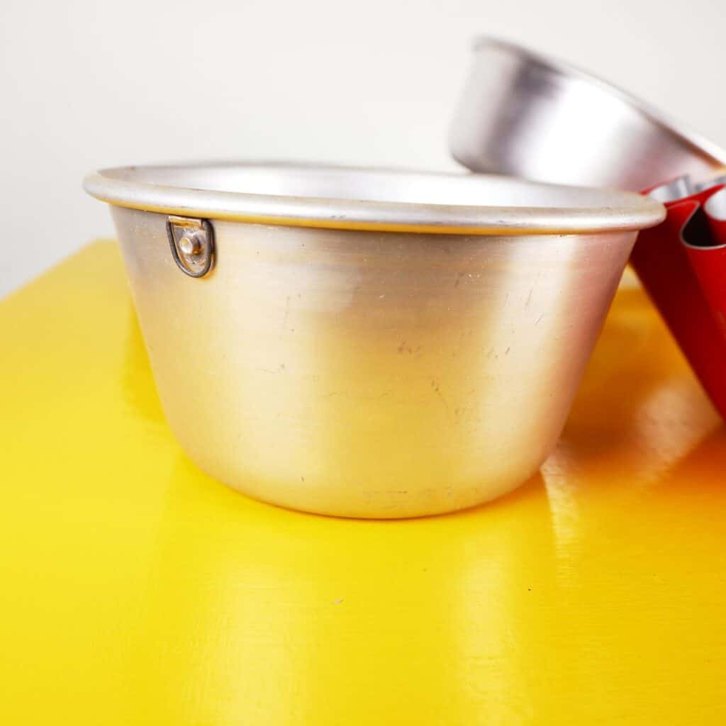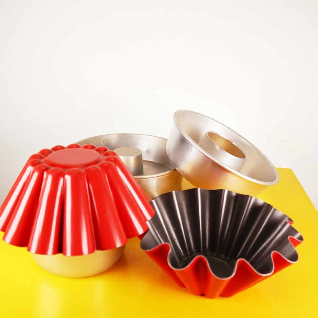 Questo affascinante set di stampi per dolci vintage rappresenta un must-have per ogni appassionato di pasticceria. Comprende quattro pezzi, tra cui un elegante stampo in alluminio smaltato e un vivace... Questo affascinante set di stampi per dolci vintage rappresenta un must-have per ogni appassionato di pasticceria. Comprende quattro pezzi, tra cui un elegante stampo in alluminio smaltato e un vivace stampo rosso che aggiunge un tocco di colore alla tua cucina. Realizzati in materiali di alta qualita', questi stampi sono ideali per creare dolci deliziosi e presentazioni straordinarie. Sebbene mostrino segni minimi di utilizzo, sono in condizioni molto buone e pronti per essere utilizzati. Perfetti per chi ama decorare i propri dolci o per chi desidera un elemento d'arredo unico. Un'aggiunta affascinante per ogni arredo domestico o come regalo per gli amanti della cucina. Altro