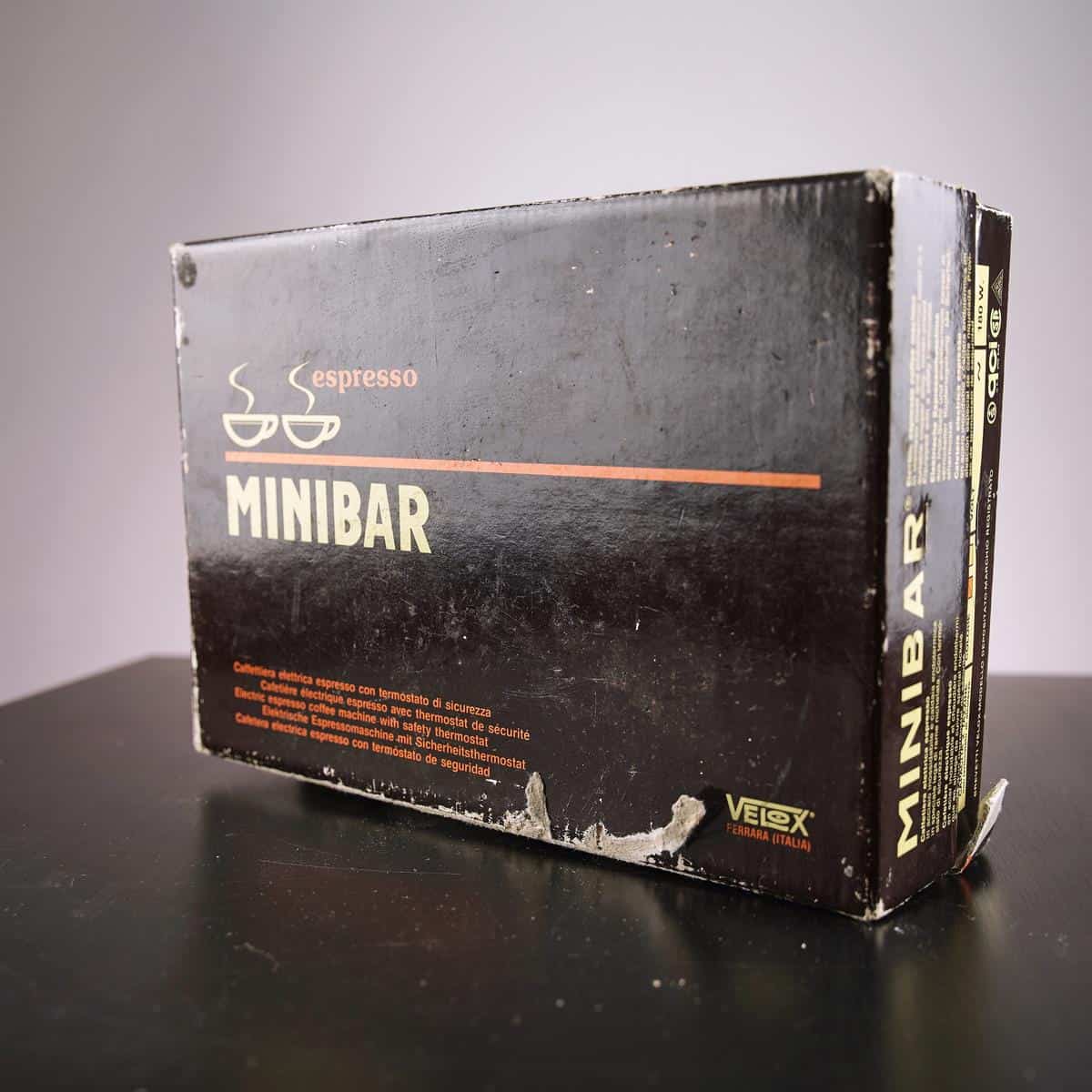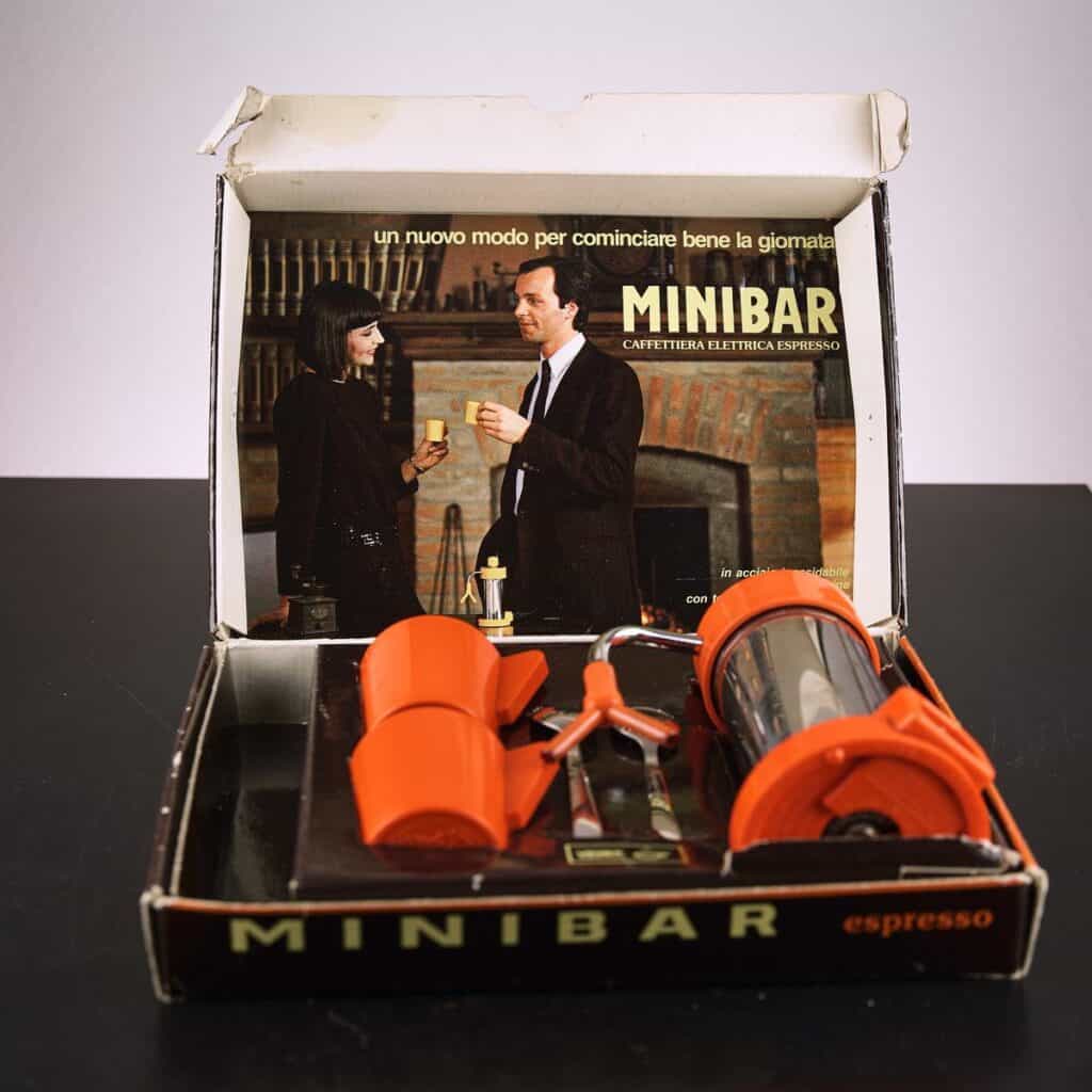 La scatola di questo articolo vintage è completa di: caffettiera, due tazzine, due cucchiaini, cavo di alimentazione, istruzioni e una cartolina.
