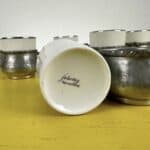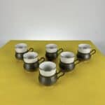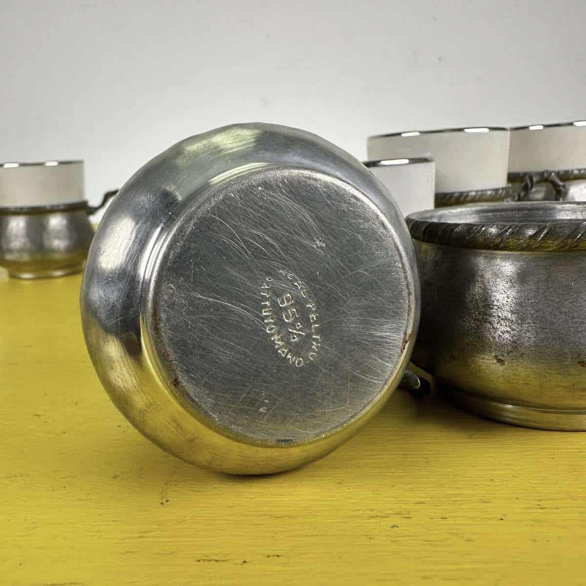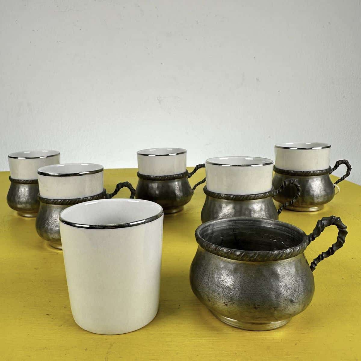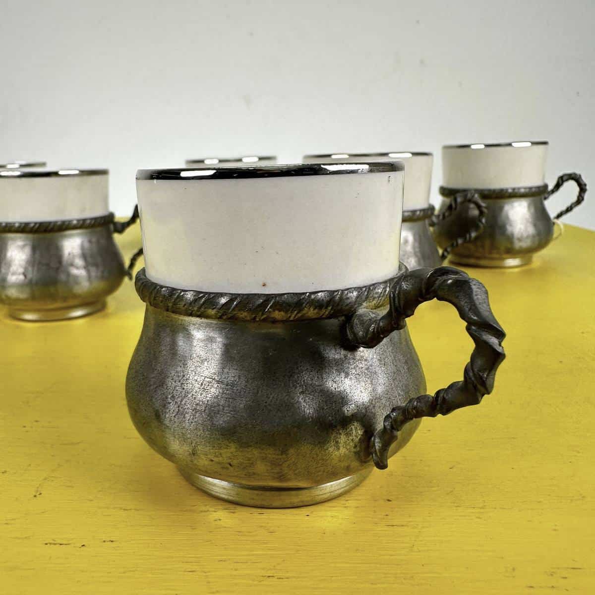 tazzine vintage in porcellana sebring con base in peltro, 6 pezzi