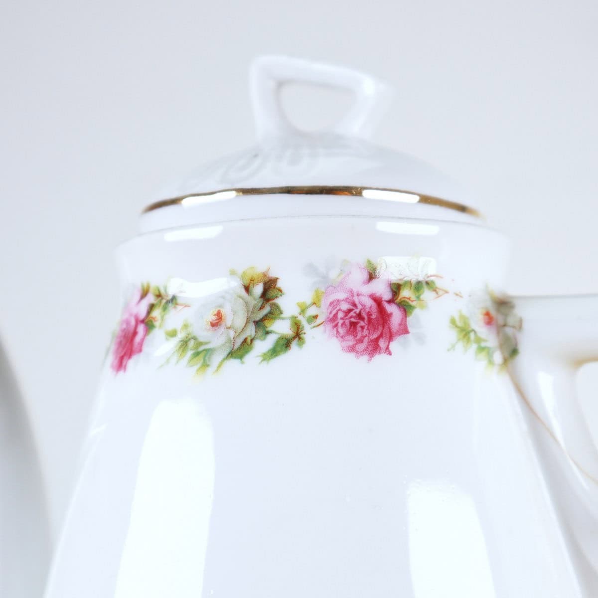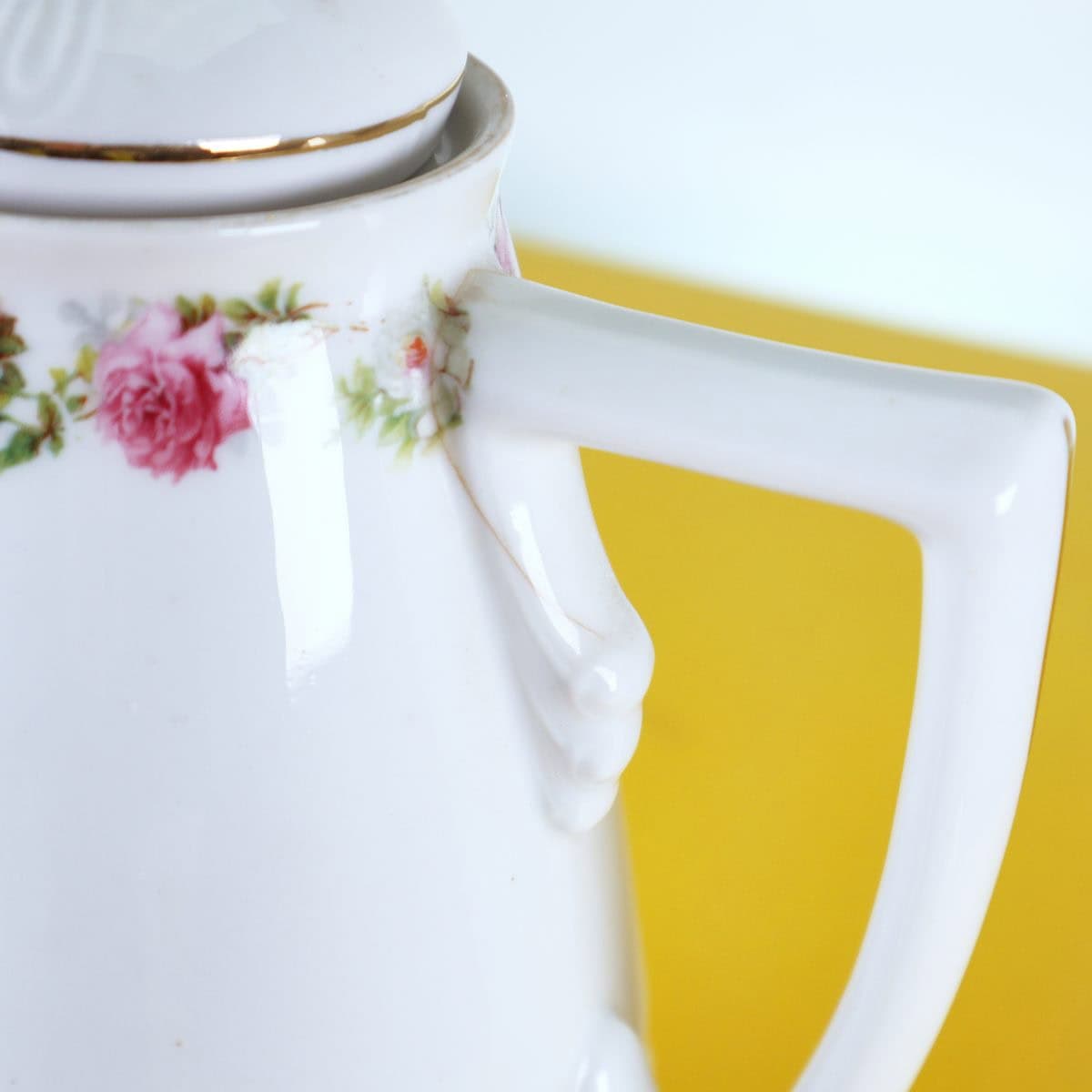 Questa raffinata teiera di Ginori rappresenta un perfetto esempio di artigianato italiano, realizzata in pregiata porcellana e decorata con delicati motivi floreali. L'oggetto si distingue per la... Questa raffinata teiera di Ginori rappresenta un perfetto esempio di artigianato italiano, realizzata in pregiata porcellana e decorata con delicati motivi floreali. L'oggetto si distingue per la sua forma elegante, con un corpo ovalizzato e un beccuccio slanciato, rifinito con dettagli dorati. La teiera presenta un coperchio con pomello che completa l'estetica affascinante. Rendendola ideale non solo per l'uso quotidiano ma anche come oggetto decorativo. E' un pezzo autentico per i veri appassionati di antiquariato e design, perfetta per dare un tocco di classe alla vostra tavola durante un pomeriggio di te' o come pezzo da collezione. Altro