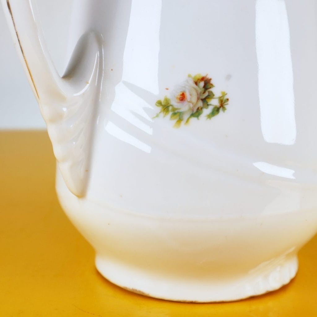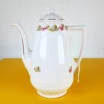 Questa raffinata teiera di Ginori rappresenta un perfetto esempio di artigianato italiano, realizzata in pregiata porcellana e decorata con delicati motivi floreali. L'oggetto si distingue per la... Questa raffinata teiera di Ginori rappresenta un perfetto esempio di artigianato italiano, realizzata in pregiata porcellana e decorata con delicati motivi floreali. L'oggetto si distingue per la sua forma elegante, con un corpo ovalizzato e un beccuccio slanciato, rifinito con dettagli dorati. La teiera presenta un coperchio con pomello che completa l'estetica affascinante. Rendendola ideale non solo per l'uso quotidiano ma anche come oggetto decorativo. E' un pezzo autentico per i veri appassionati di antiquariato e design, perfetta per dare un tocco di classe alla vostra tavola durante un pomeriggio di te' o come pezzo da collezione. Altro