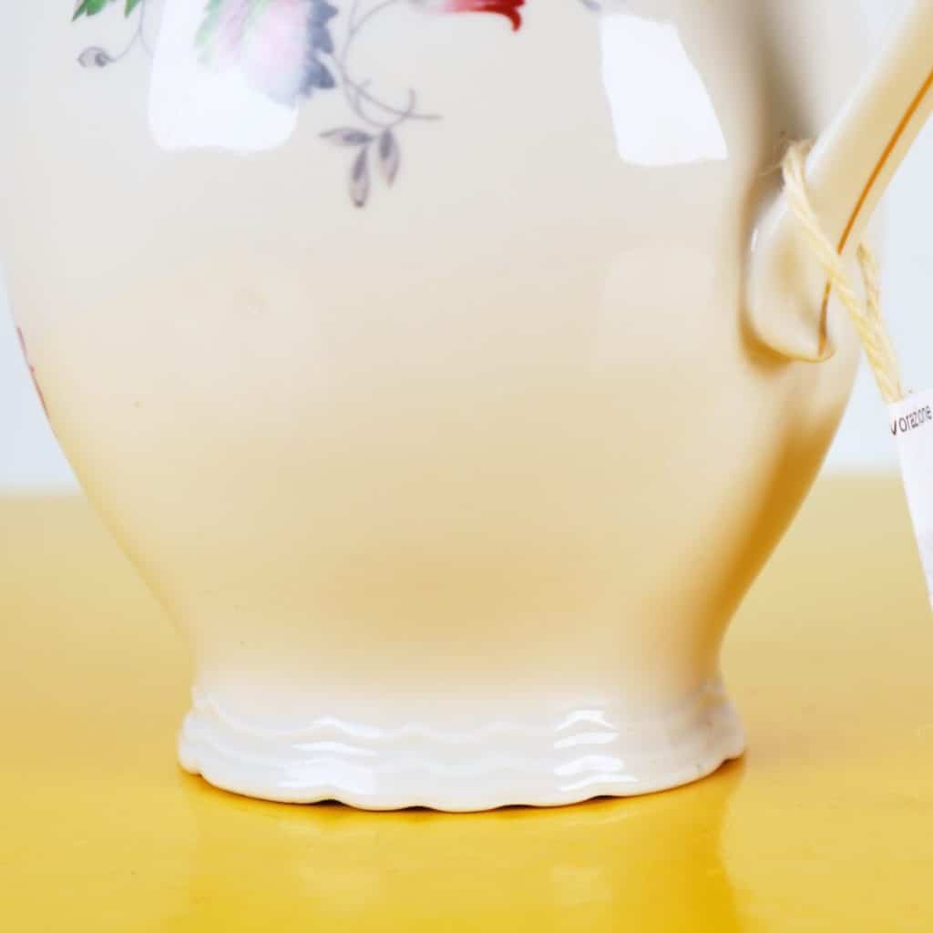 Questa elegante teiera in porcellana Ginori e' un autentico pezzo d'arte ispirato allo stile classico italiano. Realizzata con cura e maestria, presenta delicate decorazioni floreali che la ... Questa elegante teiera in porcellana Ginori e' un autentico pezzo d'arte ispirato allo stile classico italiano. Realizzata con cura e maestria, presenta delicate decorazioni floreali che la rendono perfetta per occasioni speciali o per un te' pomeridiano raffinato. I colori vivaci delle rose e delle foglie creano un affascinante contrasto con la superficie bianca, mentre il manico sagomato e il coperchio ornato di dettagli dorati aggiungono un tocco di lusso. In condizioni molto buone, questa teiera e' non solo funzionale ma anche un oggetto da collezione. Ideale da esporre in vetrina o da utilizzare per servire te' e infusi durante incontri con amici e familiari. Altro