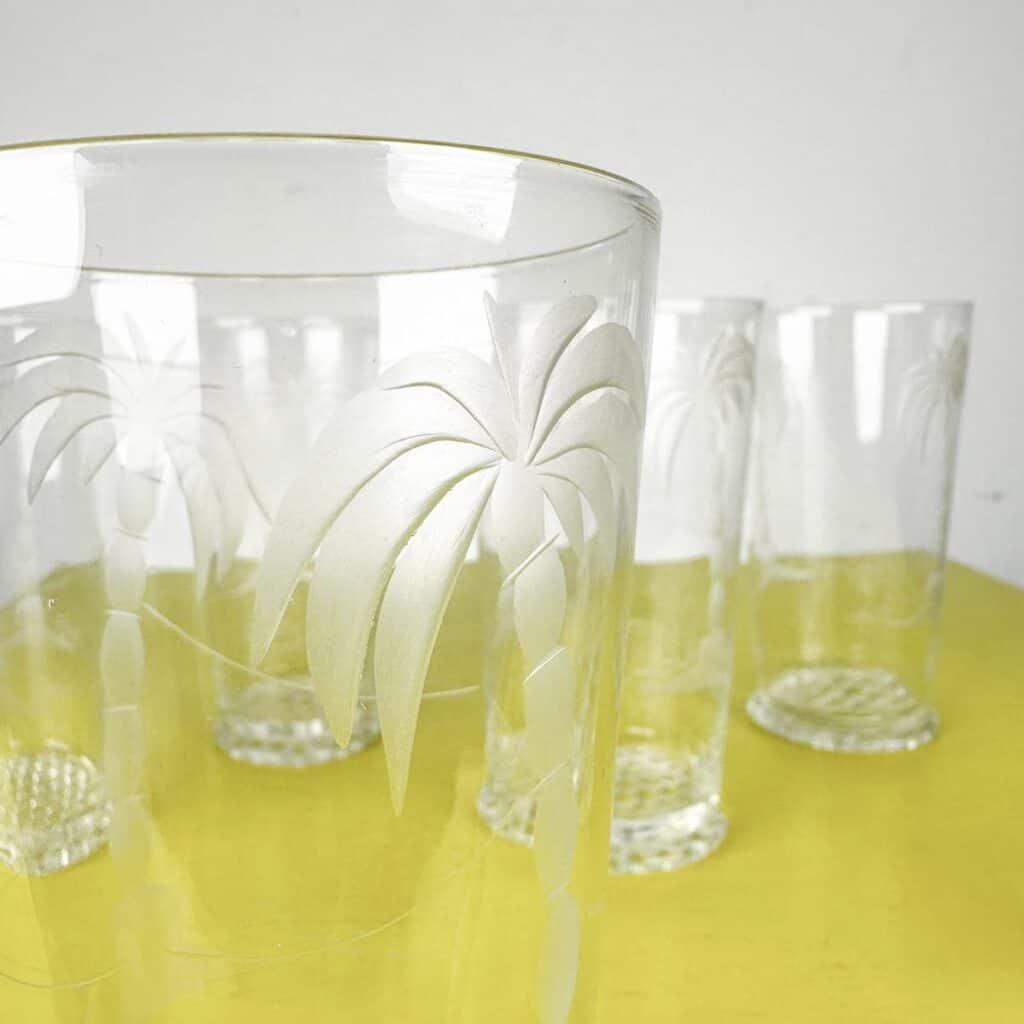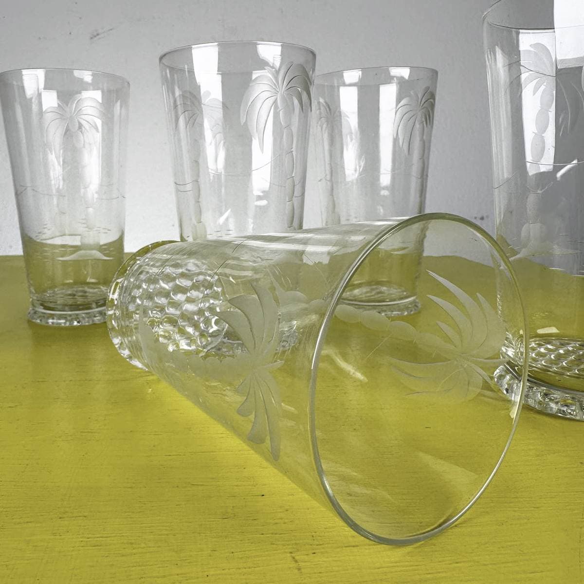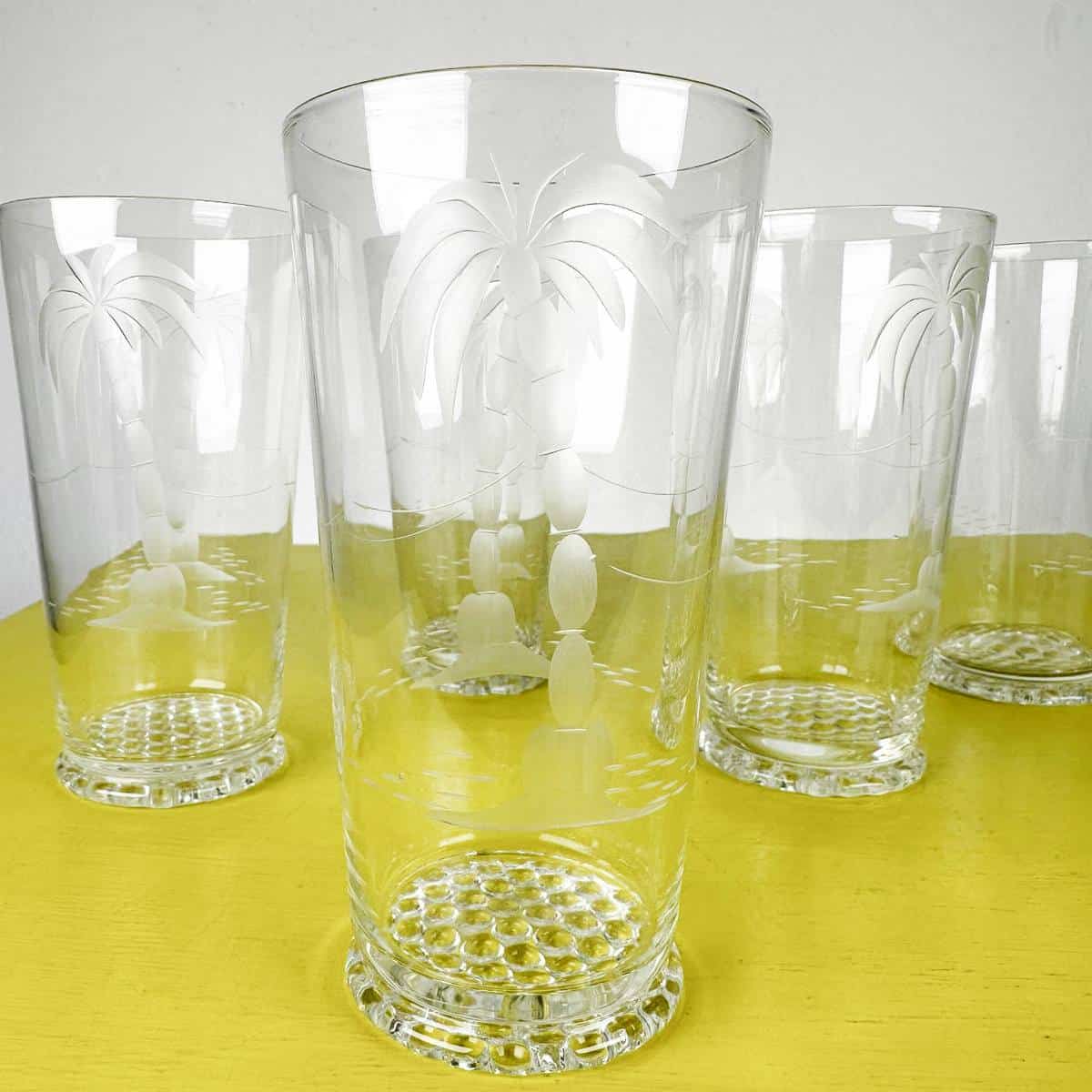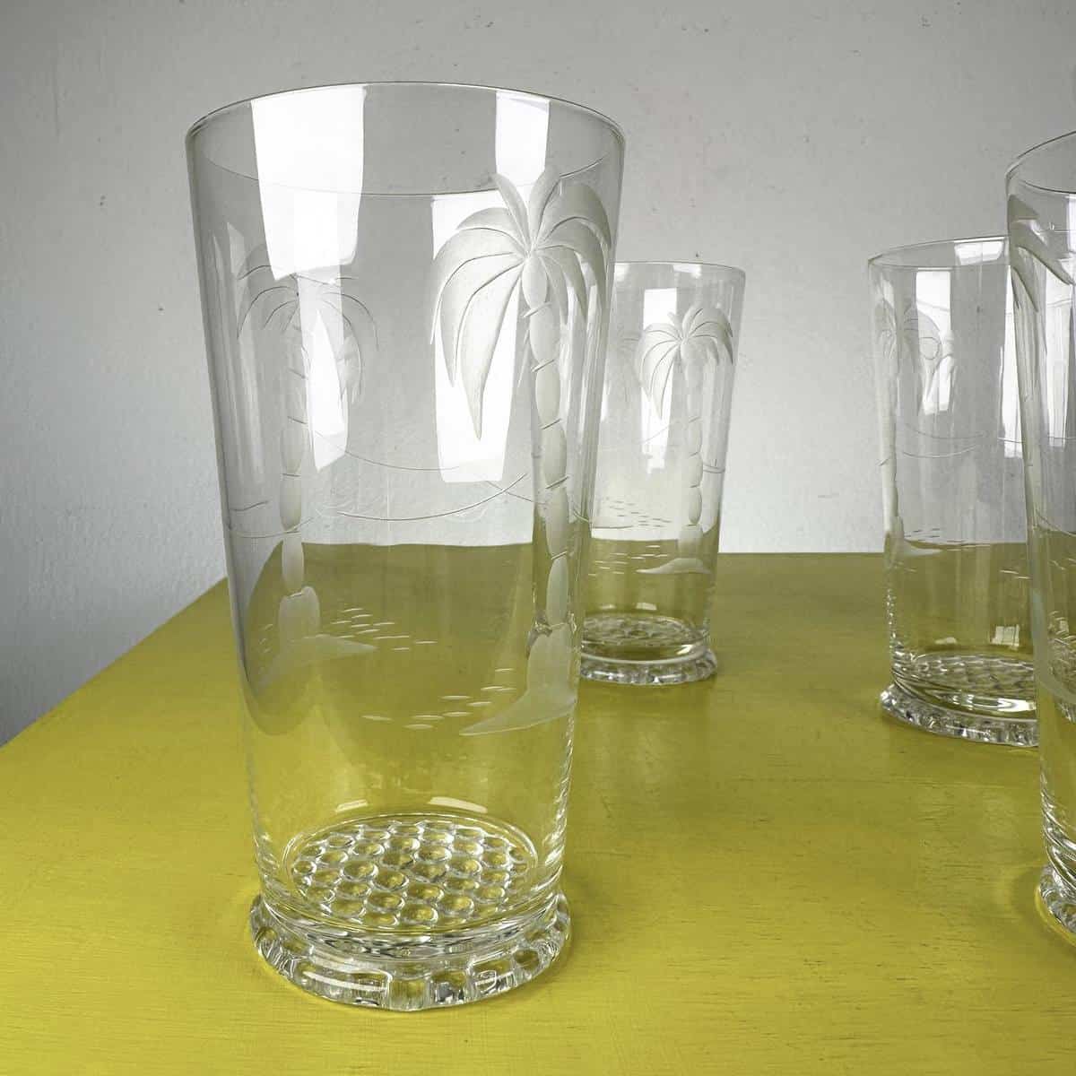 bicchieri vintage in vetro con incisione palma, 6 pezzi