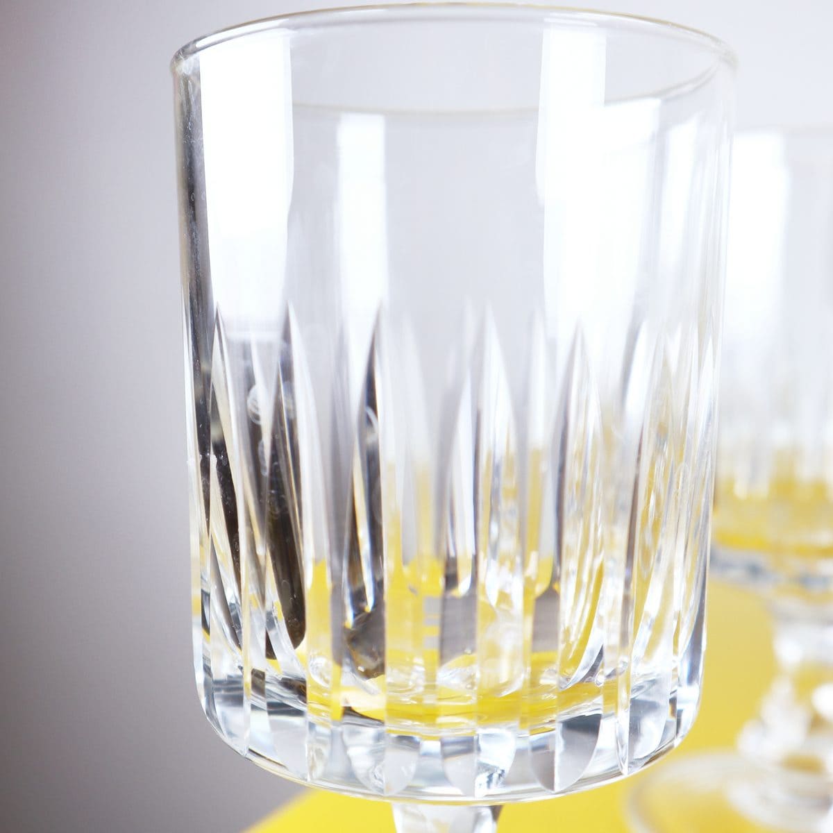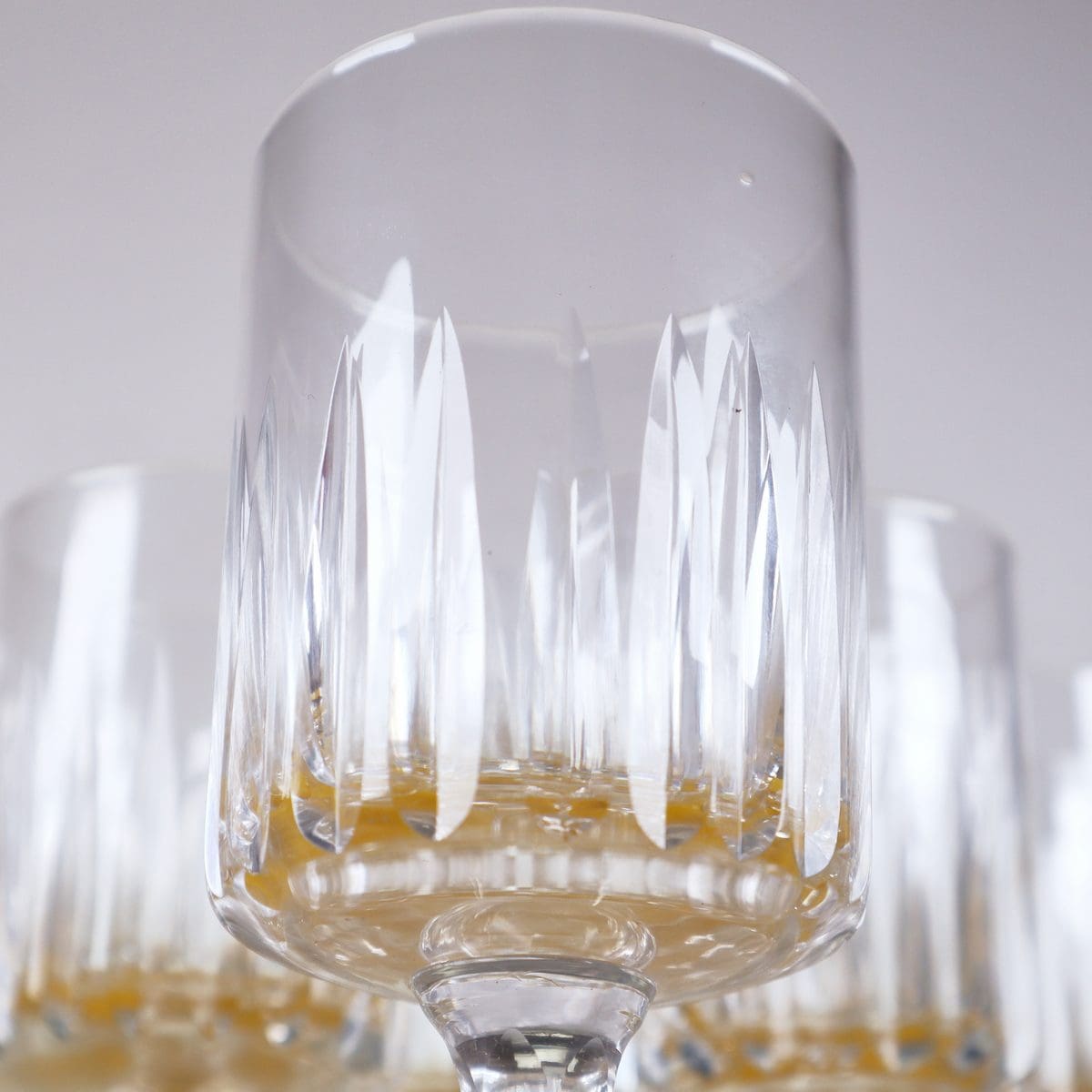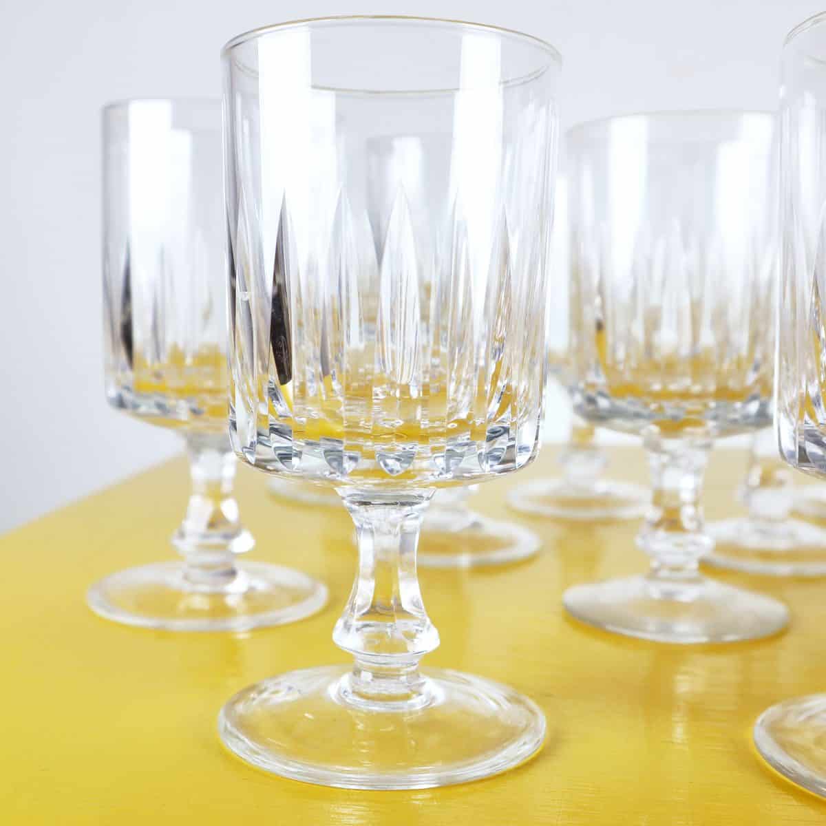 Questo affascinante set di 14 bicchieri in cristallo e' un must-have per ogni collezionista di oggetti vintage. Realizzati con un'attenta lavorazione, questi bicchieri presentano un design r... Questo affascinante set di 14 bicchieri in cristallo e' un must-have per ogni collezionista di oggetti vintage. Realizzati con un'attenta lavorazione, questi bicchieri presentano un design raffinato con dettagli incisi che riflettono la luce in modo straordinario. Perfetti per servire cocktail o per occasioni speciali, ogni bicchiere si erge su un piedistallo elegante che conferisce ulteriore stile e distinzione. Le condizioni sono molto buone, con segni minimi di utilizzo. Un'ottima aggiunta a qualsiasi tavolo da pranzo o come pezzo decorativo in vetrina, per esprimere un tocco di classe e raffinatezza anche nei momenti quotidiani. Altro