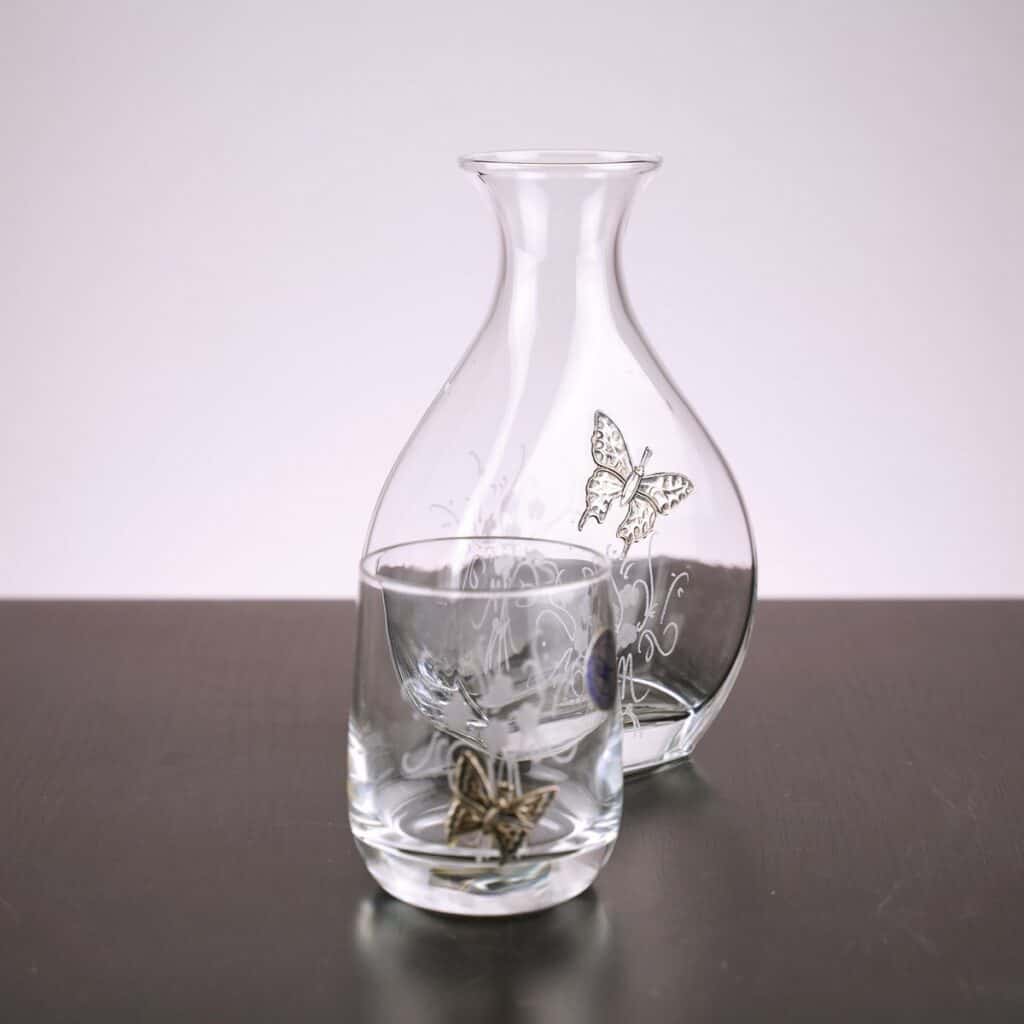 BOTTIGLIA E BICCHIERE DA COMODINO