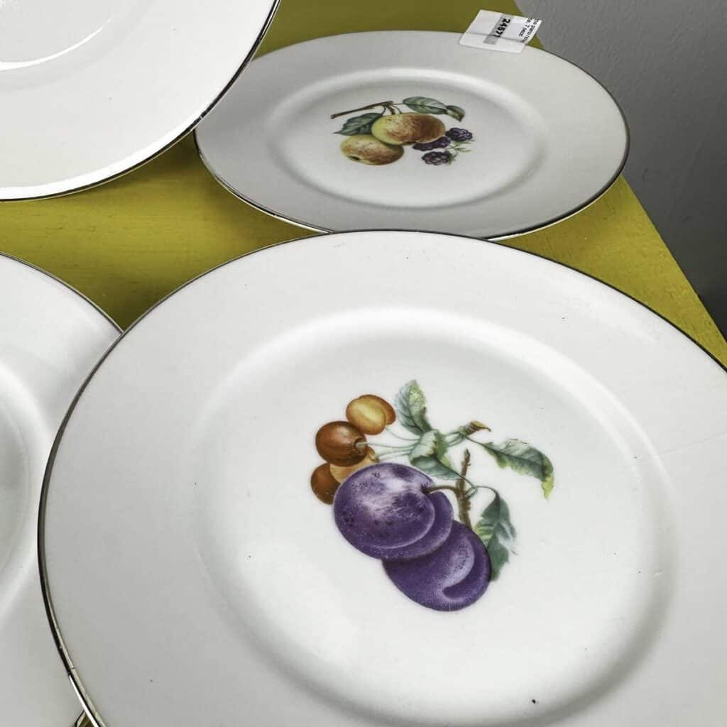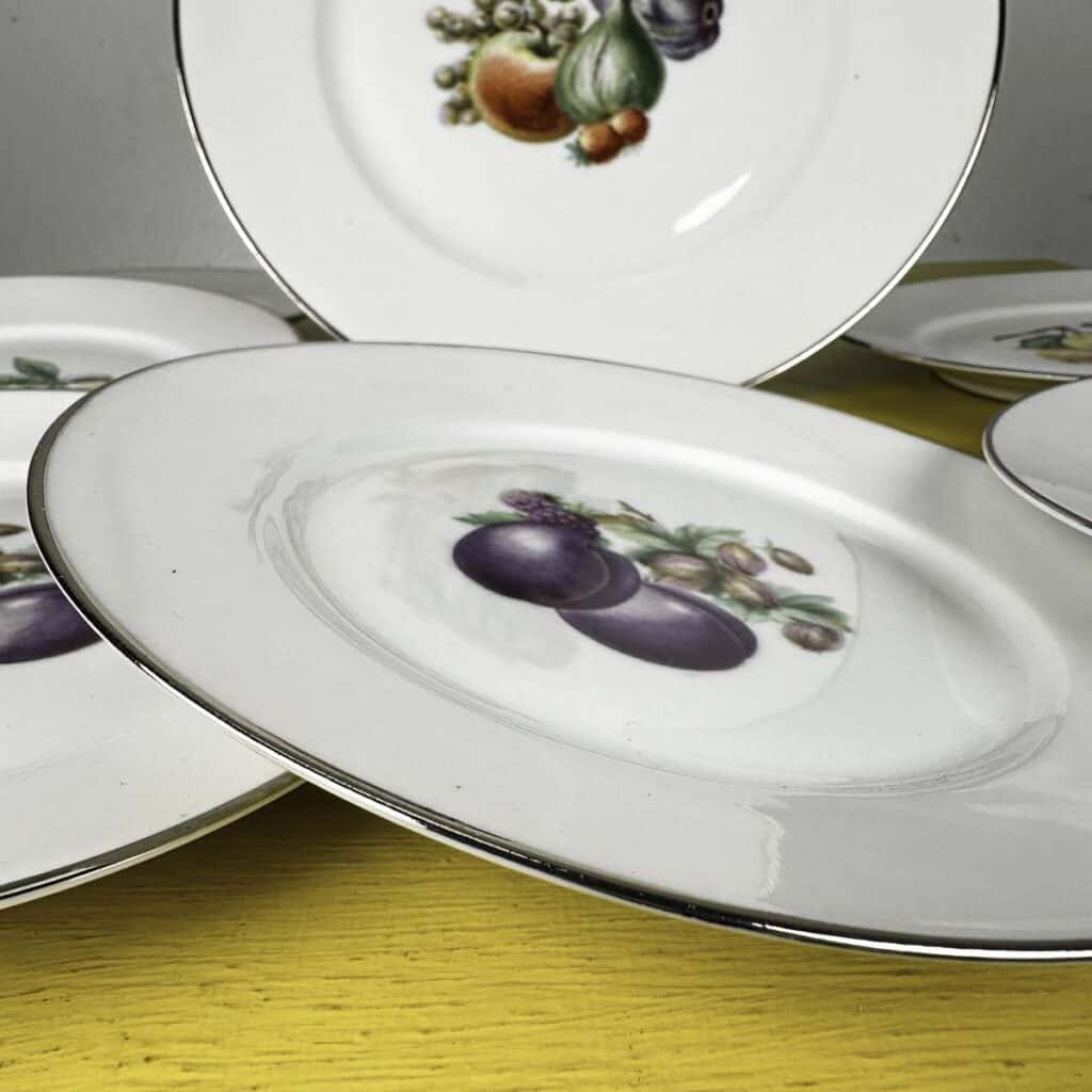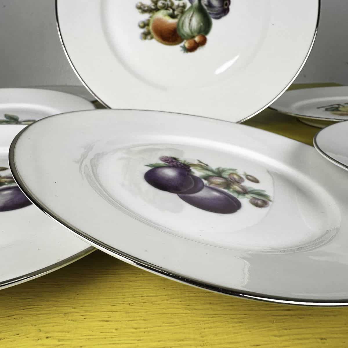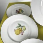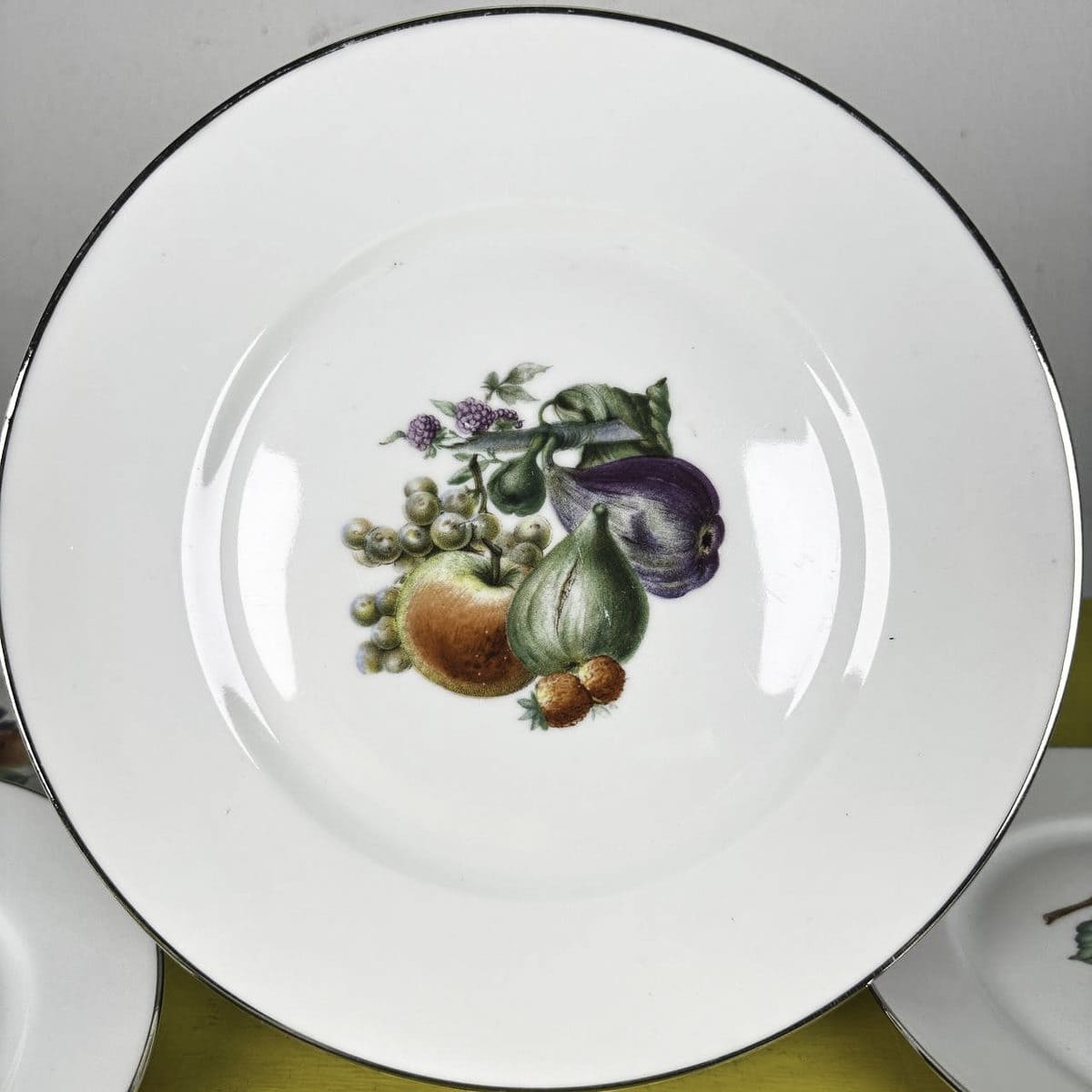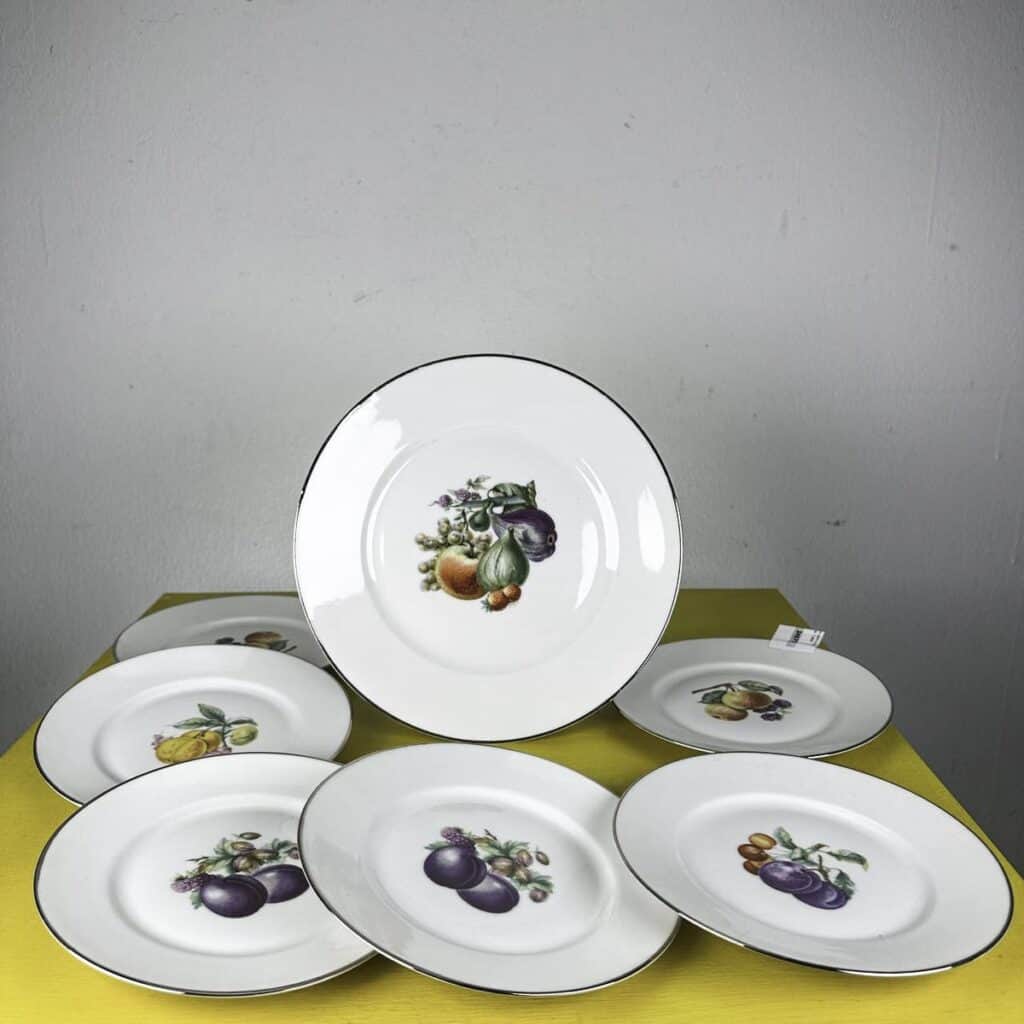piatti da dolce più piatto piano richard ginori con decoro frutta, 7 pezzi