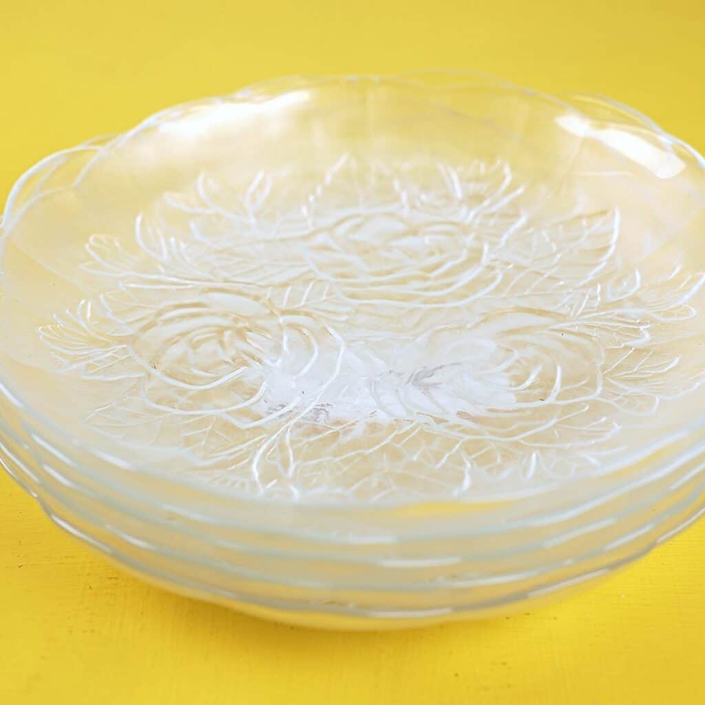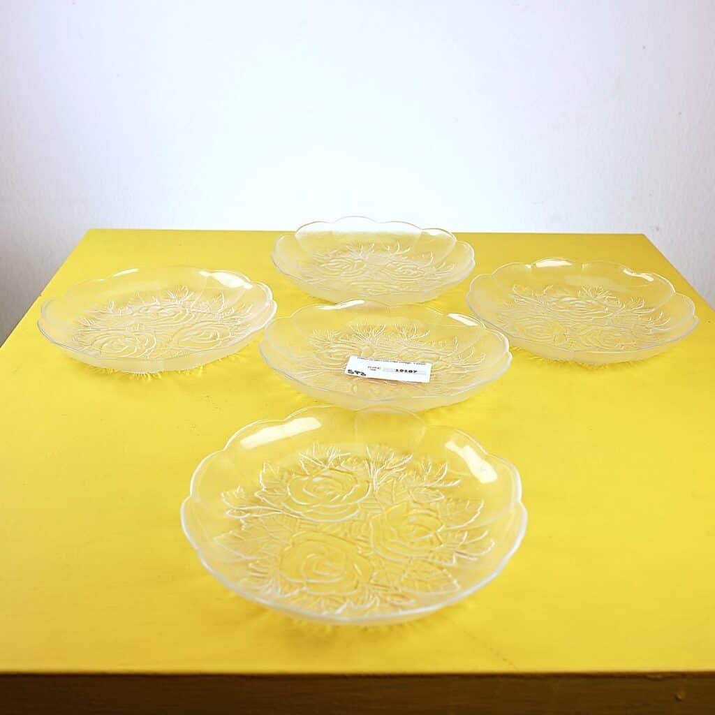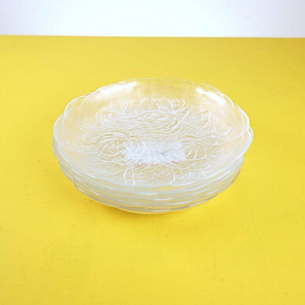 piattini in vetro con rose vintage, 5 pezzi