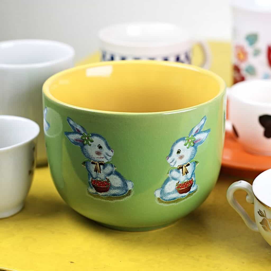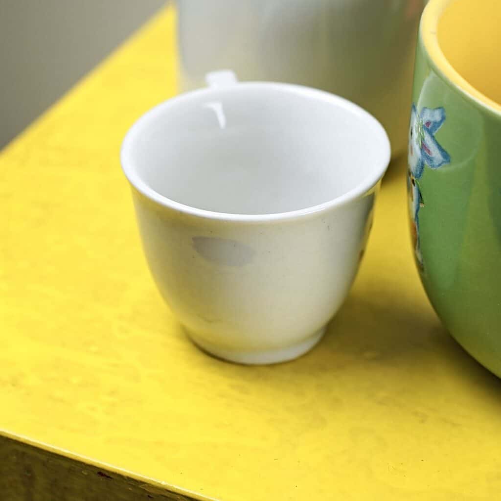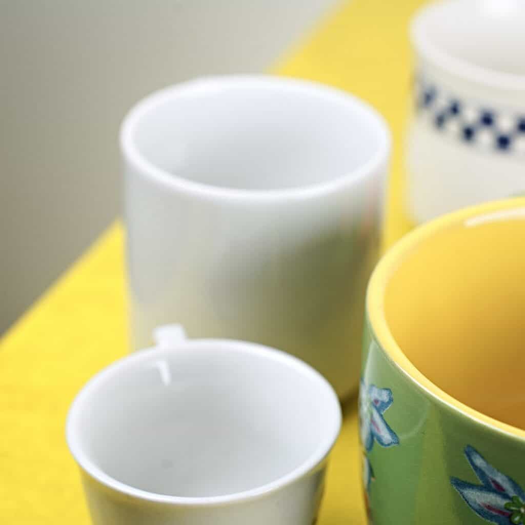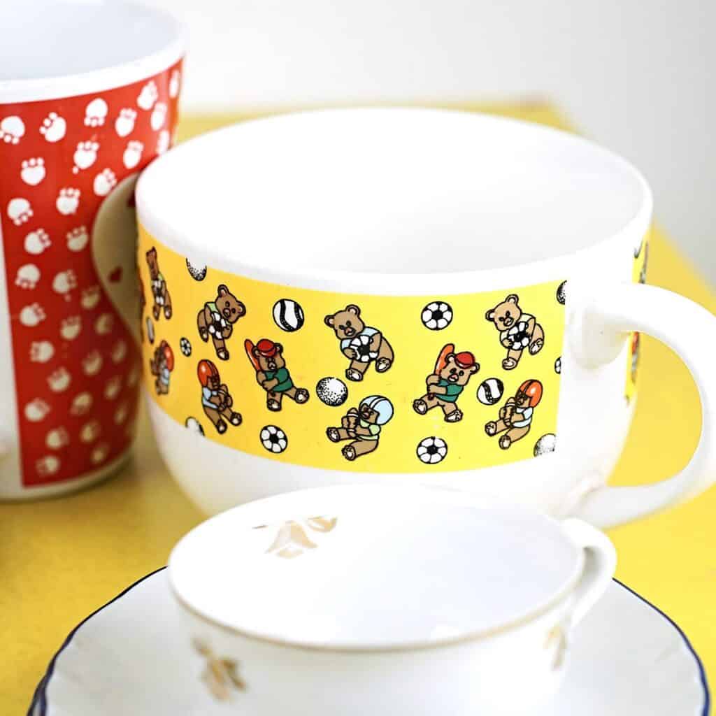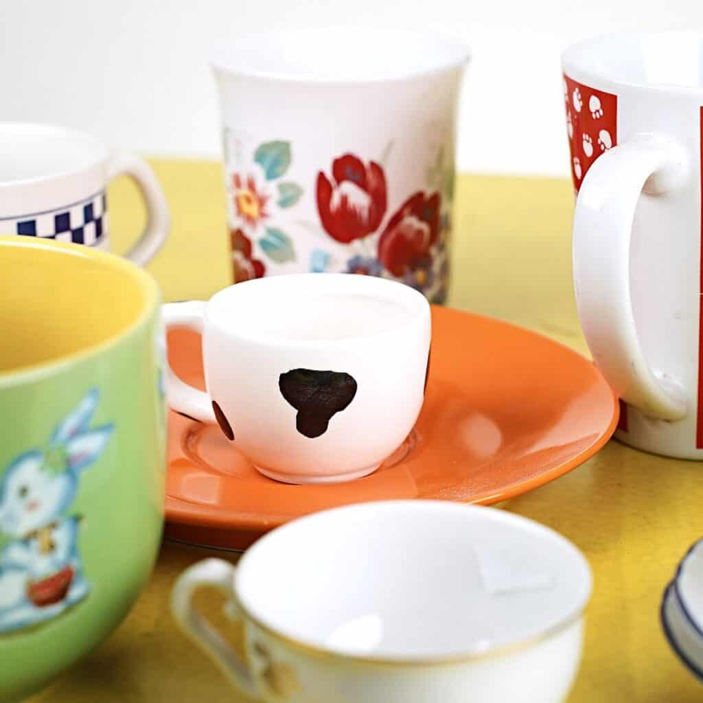 lotto di sei tazze e 4 tazzine più tre piattini con decori vari