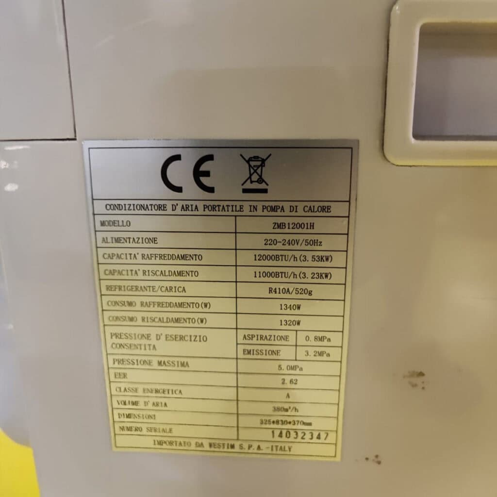 CONDIZIONATORE POmpa di calore, zephir zmb 1200 1h
