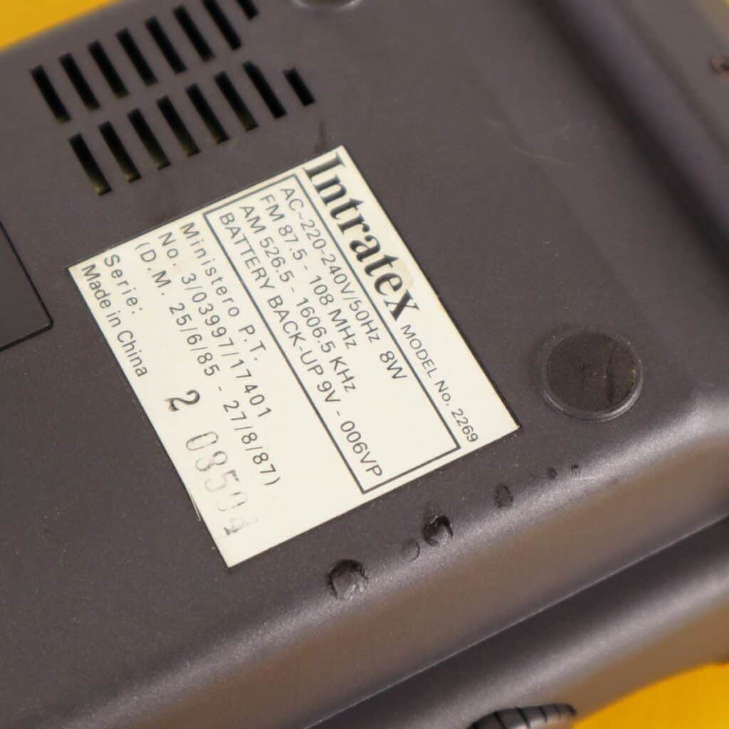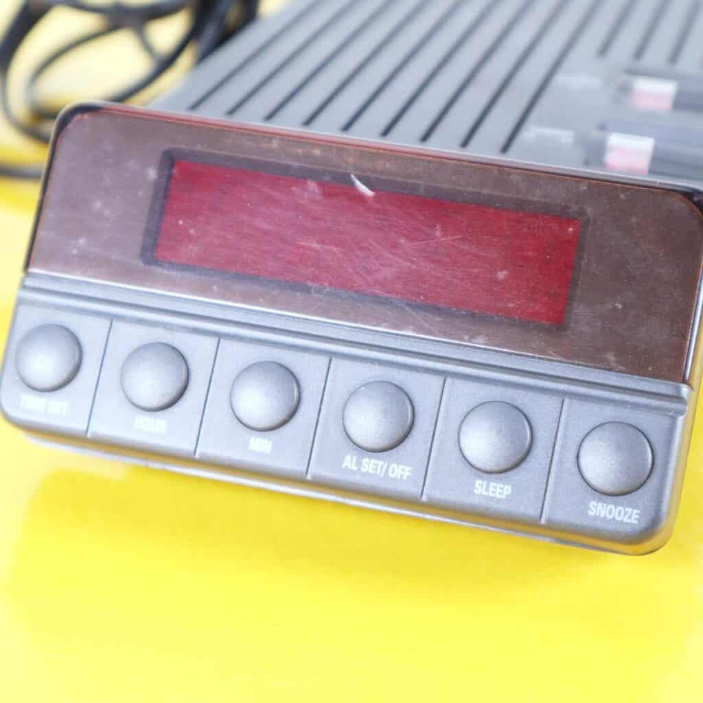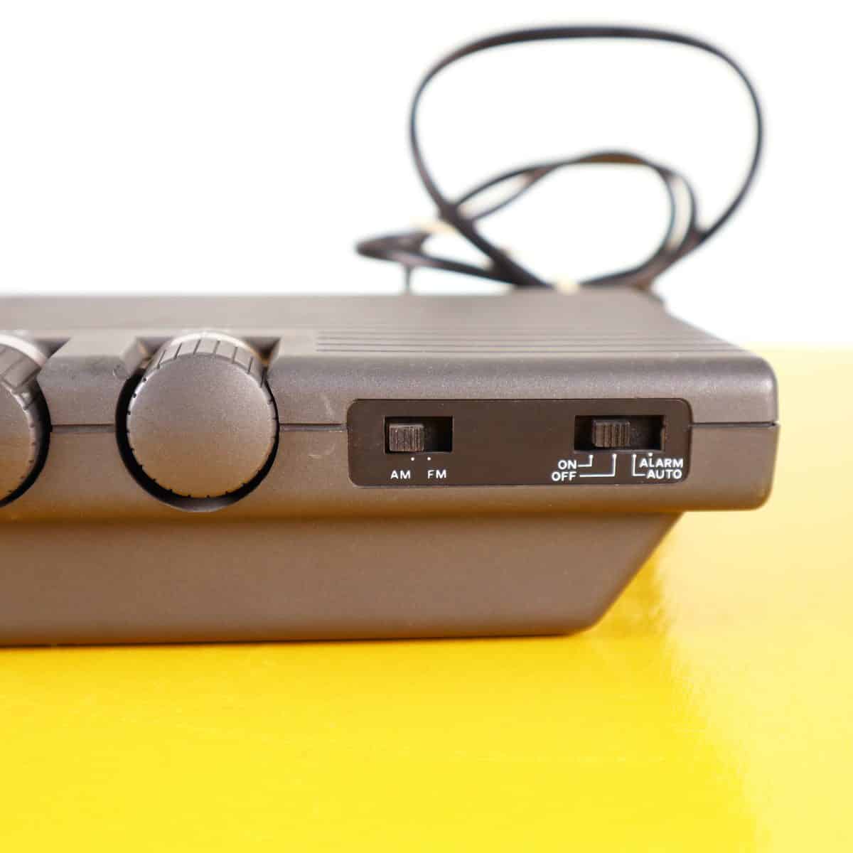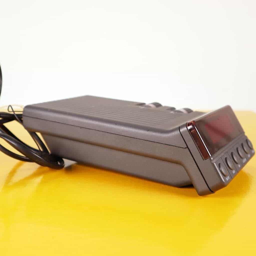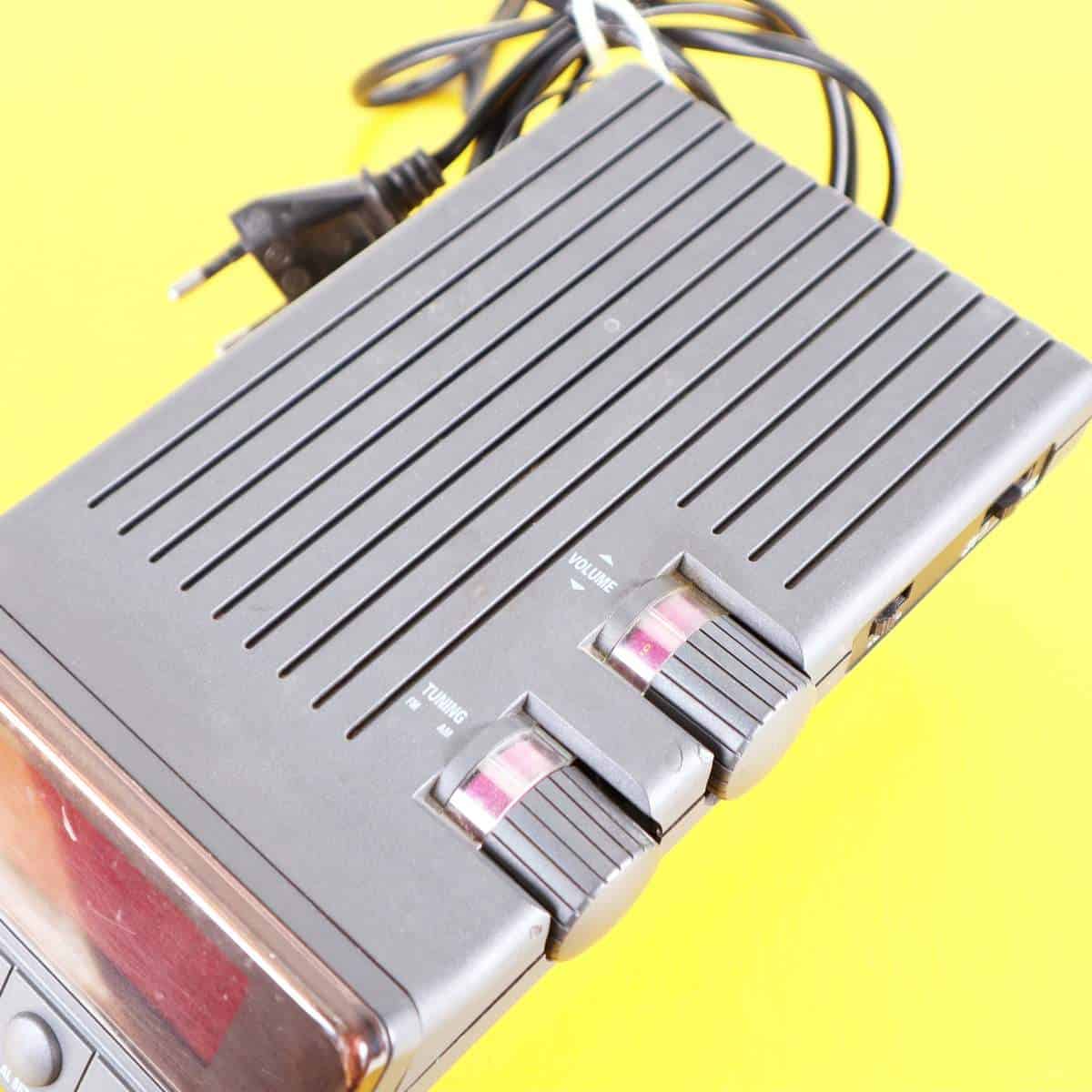 Scopri la radiosveglia Intratex, un'affascinante combinazione di estetica vintage e funzionalita' moderna. Questo oggetto di design degli anni '80 presenta un elegante rivestimento grig... Scopri la radiosveglia Intratex, un'affascinante combinazione di estetica vintage e funzionalita' moderna. Questo oggetto di design degli anni '80 presenta un elegante rivestimento grigio scuro, bottoni retroilluminati e uno schermo digitale. E' equipaggiata con sintonizzatore AM/FM e diverse funzioni utili, tra cui sveglia e snooze, rendendola perfetta sia per l'uso quotidiano che come pezzo d'arredo nel tuo spazio. Le condizioni sono buone, con pochi segni d'usura, il che la rende un'ottima scelta per gli amanti dell'arredamento vintage. Aggiungi un tocco di nostalgia al tuo comodino o utilizza questo articolo distintivo come pezzo di conversazione nel tuo studio. Altro