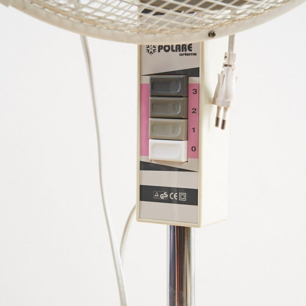 Questo ventilatore in stile vintage, datato anni '60, e' un perfetto esempio di design funzionale ed elegante. Realizzato con un'armonica combinazione di metallo cromato e plastica, pre... Questo ventilatore in stile vintage, datato anni '60, e' un perfetto esempio di design funzionale ed elegante. Realizzato con un'armonica combinazione di metallo cromato e plastica, presenta una griglia protettiva a maglie finemente lavorate e pale aerodinamiche per un'efficace diffusione dell'aria. Le sue linee pulite e il colore bianco lo rendono un'aggiunta fresca e sofisticata a qualsiasi ambiente, da spazi abitativi a studi creativi. In ottime condizioni, il ventilatore e' completamente funzionante e offre diverse impostazioni di velocita'. E' ideale per rinfrescare gli spazi interni durante i mesi estivi, o come pezzo decorativo che evoca un'atmosfera nostalgica e retro'. Altro