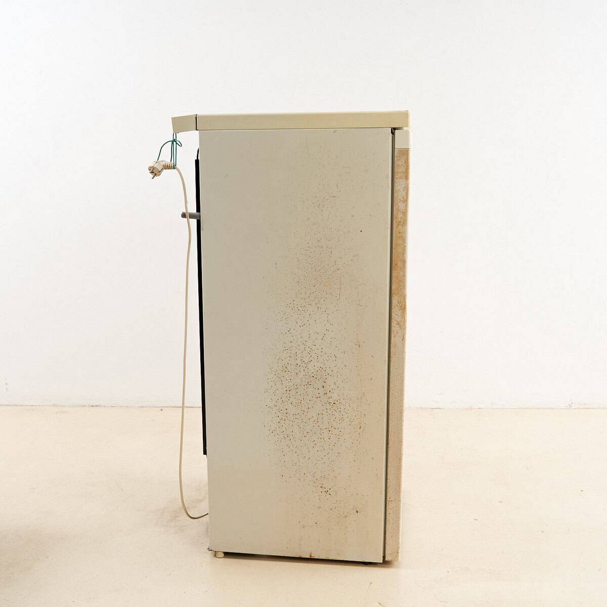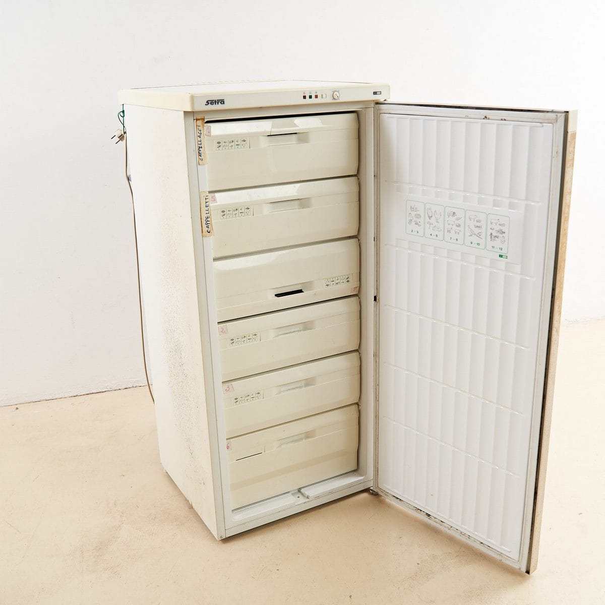 Scopri questo affascinante frigorifero vintage in stile retro', risalente agli anni '70, perfetto per gli amanti del design e dell'antiquariato. Con un originale rivestimento beige e de... Scopri questo affascinante frigorifero vintage in stile retro', risalente agli anni '70, perfetto per gli amanti del design e dell'antiquariato. Con un originale rivestimento beige e dettagli in plastica, il frigo presenta segni di usura, che raccontano la sua storia, rendendolo un pezzo unico. La porta si apre per rivelare un interno ben organizzato, con ripiani e cassetti per una facile disposizione degli alimenti. Questo elettrodomestico non e' solo funzionale ma aggiunge un tocco nostalgico a qualsiasi ambiente, ideale per una cucina vintage o come elemento decorativo. Perfetto anche per essere trasformato in un mobile bar o in un espositore creativo, portando un tocco di storia e stile nel tuo spazio. Altro