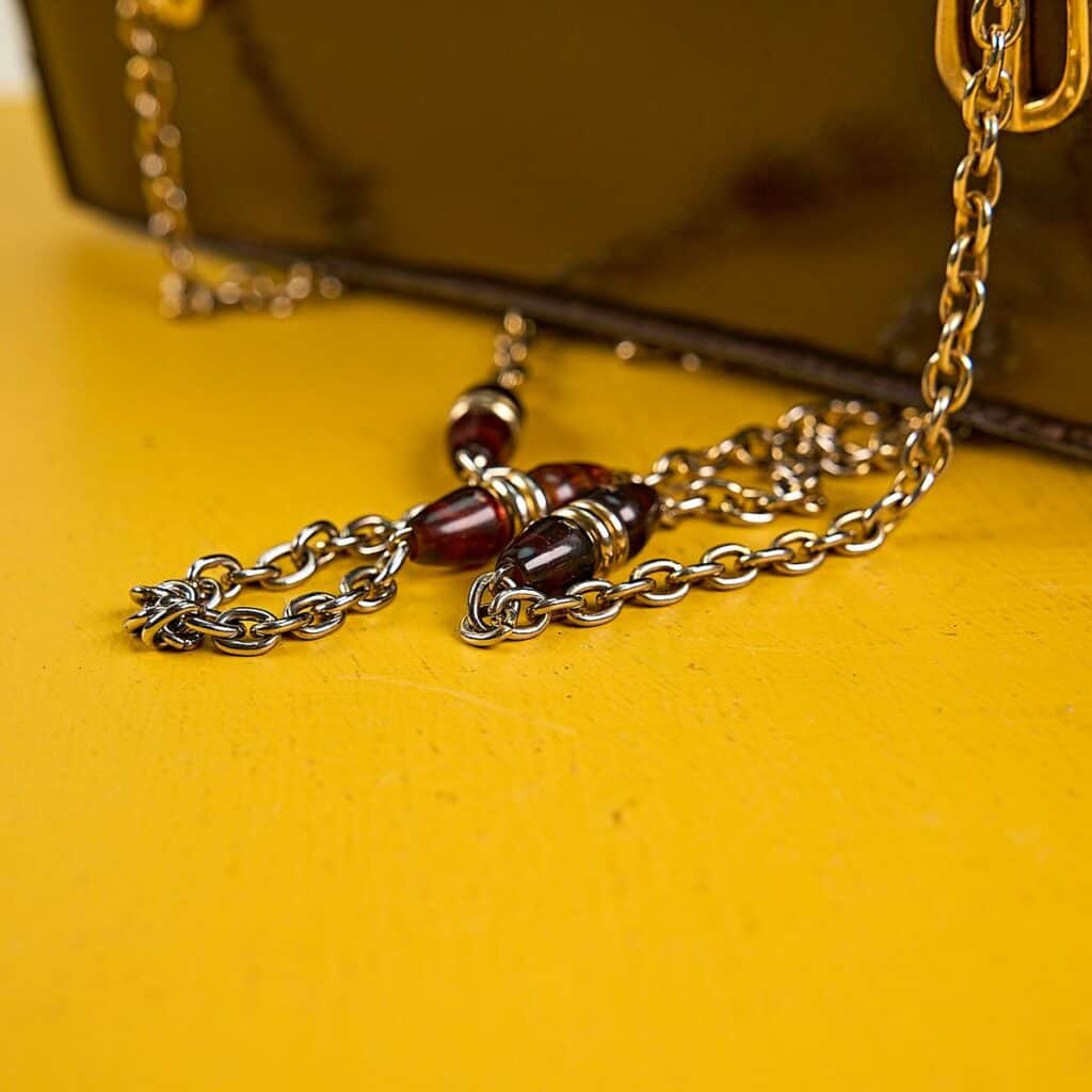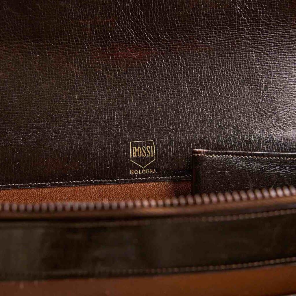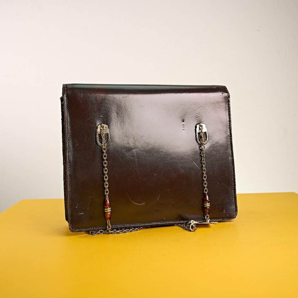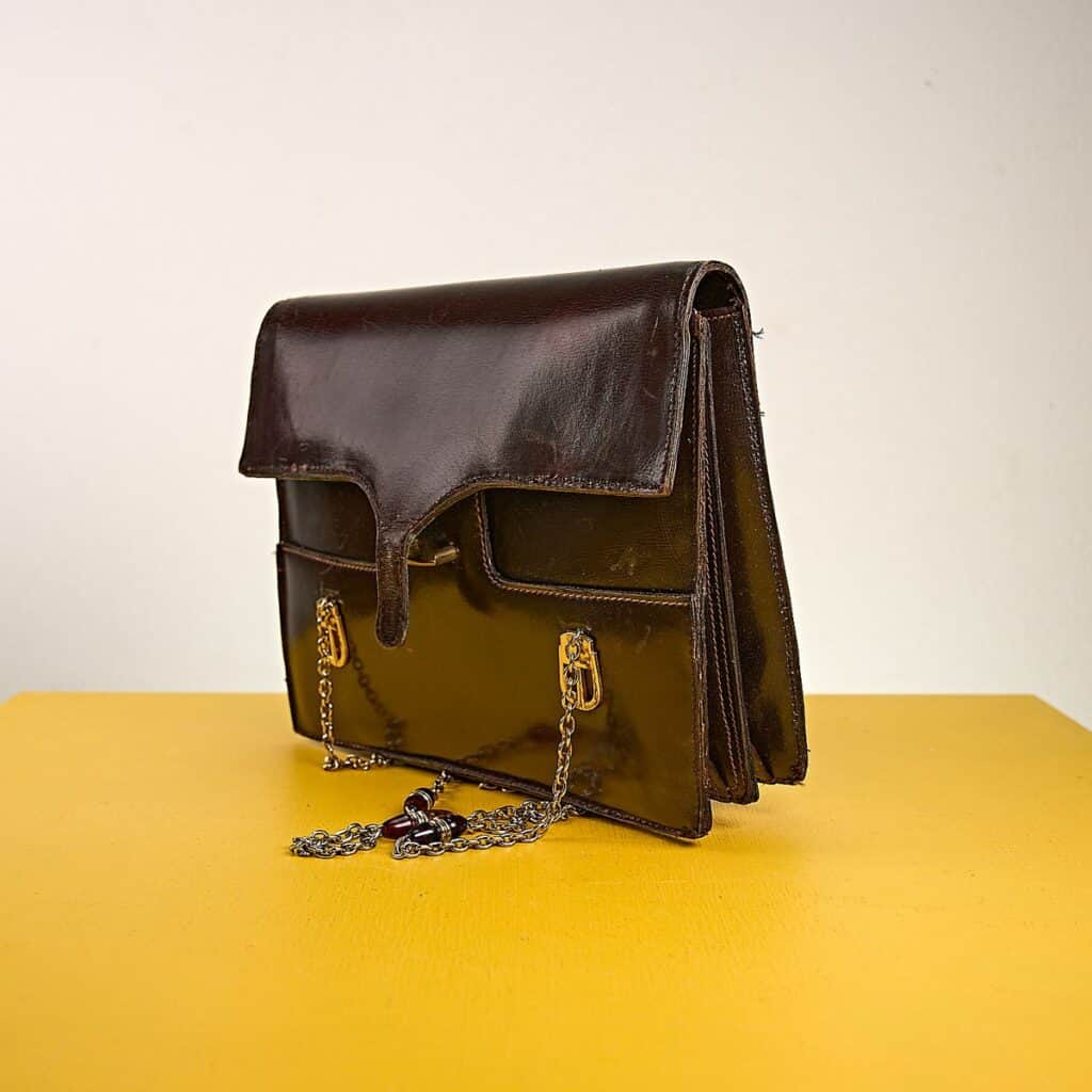 borsetta vintage in pelle marrone con doppia tracolla in metallo, rossi bologna