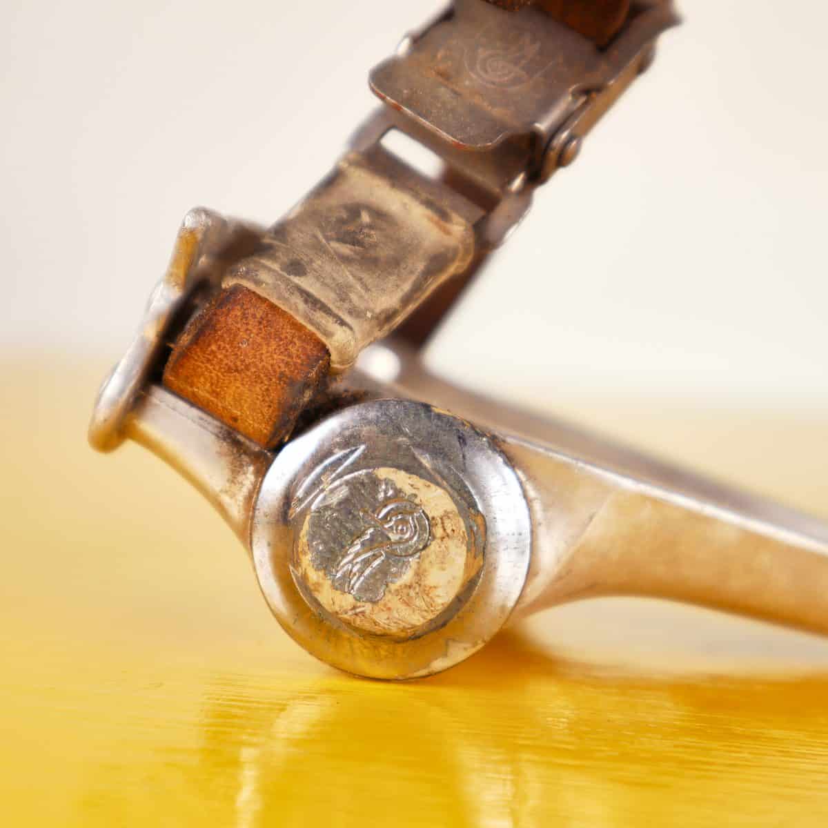 Questi pedali Campagnolo, simbolo di eccellenza nel mondo del ciclismo, presentano un design robusto e nostalgico. Realizzati in alluminio di alta qualita', con cinturini in pelle che mostrano un... Questi pedali Campagnolo, simbolo di eccellenza nel mondo del ciclismo, presentano un design robusto e nostalgico. Realizzati in alluminio di alta qualita', con cinturini in pelle che mostrano un leggero segno d'usura, questi pedali risalgono a un'epoca in cui l'artigianato di precisione era la norma. Ideali per collezionisti o per ciclisti in cerca di accessori re'tro da competizione, si adattano perfettamente a biciclette d'epoca o moderne. Le caratteristiche includono un sistema di aggancio facile e un meccanismo di sgancio rapido, combinando funzionalita' e stile per un look autentico. Altro