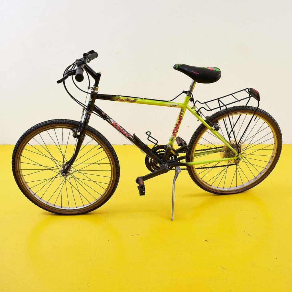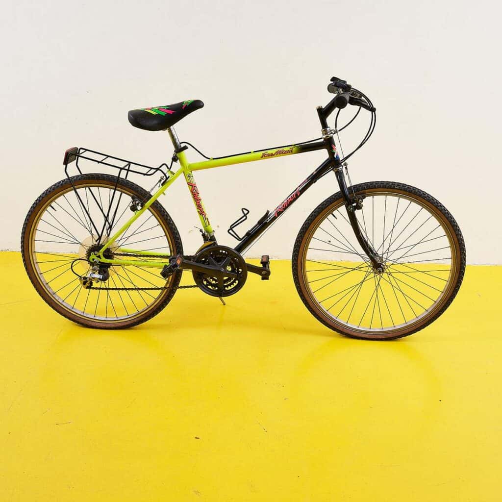 Scopri la nostra affascinante bicicletta da montagna vintage, un esempio unico di design classico e funzionalita'. Caratterizzata da un telaio robusto e colorato in verde lime e nero, questa bici... Scopri la nostra affascinante bicicletta da montagna vintage, un esempio unico di design classico e funzionalita'. Caratterizzata da un telaio robusto e colorato in verde lime e nero, questa bici combina nostalgia e performance. I suoi cerchi in legno robusto e manopole in gomma offrono comfort e stabilita', mentre il portapacchi posteriore aggiunge praticita' per le tue avventure. Questa bicicletta e' perfetta per chi cerca un pezzo di storia da utilizzare o collezionare, rappresentando un'epoca in cui il design di qualita' era al centro dell'ingegneria. Porta a casa un pezzo unico! Altro