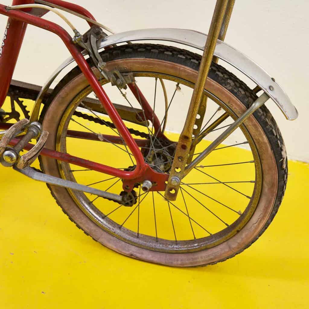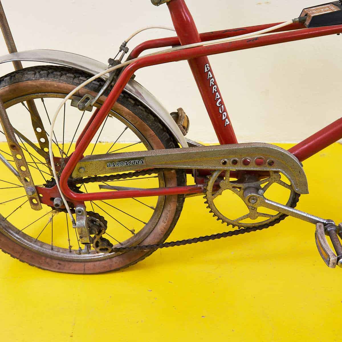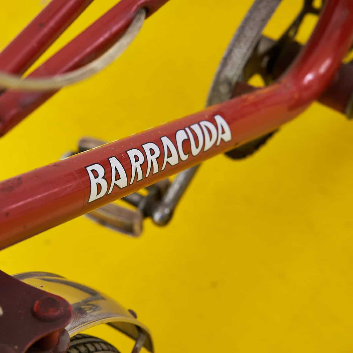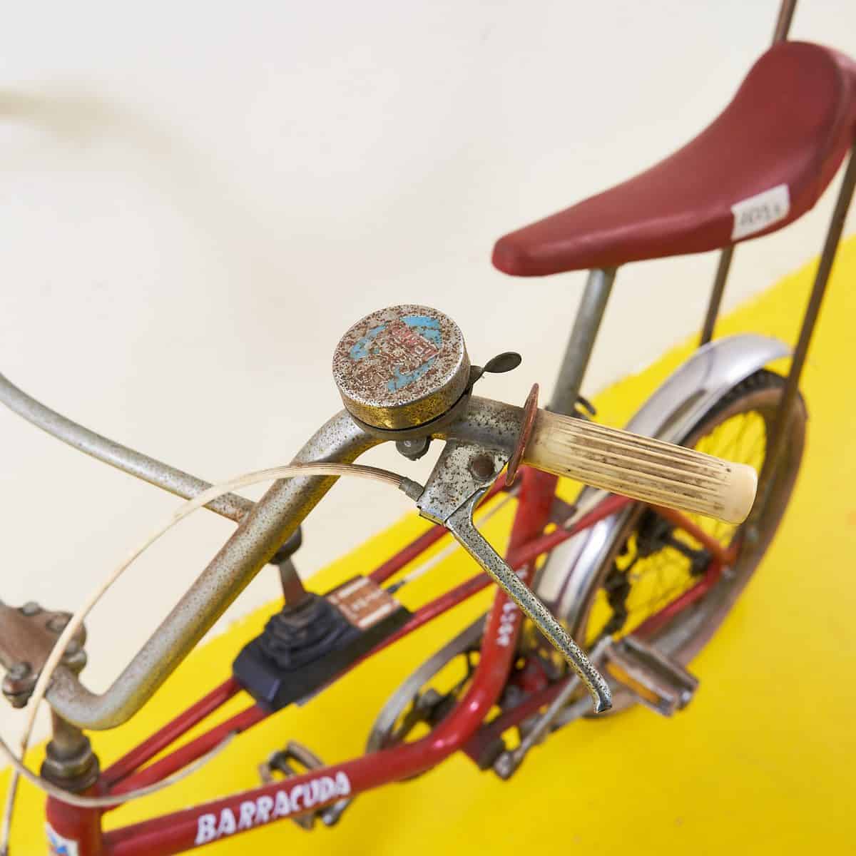 Scopri la leggendaria bici Barracuda, un pezzo di storia del design degli anni '70. Questo modello in un vivace rosso e' caratterizzato da un design distintivo, con un manubrio alto e una se... Scopri la leggendaria bici Barracuda, un pezzo di storia del design degli anni '70. Questo modello in un vivace rosso e' caratterizzato da un design distintivo, con un manubrio alto e una sella ergonomica. La struttura, realizzata in metallo resistente, presenta un logo originale che riporta il nome 'Barracuda' con caratteri audaci. Le sue ruote compatte e il telaio robusto non solo la rendono un'ottima scelta per collezionisti, ma anche un oggetto decorativo unico. Anche se presenta lievi segni del tempo, la bici conserva il suo fascino vintage, perfetta per esposizioni o come pezzo suggestivo in un arredamento retro. Non perdere l'occasione di possedere un autentico pezzo di design che racconta una storia affascinante. Altro