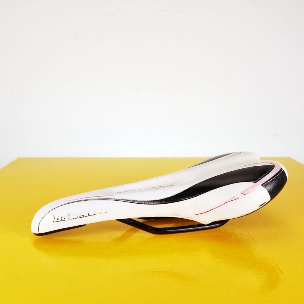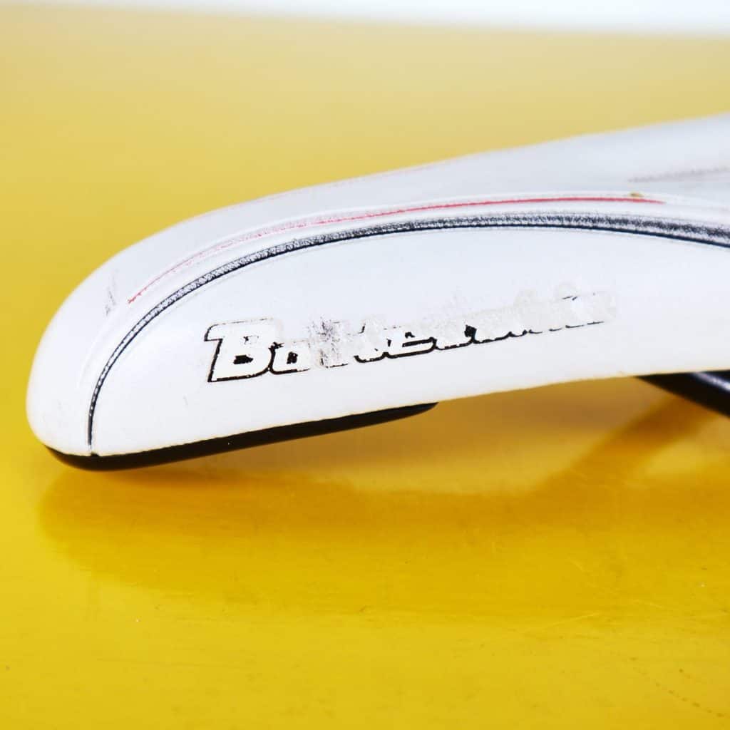 Scopri questa impeccabile sella Bottecchia vintage, un oggetto di design affascinante degli anni '80. Realizzata con materiali di alta qualita', presenta una finitura in pelle bianca con det... Scopri questa impeccabile sella Bottecchia vintage, un oggetto di design affascinante degli anni '80. Realizzata con materiali di alta qualita', presenta una finitura in pelle bianca con dettagli neri, offrendo un look audace e distintivo. Il design ergonomico e' perfetto per i ciclisti che cercano comfort e stile, rendendo questa sella adatta sia per l'uso quotidiano che per collezionisti. Nonostante alcuni segni d'usura comuni per un articolo di questa epoca, e' in buone condizioni generali, pronta a dare nuova vita alla tua bicicletta. Questa sella rappresenta non solo un accessorio, ma un pezzo di storia del ciclismo. Altro