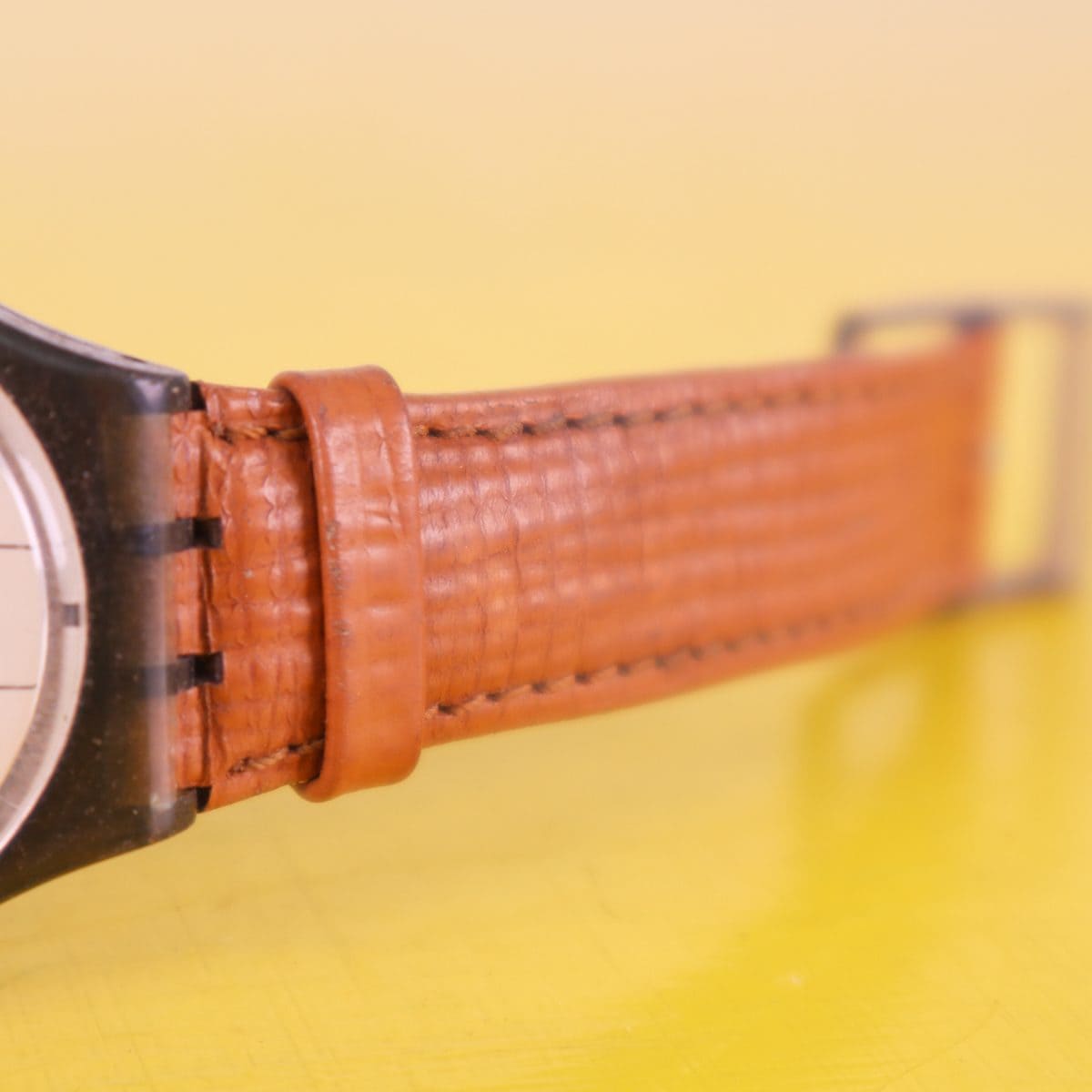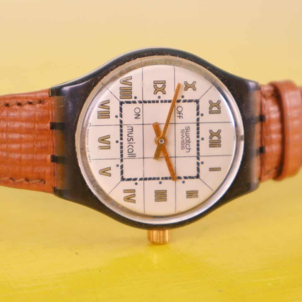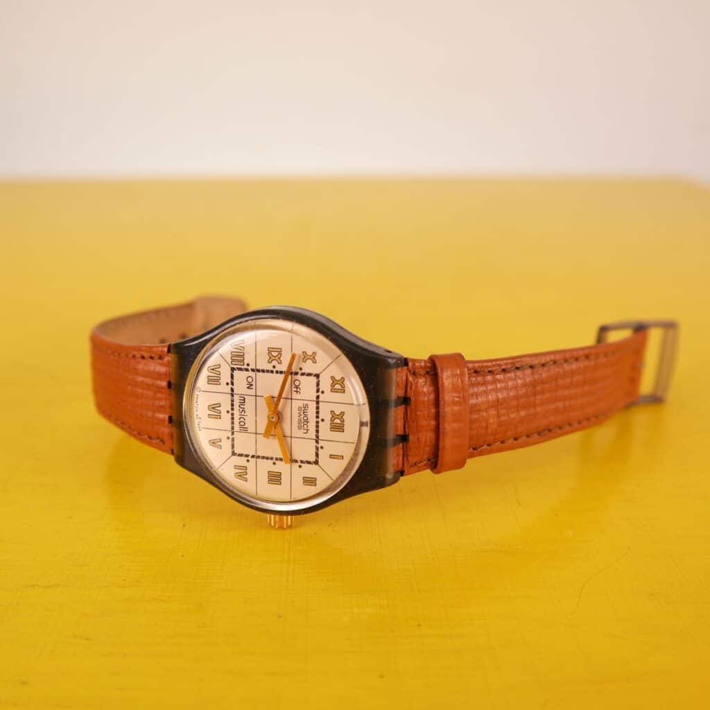 Scopri l"affascinante orologio Swatch degli anni "80, un vero gioiello di design che unisce funzionalità e stile retrò. Questo modello, dotato di cassa in plastica dal design essenziale, è arricchito ... Scopri l"affascinante orologio Swatch degli anni "80, un vero gioiello di design che unisce funzionalità e stile retrò. Questo modello, dotato di cassa in plastica dal design essenziale, è arricchito da un cinturino in pelle marrone che aggiunge un tocco di eleganza senza tempo. Il quadrante, con numeri romani e un originale indicatore musicale, rappresenta un'epoca di innovazione e creatività svizzera. Nonostante il passare degli anni, l"orologio si presenta in buone condizioni, conservando tutto il suo fascino originale. Ideale per collezionisti o amanti dello stile vintage, può essere indossato quotidianamente per aggiungere un tocco di distinzione o esposto come pezzo unico di design e storia. Perfetto per chi desidera un accessorio esclusivo e ricco di personalità. Altro