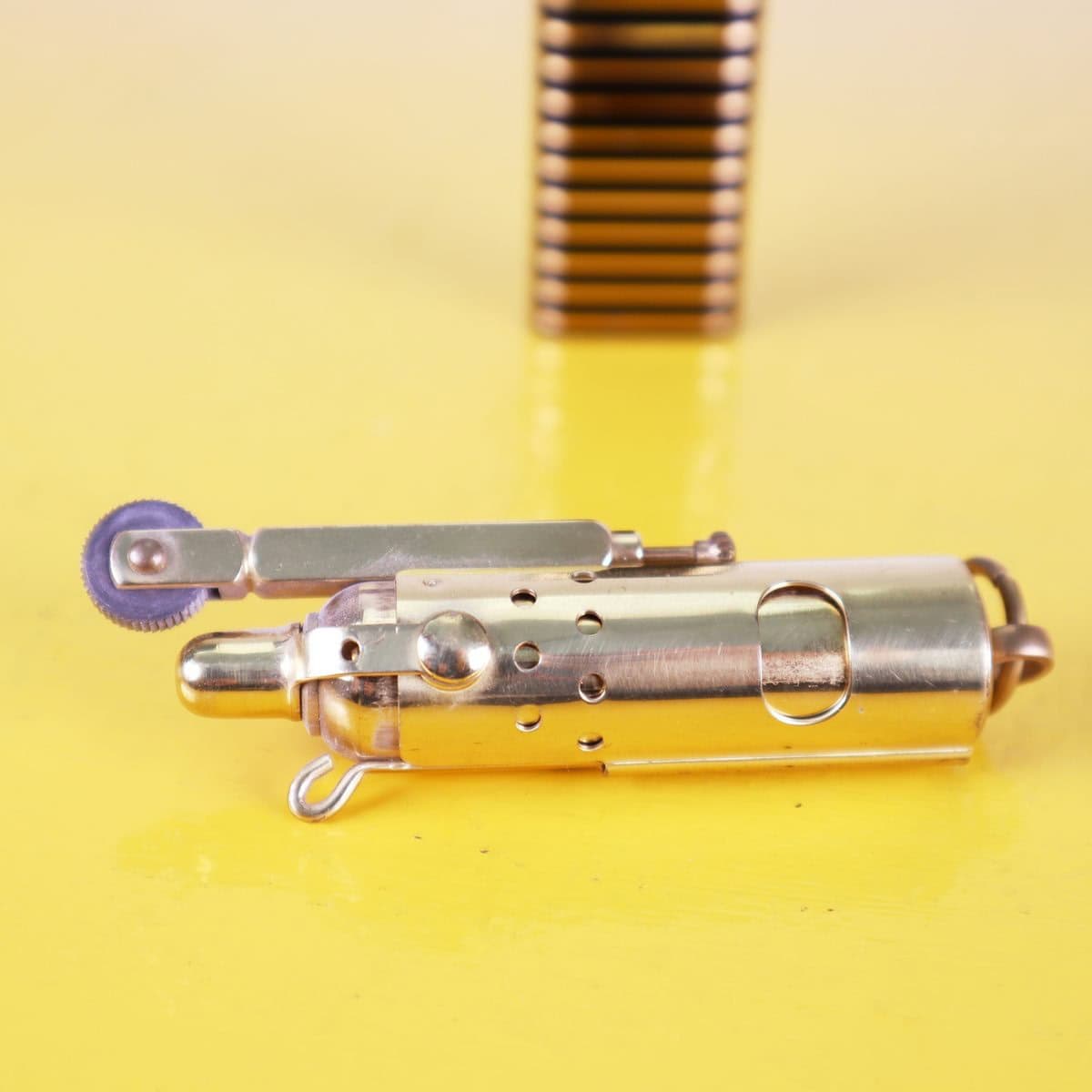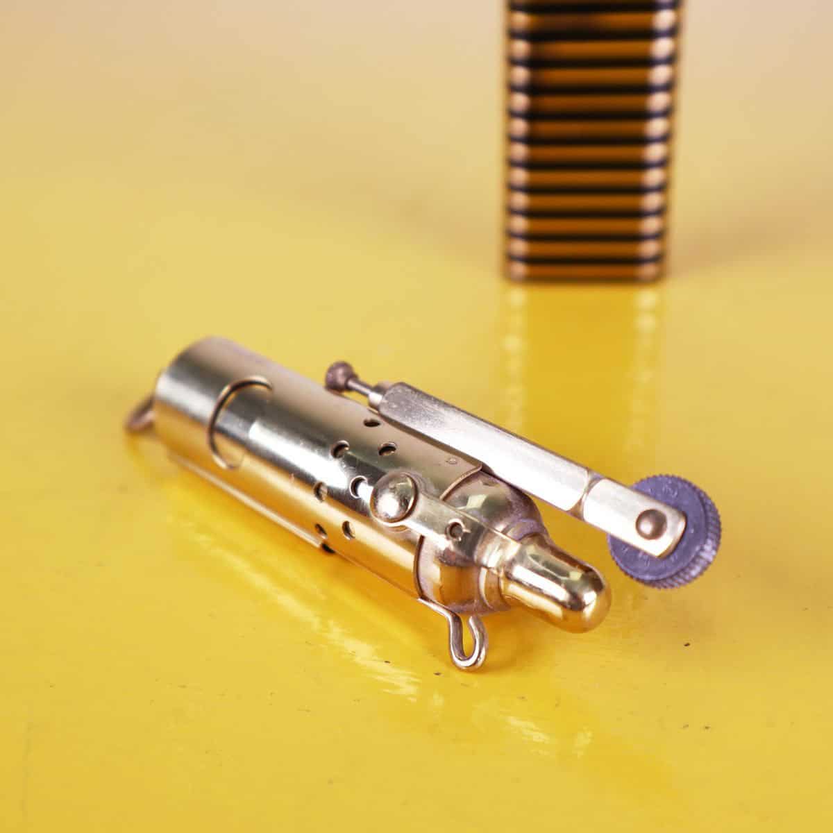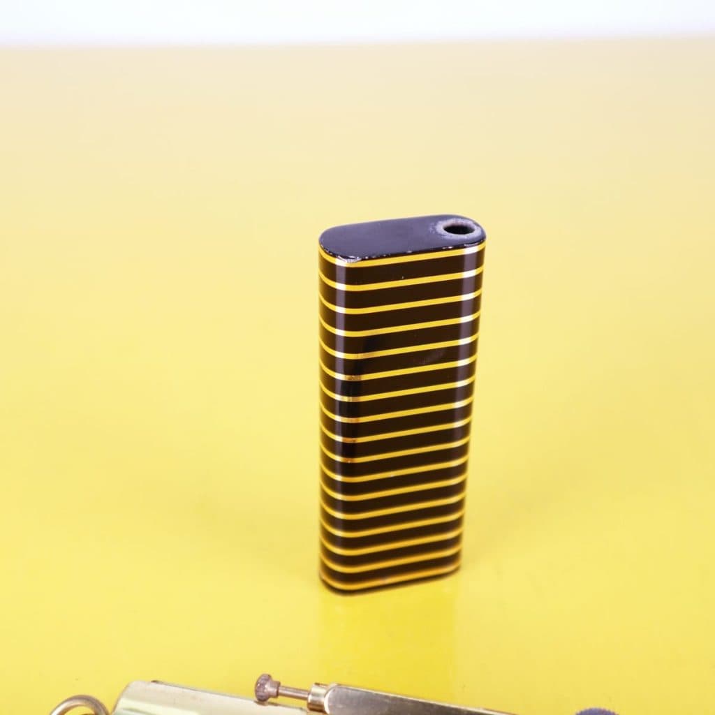 Scopri questa coppia di accendini vintage, perfetta per gli amanti del design d'epoca. Il primo accendino presenta una finitura dorata lucida con dettagli decorativi, mentre il secondo accendino ... Scopri questa coppia di accendini vintage, perfetta per gli amanti del design d'epoca. Il primo accendino presenta una finitura dorata lucida con dettagli decorativi, mentre il secondo accendino ha un elegante rivestimento a righe nere e oro. Realizzati con attenzione ai dettagli, sono accessori ideali per collezionisti o come oggetti decorativi su un tavolo. Entrambi i pezzi sono in ottime condizioni, con segni leggeri di utilizzo, e funzionano perfettamente. Aggiungi un tocco di stile re'tro al tuo arredamento o sorprendi un amico con un regalo unico! Altro