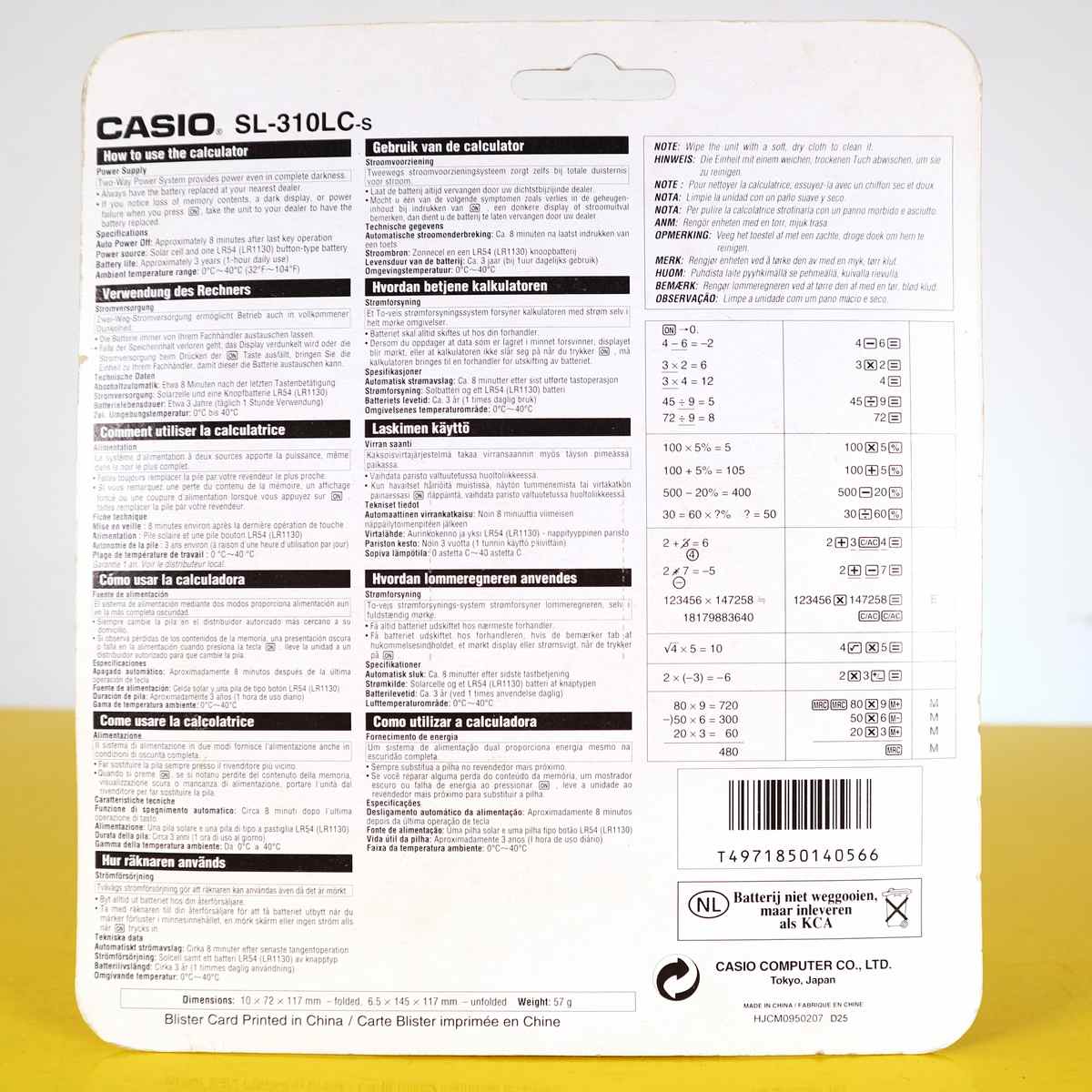 Presentiamo la calcolatrice Casio SL-310LC, un modello vintage con un design compatto e funzionale, progettato per l'uso quotidiano. Prodotta negli anni '80, questa calcolatrice include un a... Altro