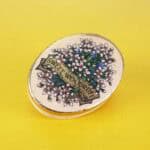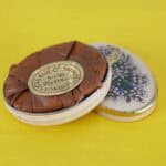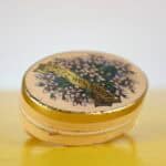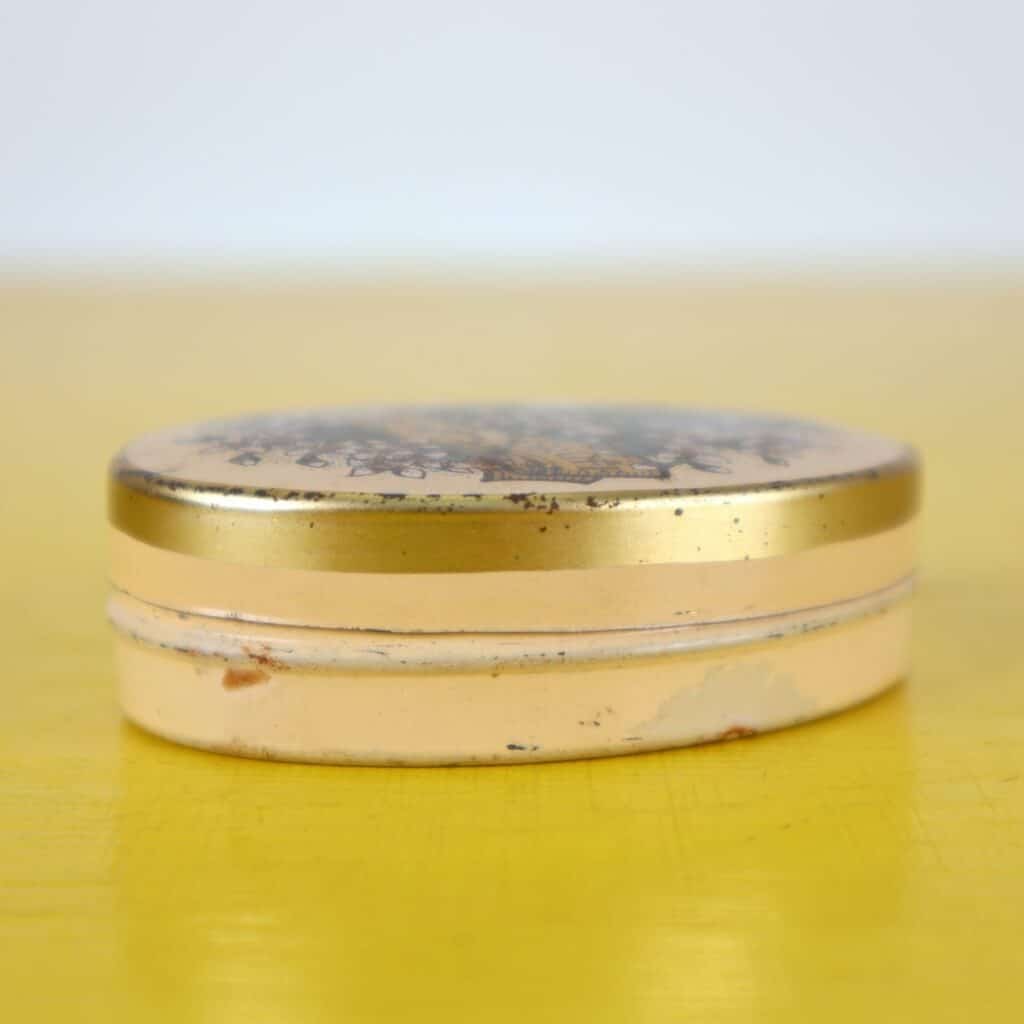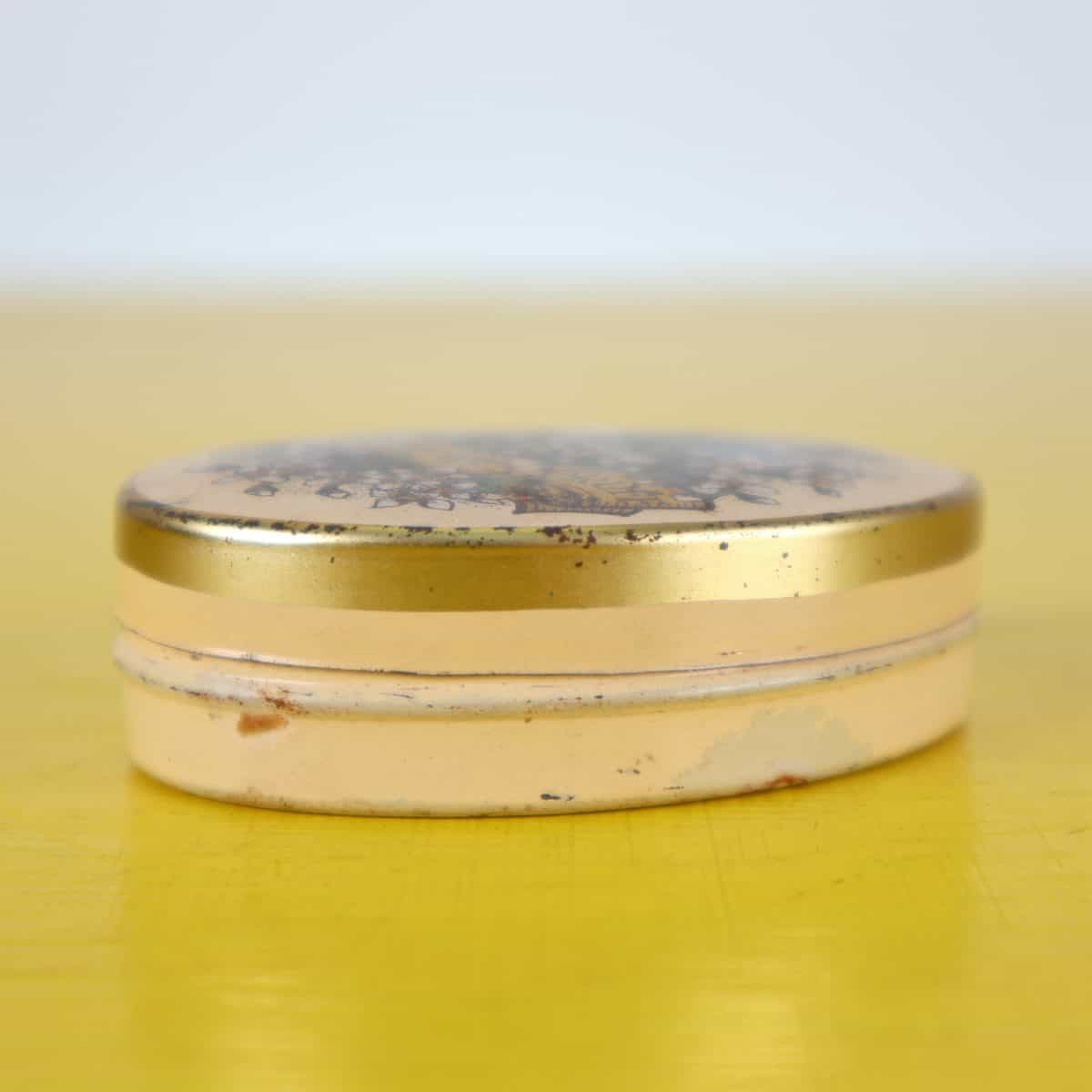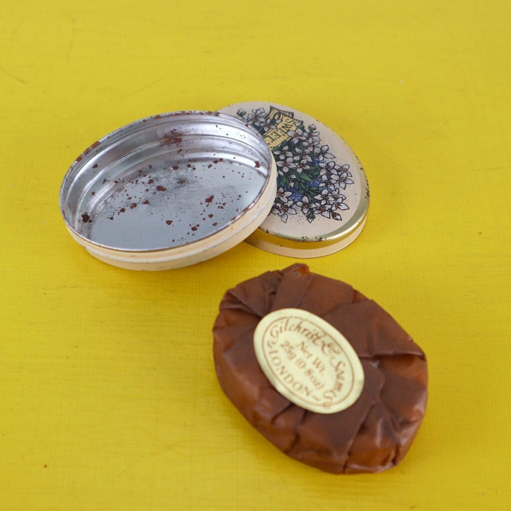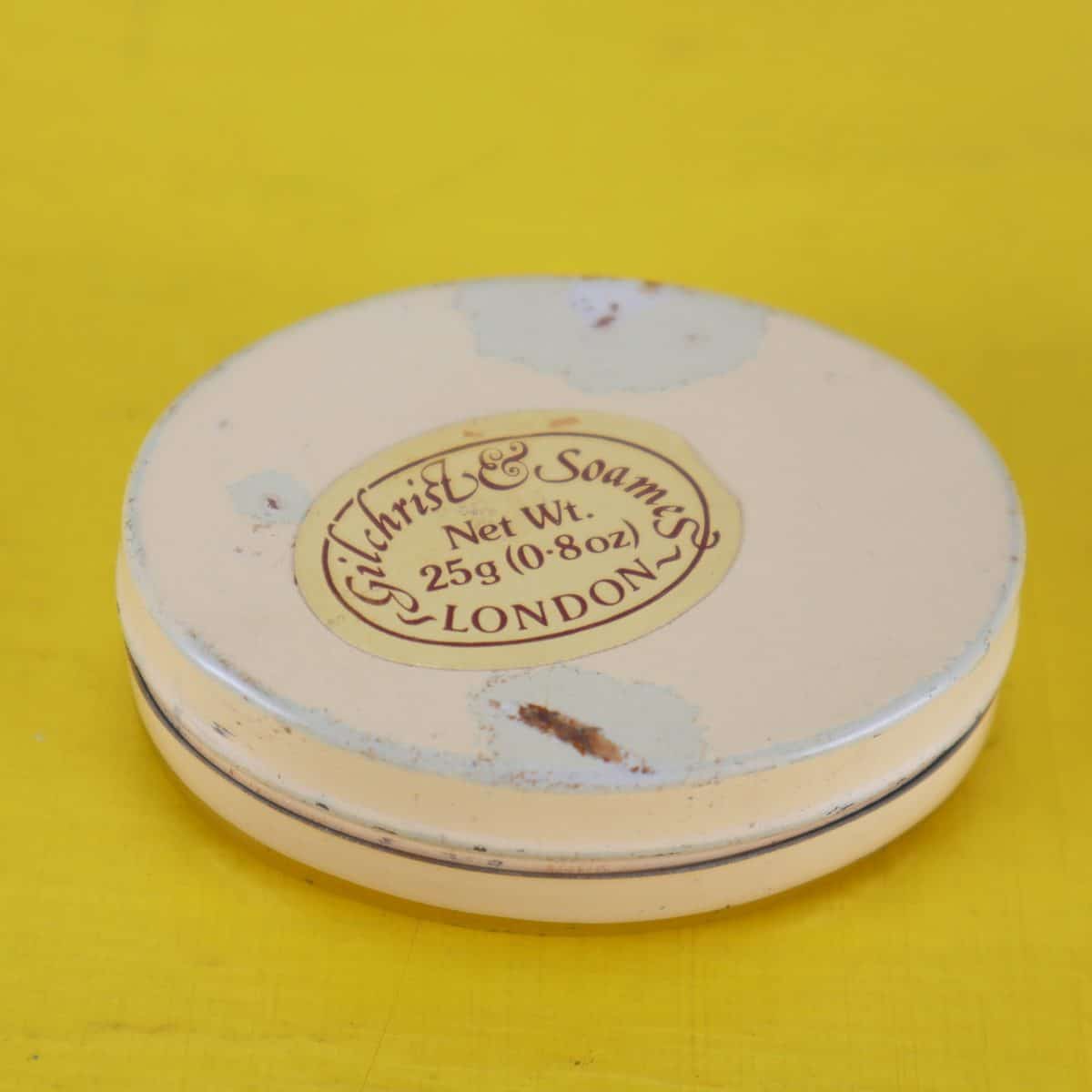 Scopri l"eleganza intramontabile di questa scatola di cipria vintage, un autentico pezzo di design inglese d"epoca. Realizzata da Gilchrist & Soames di Londra, nota per la sua tradizione nel crear... Scopri l"eleganza intramontabile di questa scatola di cipria vintage, un autentico pezzo di design inglese d"epoca. Realizzata da Gilchrist & Soames di Londra, nota per la sua tradizione nel creare articoli di qualità, questa scatola in metallo è decorata con un motivo floreale raffinato che rappresenta il dolce legno odoroso. Le condizioni dell"oggetto sono ottime, evidenziando solo lievi segni del tempo che ne accentuano il fascino. Il coperchio mostra un"incantevole illustrazione colorata, mentre l"interno contiene ancora la sua cipria originale avvolta in una carta marrone, aggiungendo valore storico. Perfetta come pezzo da collezione o come regalo per gli amanti del design retro, questa scatola di cipria può essere esposta come decorazione oppure utilizzata per piccoli accessori, unendo bellezza e funzionalità. Un vero tesoro per chi apprezza il tocco raffinato del passato. Altro