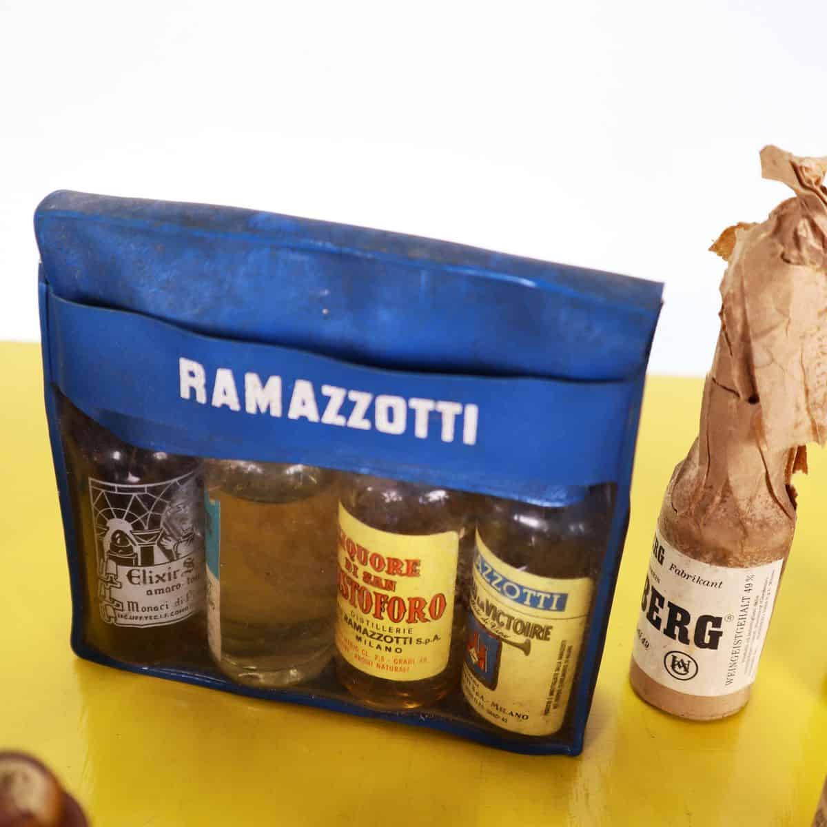 Scopri questa affascinante collezione di bottiglie di liquori e grappe provenienti da diverse epoche e stili. Ogni bottiglia presenta un design unico, con etichette colorate e caratteristiche distinti... Scopri questa affascinante collezione di bottiglie di liquori e grappe provenienti da diverse epoche e stili. Ogni bottiglia presenta un design unico, con etichette colorate e caratteristiche distintive che raccontano storie di tradizione e artigianalita'. Tra i pezzi spiccano marchi iconici come Ramazzotti e Mirabella, perfetti per arricchire la tua collezione o come elemento decorativo e conversazione. In ottime condizioni, queste bottiglie, alcune con il loro incarto originale, possono essere un'aggiunta preziosa a una vetrina, un bar o un'area di esposizione. Non perdere l'opportunita' di possedere un pezzo di storia liquoristica! Altro