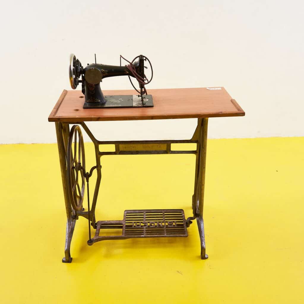 Scopri un pezzo di storia con questa affascinante macchina da cucire vintage. Caratterizzata da un elegante design, la macchina e' montata su un robusto telaio in ferro con un piano in legno lacc... Scopri un pezzo di storia con questa affascinante macchina da cucire vintage. Caratterizzata da un elegante design, la macchina e' montata su un robusto telaio in ferro con un piano in legno laccato, che aggiunge un tocco di nostalgia e stile a qualsiasi ambiente. I dettagli dipinti a mano sul corpo della macchina raccontano storie di creativita' e artigianato. Questo oggetto non e' solo un attrezzo pratico, ma anche un elemento decorativo che arricchira' ogni stanza. Perfetta per collezionisti o come pezzo unico per il tuo arredamento. Altro