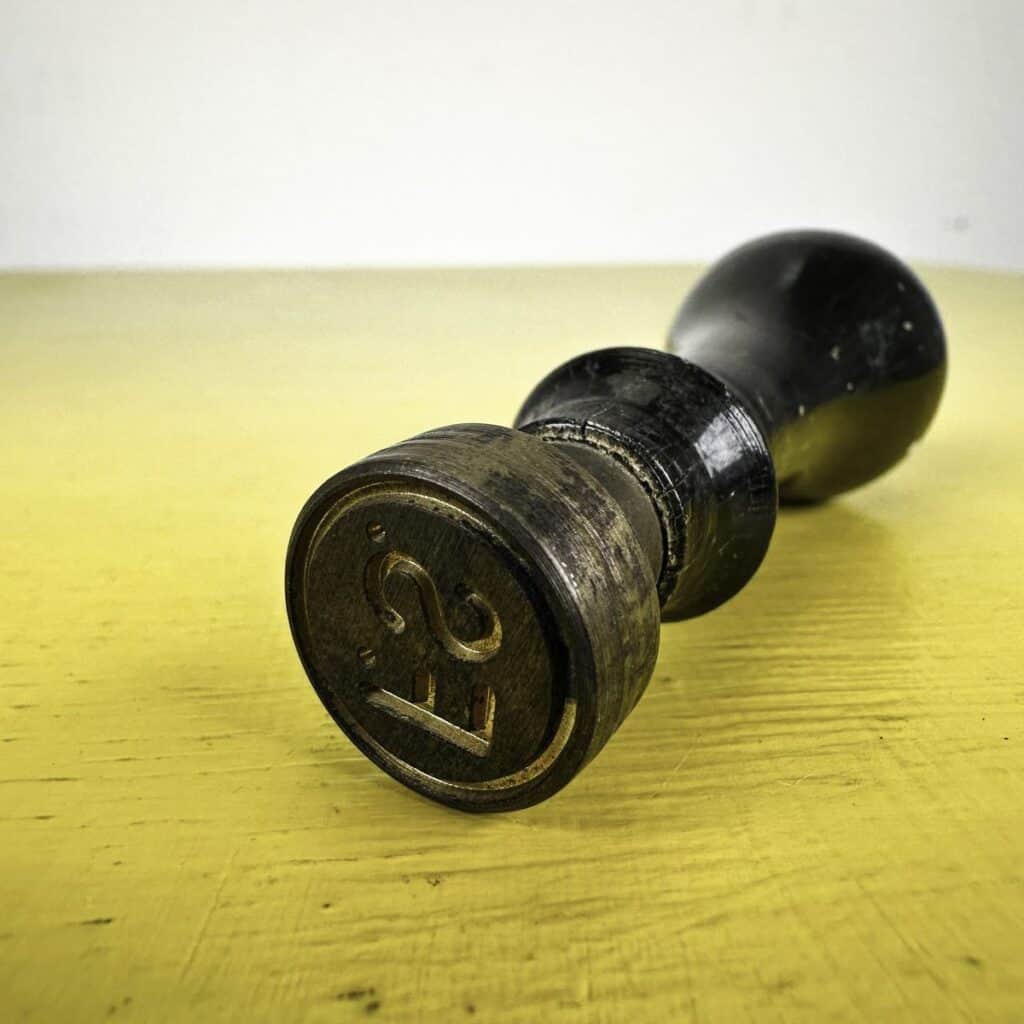 timbro vintage fs in legno e ottone