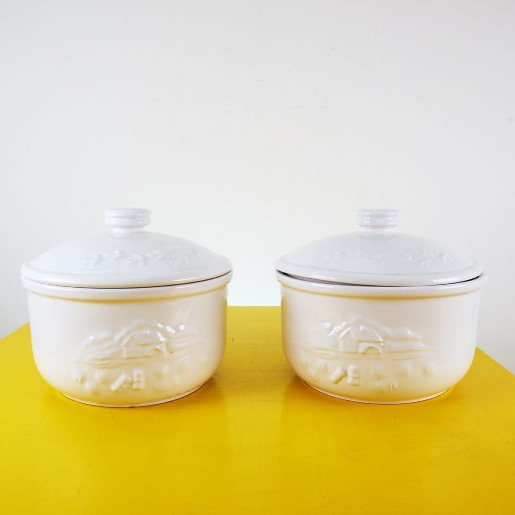 coppia di biscottiere in ceramica mulino bianco