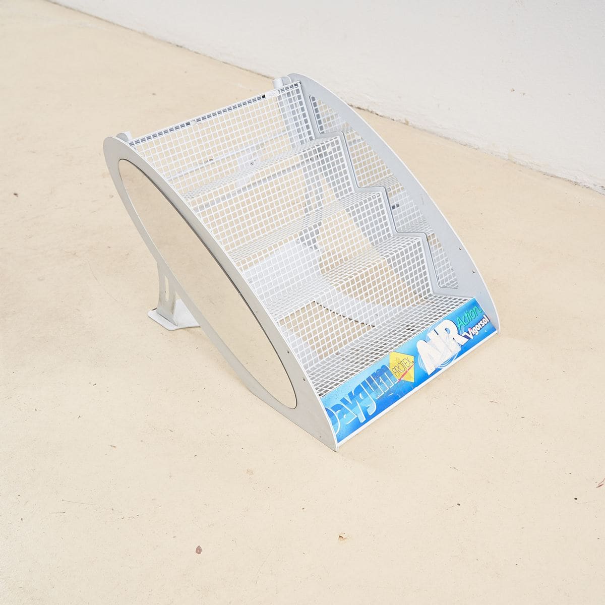 Scopri il fascino unico espositore da bar vintage, un autentico pezzo di design degli anni '70. Caratterizzata da una struttura elegante in metallo verniciato bianco e da un grande specchio ovale... Scopri il fascino unico espositore da bar vintage, un autentico pezzo di design degli anni '70. Caratterizzata da una struttura elegante in metallo verniciato bianco e da un grande specchio ovale, questo oggetto combina funzionalita' e estetica. La base solida e i dettagli del design creano un effetto visivo accattivante, ideale per qualsiasi ambiente moderno o retro. Puo' essere utilizzata come elemento decorativo in soggiorno, come parte di un ingresso. In buone condizioni, presenta leggeri segni del tempo che ne arricchiscono il carattere. Un vero must-have per gli amanti del design d'epoca! Altro