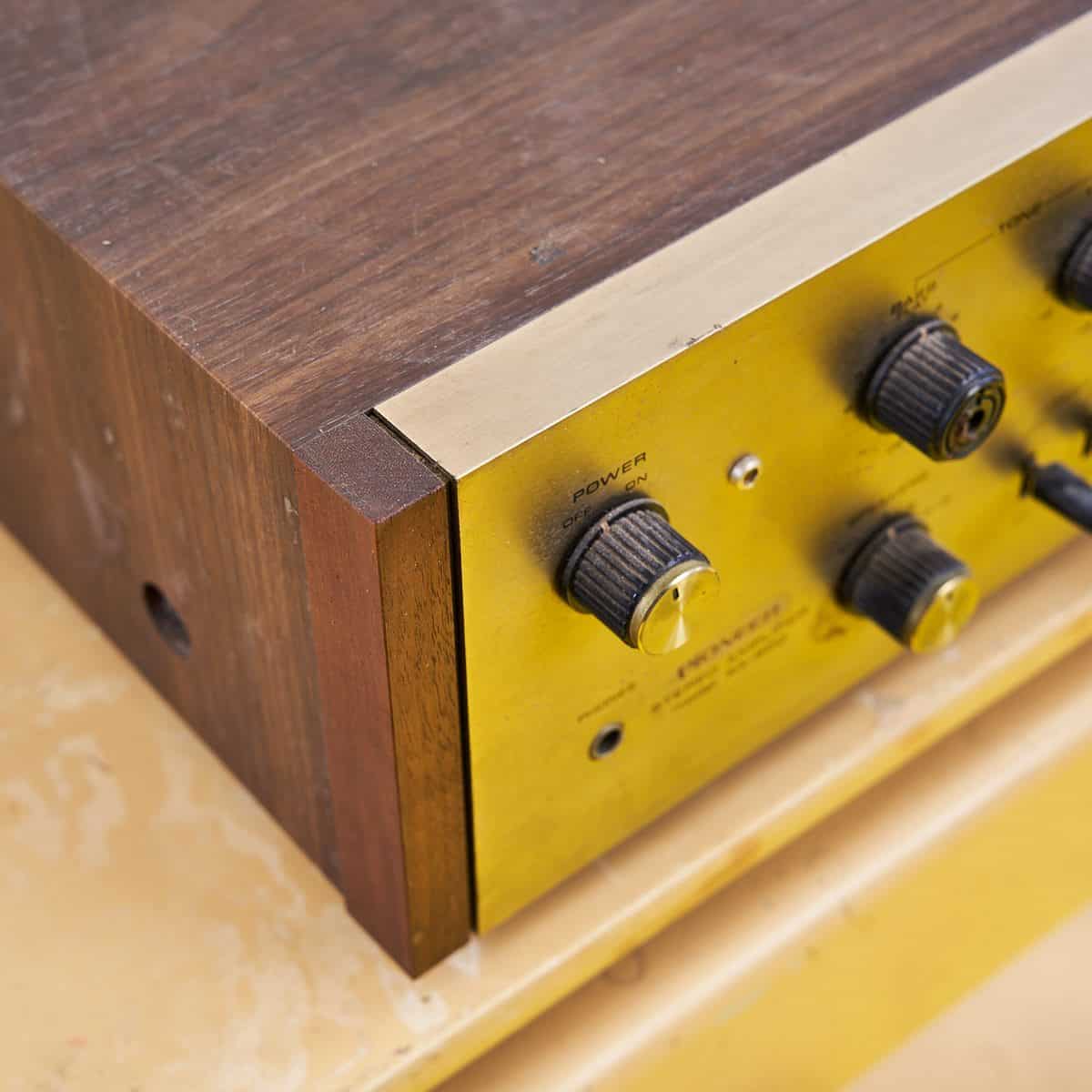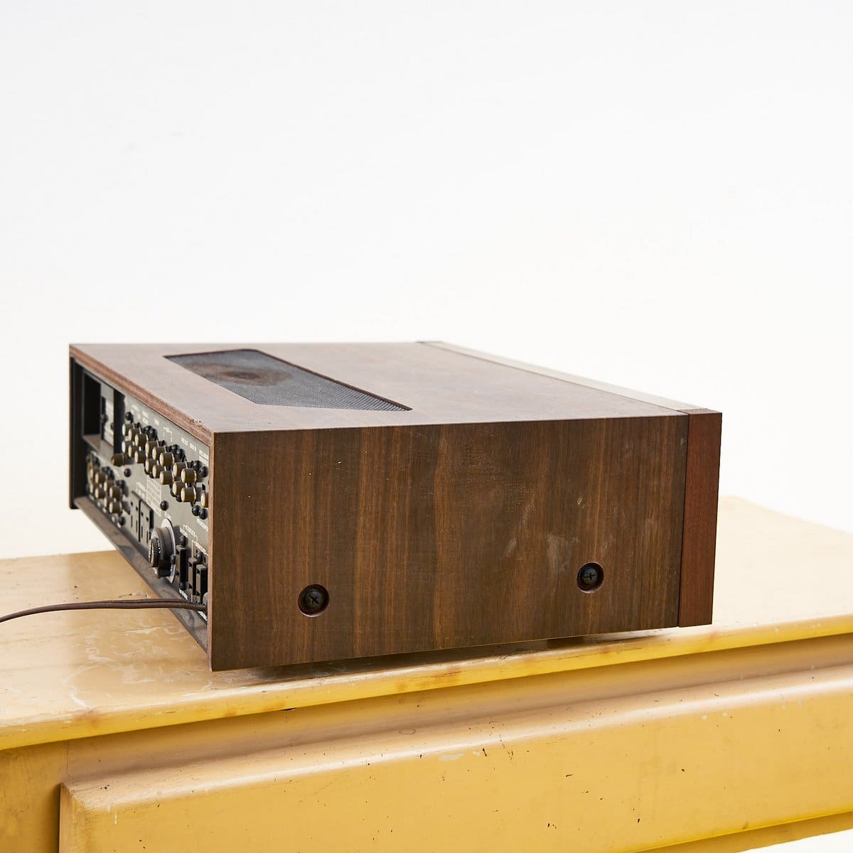 Scopri l'eleganza senza tempo dell'amplificatore stereo Pioneer SA-800, un dispositivo iconico degli anni '70. Con un design raffinato, la parte frontale presenta dettagli in ottone luc... Scopri l'eleganza senza tempo dell'amplificatore stereo Pioneer SA-800, un dispositivo iconico degli anni '70. Con un design raffinato, la parte frontale presenta dettagli in ottone lucido e comandi ben dettagliati, inclusi potenziometri per il volume e toni, assicurando un'esperienza sonora personalizzata. Realizzato con un elegante rivestimento in legno, questo amplificatore non e' solo un pezzo funzionale ma anche un autentico complemento d'arredo. Le condizioni di questo oggetto vintage sono ottime, preservando il suo fascino d'epoca. Perfetto per gli amanti del suono di alta qualita' o come elemento distintivo in un salotto retro. Ideale per connettivita' con giradischi o sistemi audio, offre un suono ricco e avvolgente, riportando alla vita le melodie del passato. Altro
