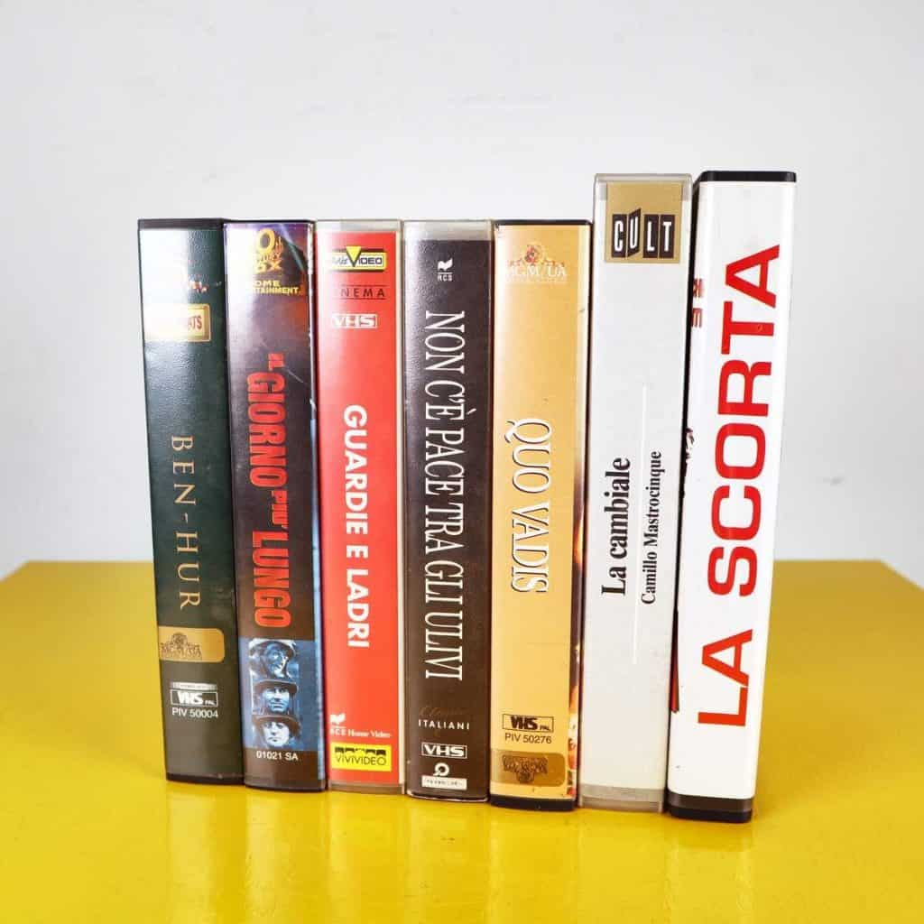 Scopri questa affascinante collezione di cassette VHS vintage, perfette per cinefili e collezionisti. Questa selezione include titoli iconici come 'Ben-Hur', 'Il giorno piu' lungo&... Scopri questa affascinante collezione di cassette VHS vintage, perfette per cinefili e collezionisti. Questa selezione include titoli iconici come 'Ben-Hur', 'Il giorno piu' lungo', 'Guardie e ladri' e 'Quo Vadis', rappresentando il meglio del cinema classico. Ogni VHS e' custodita in una custodia originale, preservando l'autenticita' e il fascino di un'epoca passata. Ideali sia per la visione che come oggetti decorativi, queste cassette possono arricchire la tua libreria o fungere da regalo unico per gli appassionati di cinema. Le condizioni possono variare, ma ognuna di esse porta con se' la storia e l'emozione del grande schermo. Altro