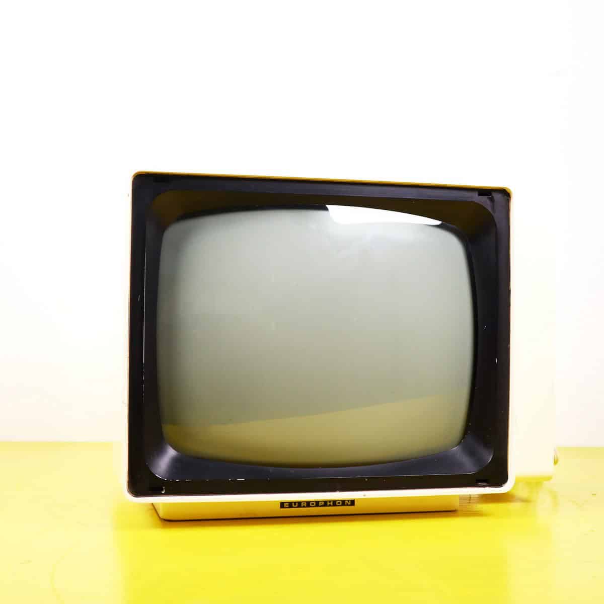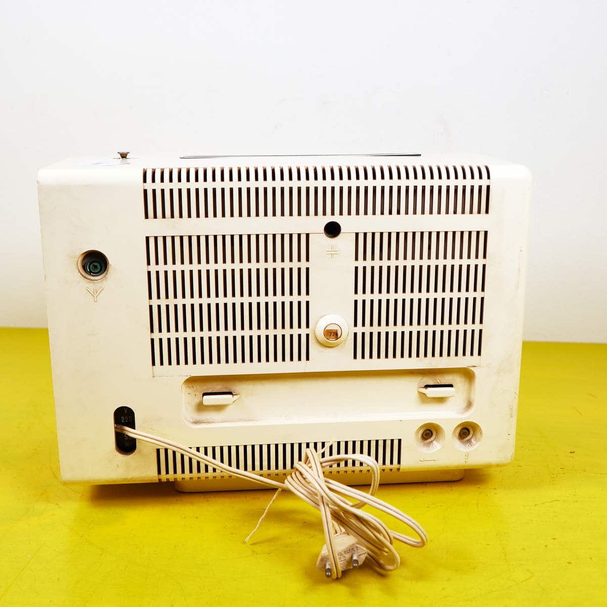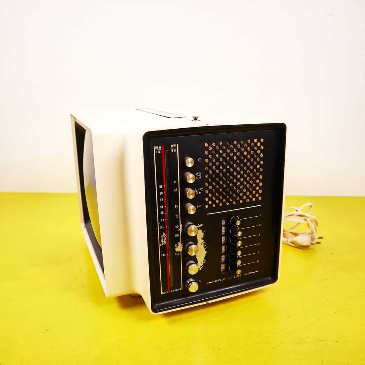 Scopri il fascino del passato con il Televisore Europhon Apollo Deluxe 4000, un oggetto di design che cattura l'essenza degli anni '70. Questo televisore offre un elegante involucro bianco c... Scopri il fascino del passato con il Televisore Europhon Apollo Deluxe 4000, un oggetto di design che cattura l'essenza degli anni '70. Questo televisore offre un elegante involucro bianco con dettagli neri, un'antenna estensibile e un'interfaccia vintage che include manopole e indicatori colorati. Perfetto per arredare un living in stile retro o come pezzo da collezione, il dispositivo si presenta in buone condizioni con lievi segni d'usura che testimoniano la sua storia. Sebbene non sia funzionante come un moderno TV, rappresenta un'ottima soluzione decorativa per i nostalgici del design classico. Altro