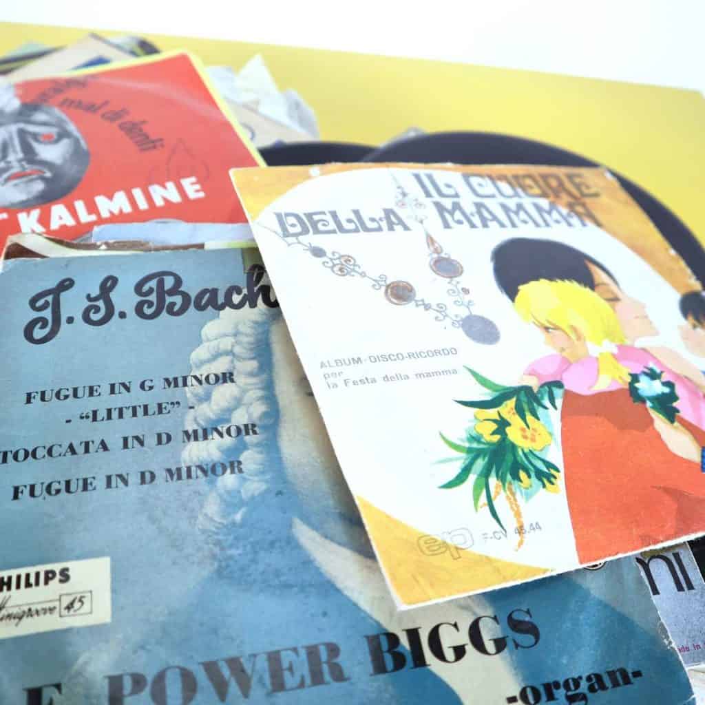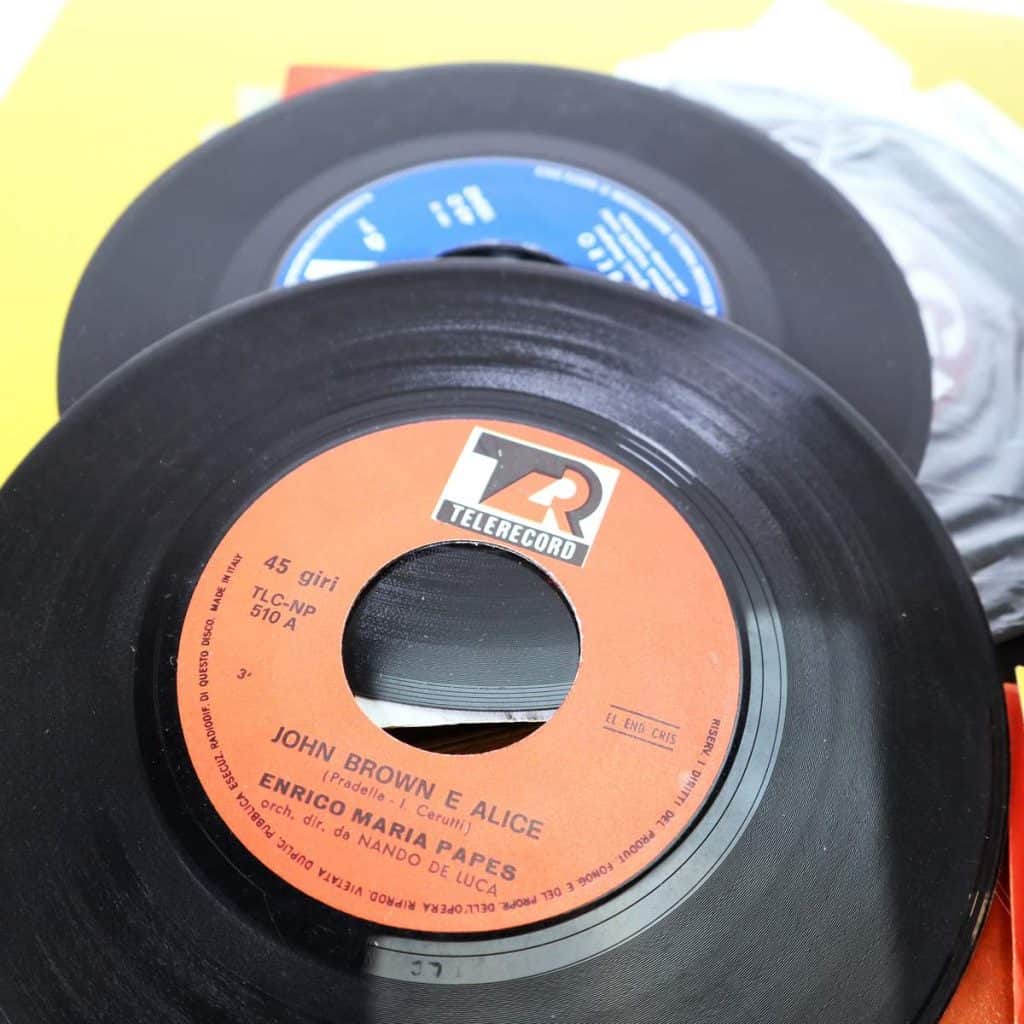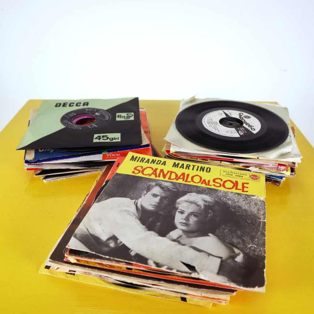 Questa collezione di 45 giri vintage e' un tesoro per gli amanti della musica e del design retro'. Comprende dischi storici degli anni '50 e '60, con copertine affascinanti e tipog... Questa collezione di 45 giri vintage e' un tesoro per gli amanti della musica e del design retro'. Comprende dischi storici degli anni '50 e '60, con copertine affascinanti e tipografie iconiche che raccontano una storia unica. Ogni disco presenta brani indimenticabili di artisti italiani, perfetti per rivivere l'atmosfera di un'epoca passata. Le copertine sono variopinte e variegate, alcune con grafiche artistiche, altre con richiami pubblicitari nostalgici. Questi dischi possono essere un'aggiunta eccellente a una collezione musicale o un'idea originale per decorare un ambiente vintage. La collezione include titoli rarissimi e potrebbe necessitare di piccole riparazioni dovute al tempo. Altro