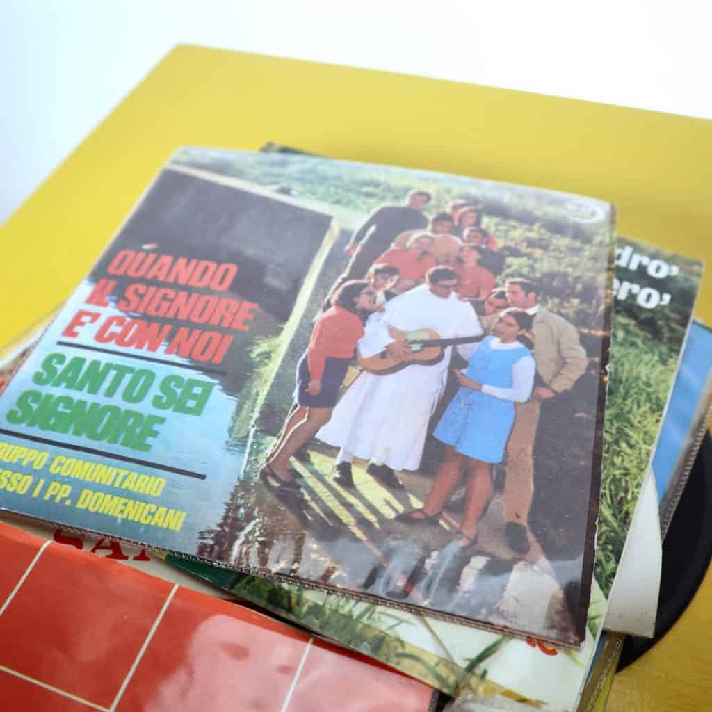 Questa affascinante collezione di dischi e' un vero tesoro per gli amanti della musica vintage e del canto spirituale. Comprende una selezione di 55 singoli e album, ognuno con copertine dai colo... Questa affascinante collezione di dischi e' un vero tesoro per gli amanti della musica vintage e del canto spirituale. Comprende una selezione di 55 singoli e album, ognuno con copertine dai colori vivaci e design nostalgici tipici degli anni '60. I dischi, che spaziano da inni religiosi a melodie popolari, possono essere usati per rievocare l'atmosfera di epoche passate o come decorazione per interni. Ogni pezzo e' stato curato con attenzione, mostrando lievi segni di utilizzo che non compromettono la loro bellezza e autenticita'. Perfetti per artisti, musicisti o collezionisti di memorabilia musicale. Altro