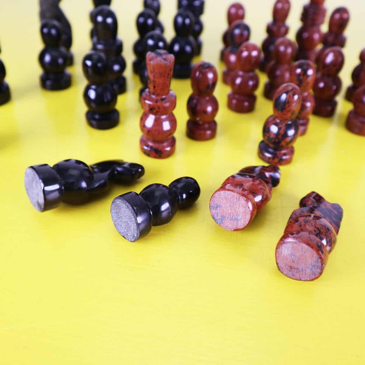 Questo squisito set di scacchi rappresenta una perfetta fusione tra arte e funzionalità, realizzato in pietra marmorizzata finemente lavorata. Ogni pezzo vanta una splendida combinazione di colori, da... Questo squisito set di scacchi rappresenta una perfetta fusione tra arte e funzionalità, realizzato in pietra marmorizzata finemente lavorata. Ogni pezzo vanta una splendida combinazione di colori, dal nero profondo al rosso focoso, conferendo un tocco di lusso e raffinatezza. Le forme sono arrotondate e moderne, con dettagli stilizzati che evocano un senso di eleganza minimalista, rendendo questo set non solo un gioco, ma anche un pezzo d"arte decorativo. L"accurata lavorazione artigianale assicura una sensazione di solidità al tatto, mentre la superficie liscia e lucida delle pedine e dei pezzi da gioco fornisce un"esperienza tattile piacevole. Perfetto da esporre nel salotto o nello studio, questo set di scacchi è un regalo ideale per appassionati del gioco e collezionisti di oggetti di design. Le condizioni sono eccellenti, pronte per arricchire qualsiasi ambiente con un tocco di classe senza tempo. Altro