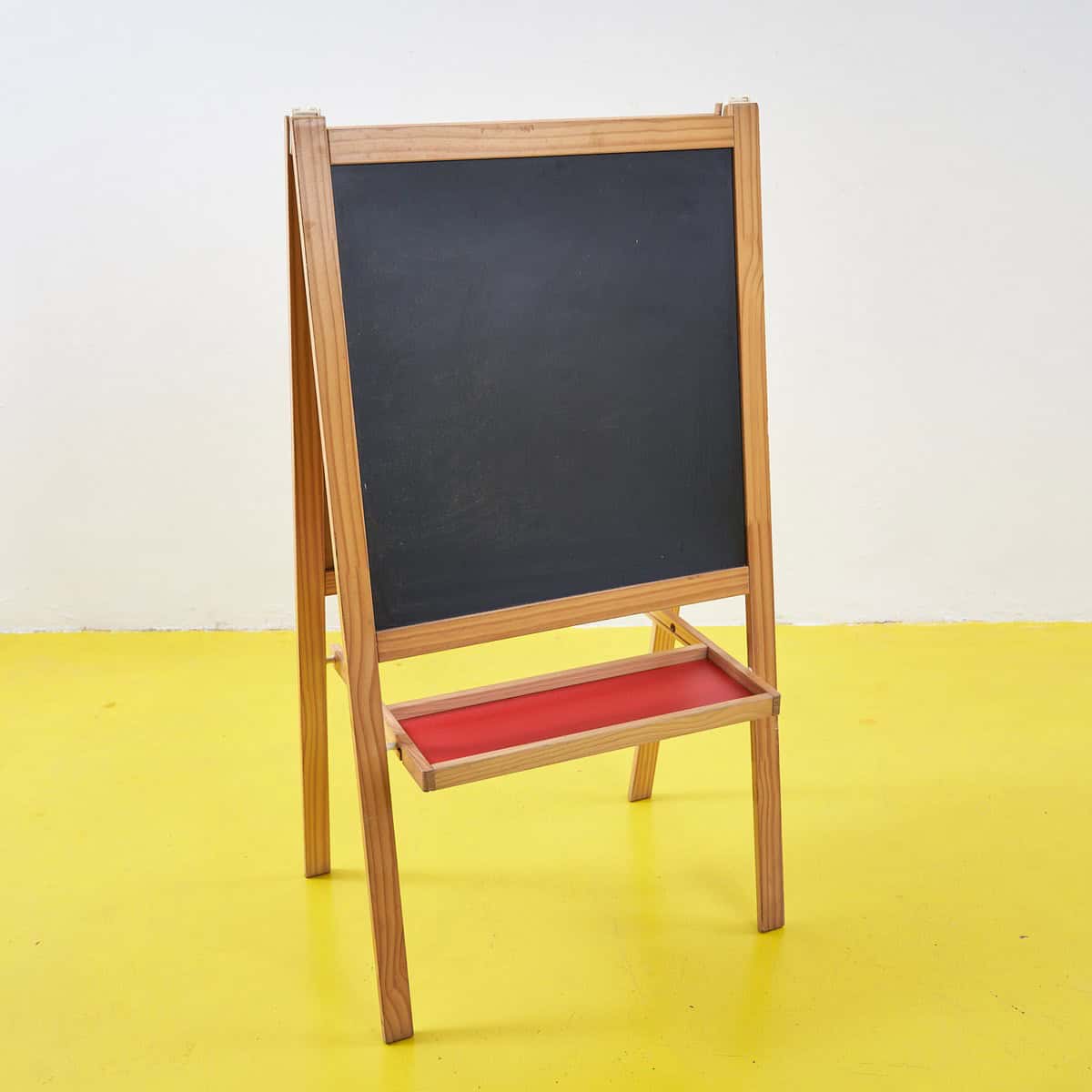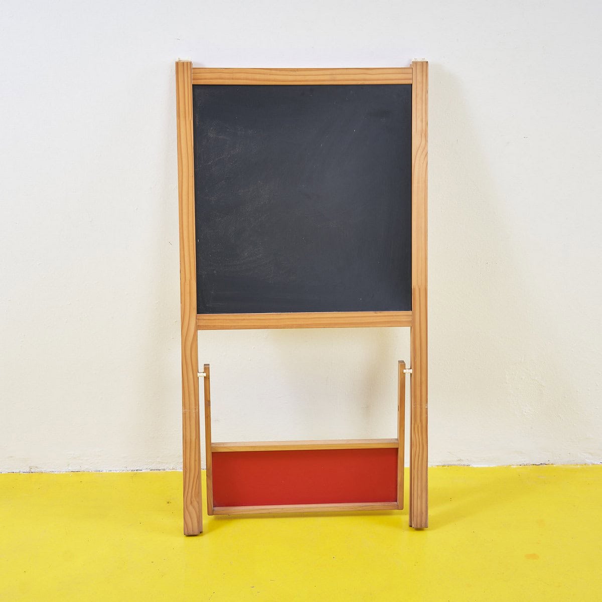 Questa affascinante lavagna vintage e' perfetta per ogni ambiente, da quello domestico a quello professionale. Realizzata in legno di alta qualita', presenta un elegante telaio in legno chia... Questa affascinante lavagna vintage e' perfetta per ogni ambiente, da quello domestico a quello professionale. Realizzata in legno di alta qualita', presenta un elegante telaio in legno chiaro che sostiene una superficie nera opaca, ideale per scrivere e disegnare. L'aggiunta di un pratico ripiano rosso sottostante offre spazio per gessetti o cancelleria, rendendola non solo decorativa ma anche funzionale. Questa lavagna e' un esempio di design semplice ed efficace, perfetta per ispirare la creativita' di grandi e piccini. Perfetta per scuole, sale giochi o come elemento decorativo in una casa moderna, questa lavagna rappresenta un pezzo di storia e un invito all'arte e alla comunicazione. Altro