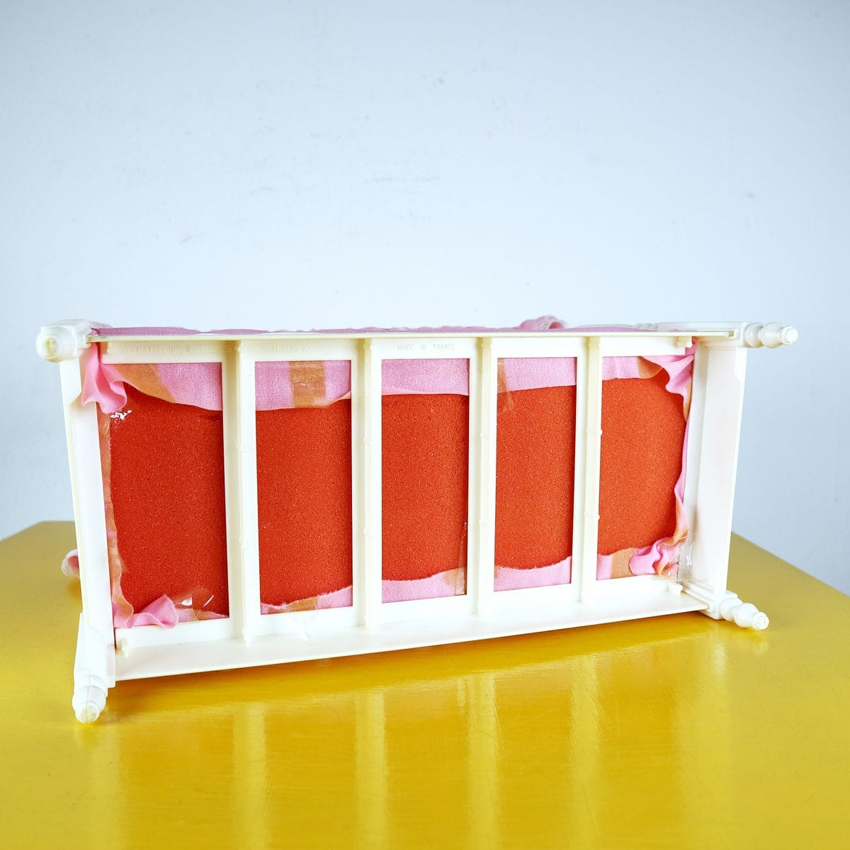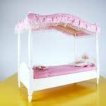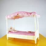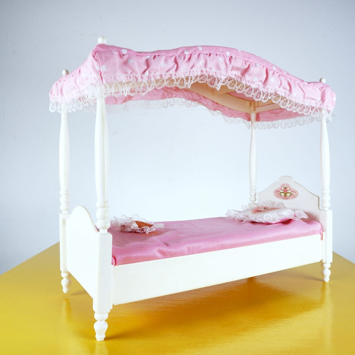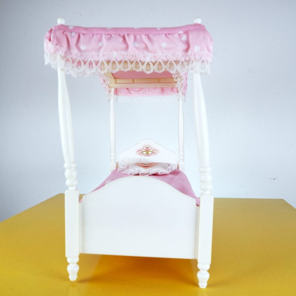 Questo affascinante letto per bambola, realizzato dalla Mattel nel 1982, è un pezzo d"arte unica per collezionisti e amanti di Barbie. Presenta una struttura elegante con un cabriolet in legno e un ba... Questo affascinante letto per bambola, realizzato dalla Mattel nel 1982, è un pezzo d"arte unica per collezionisti e amanti di Barbie. Presenta una struttura elegante con un cabriolet in legno e un baldacchino in tessuto rosa, decorato con pizzo che aggiunge un tocco di raffinatezza. I cuscini sono romantici, con ricami dolci, perfetti per ogni bambola. Questo letto è ideale non solo come elemento decorativo, ma anche come complemento per giochi di ruolo, stimolando la fantasia delle più piccole. In condizioni molto buone, porta con sà© una storia affascinante e un design senza tempo. Altro