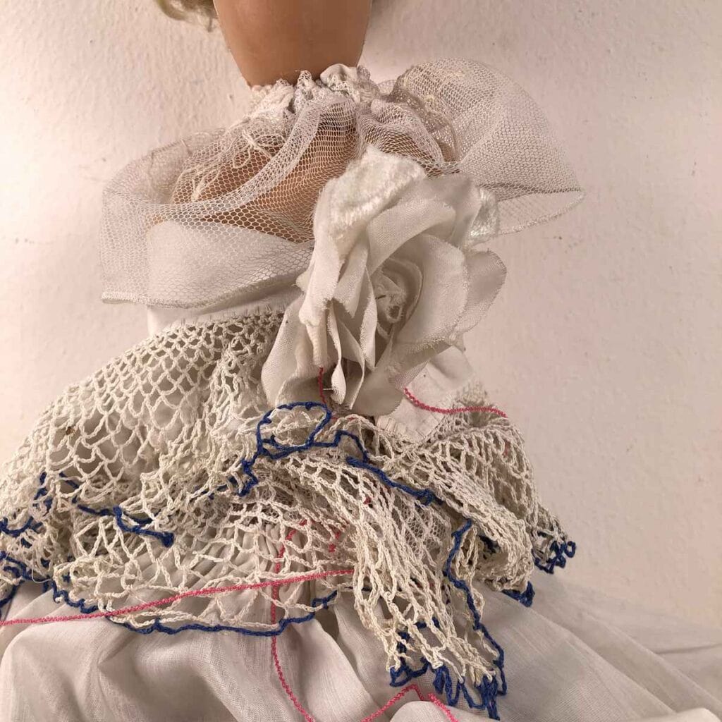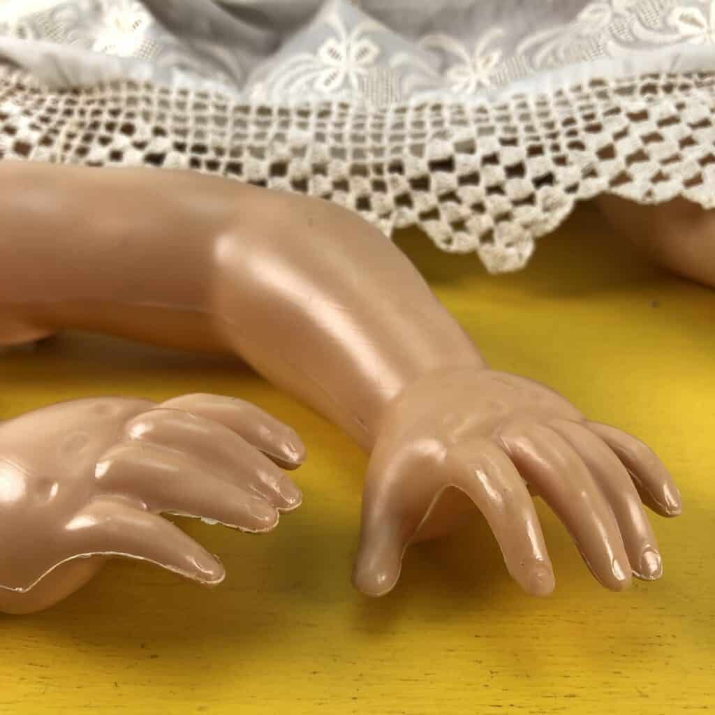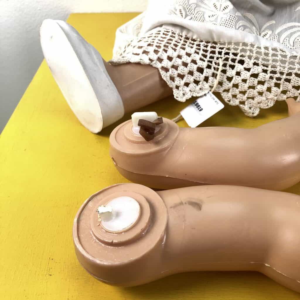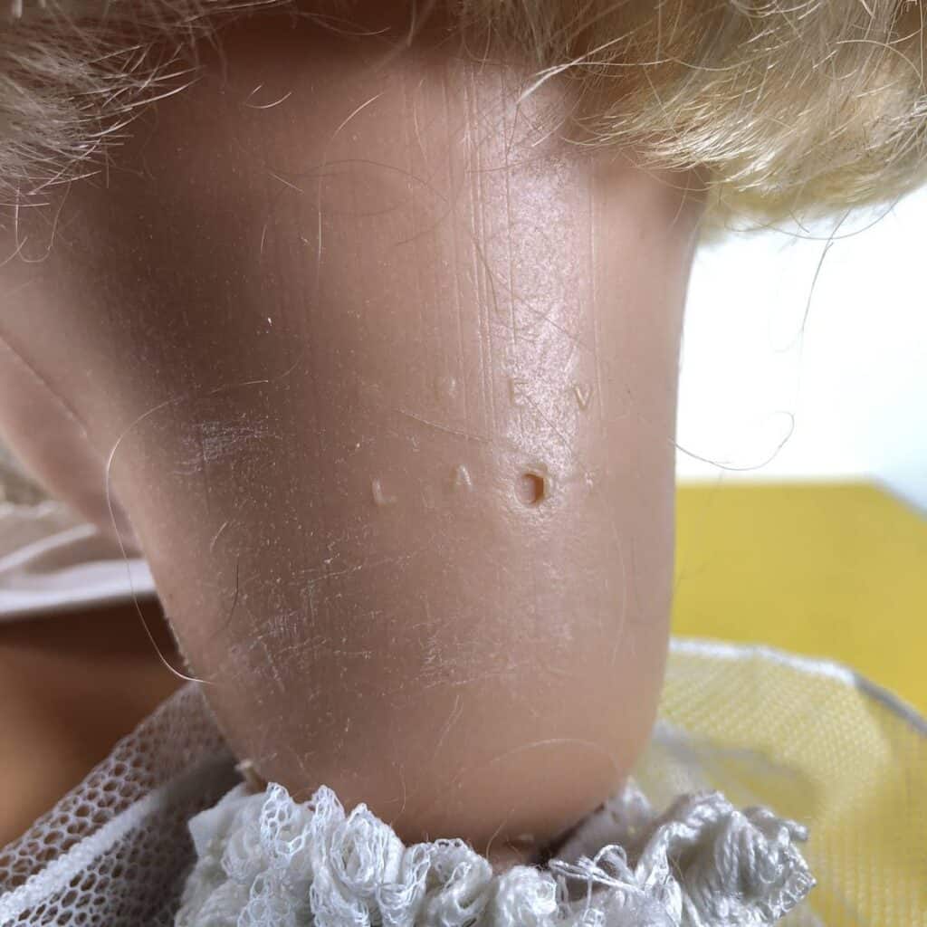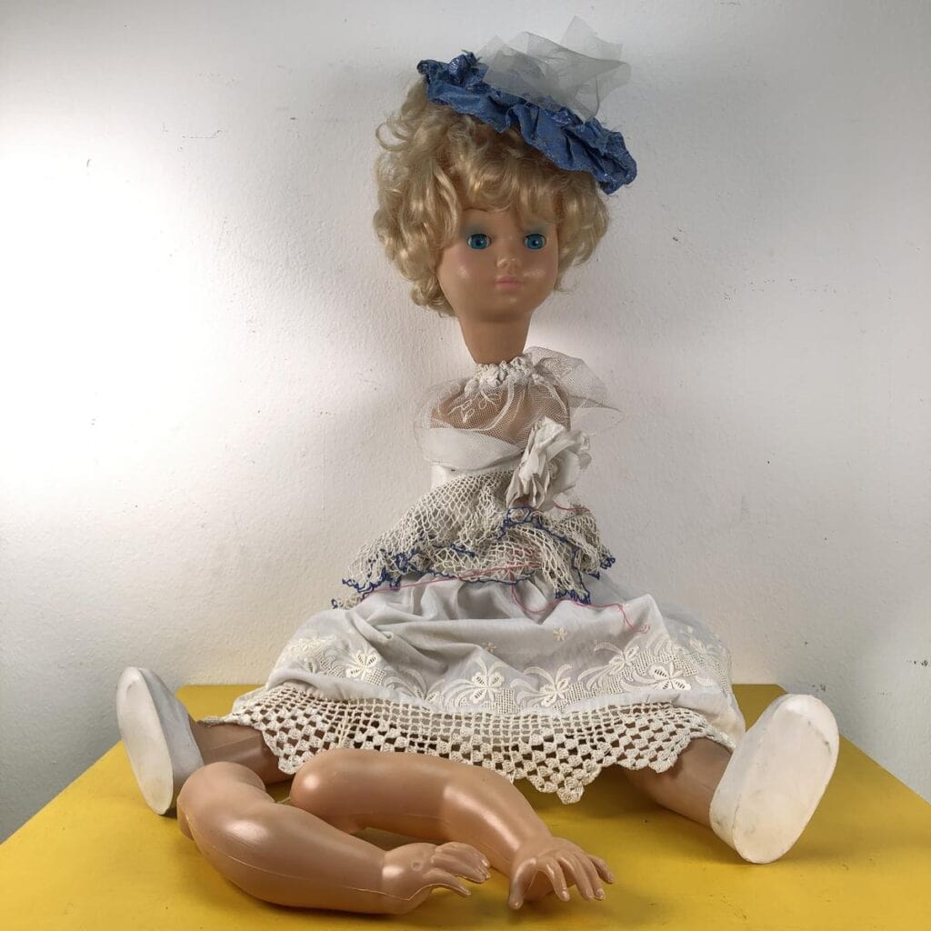 bambola anni 60 con marchio prev lamp made in italy da sistemare