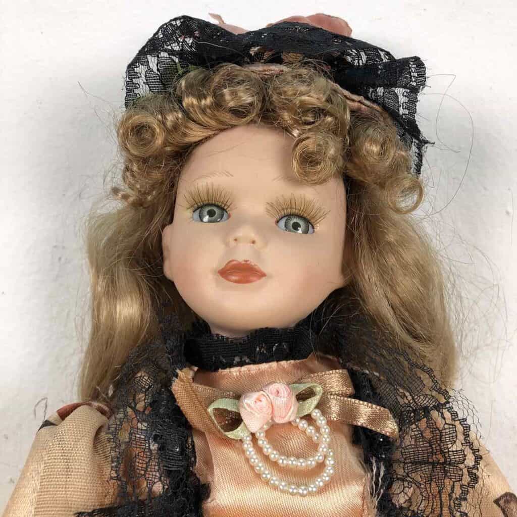 elegante bambola vintage con parti in ceramica