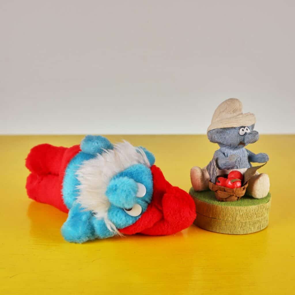 pupazzo e scatola puffi