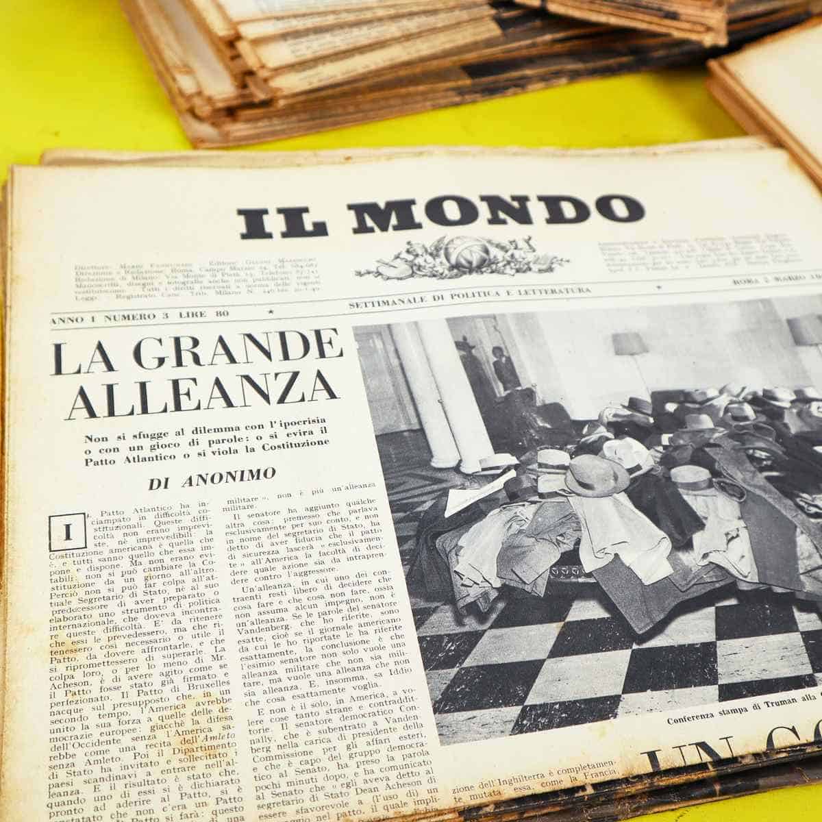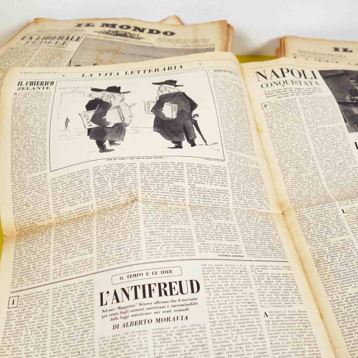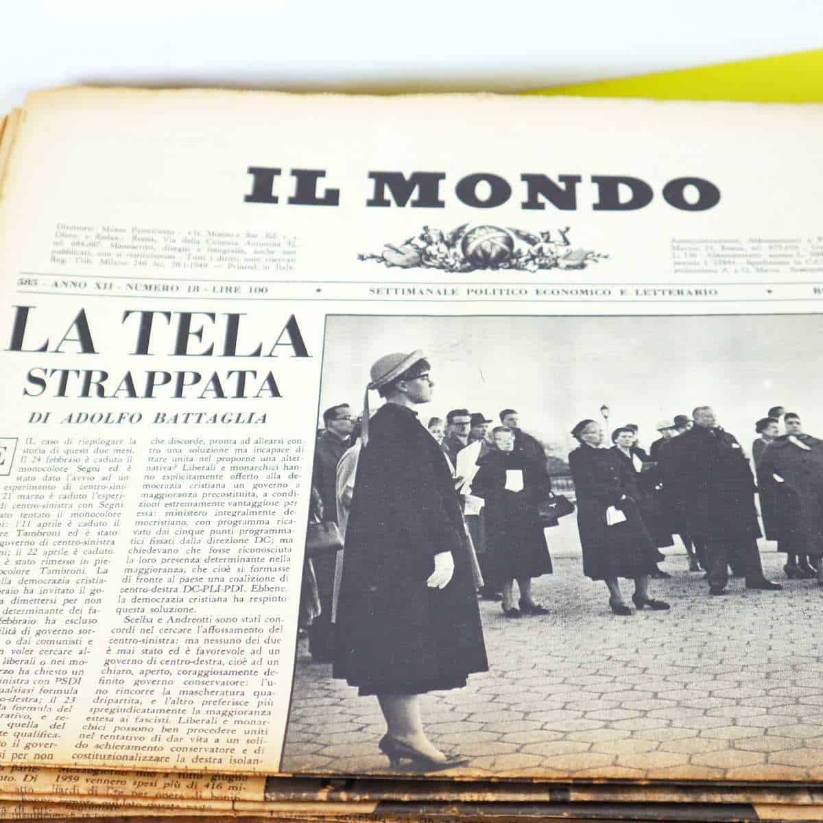 Questa affascinante collezione di settimanali vintage, intitolati 'Il Mondo', risale agli anni '50 e '60, un vero pezzo della storia editoriale italiana. I giornali presentano arti... Questa affascinante collezione di settimanali vintage, intitolati 'Il Mondo', risale agli anni '50 e '60, un vero pezzo della storia editoriale italiana. I giornali presentano articoli di politica e cultura dell'epoca, con titoli iconici come 'I Moderati del Cremlino' e 'La Tela Strappata'. Ogni numero e' un viaggio nel passato, con pagine ingiallite che raccontano eventi storici e figure significative. Non solo un oggetto da collezione, ma un'opera d'arte della stampa che puo' essere esposta, utilizzata per decorazioni d'interni o studi di storia contemporanea. Perfetti per gli appassionati di storia, collezionismo e vintage. Altro